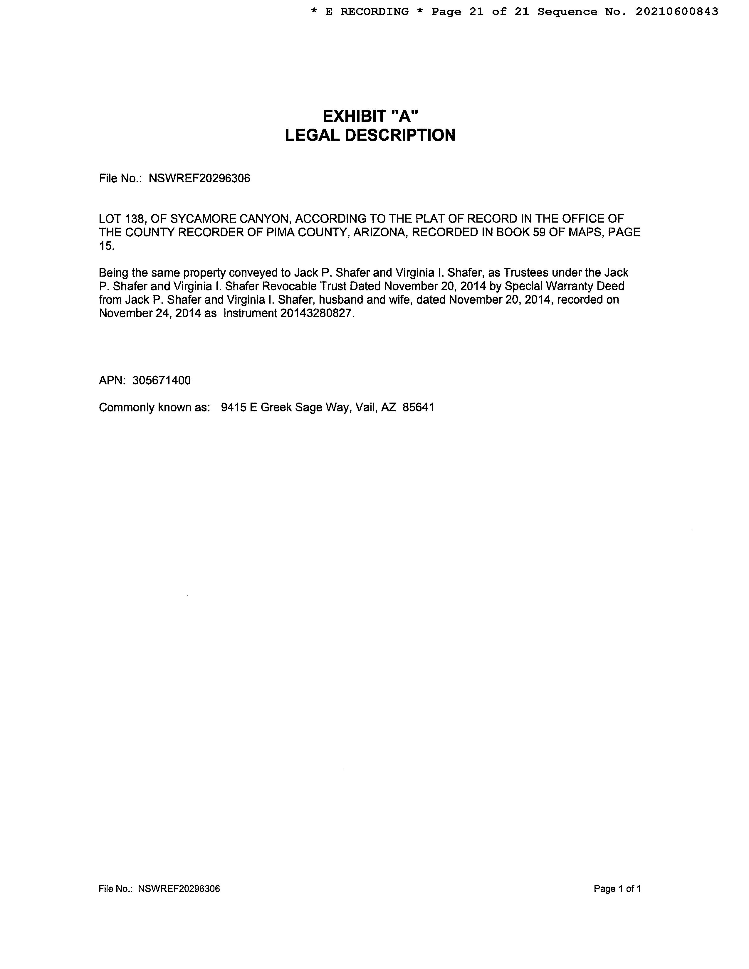 Subject Property: 9415 E Greek Sage Way Vail Az 85641