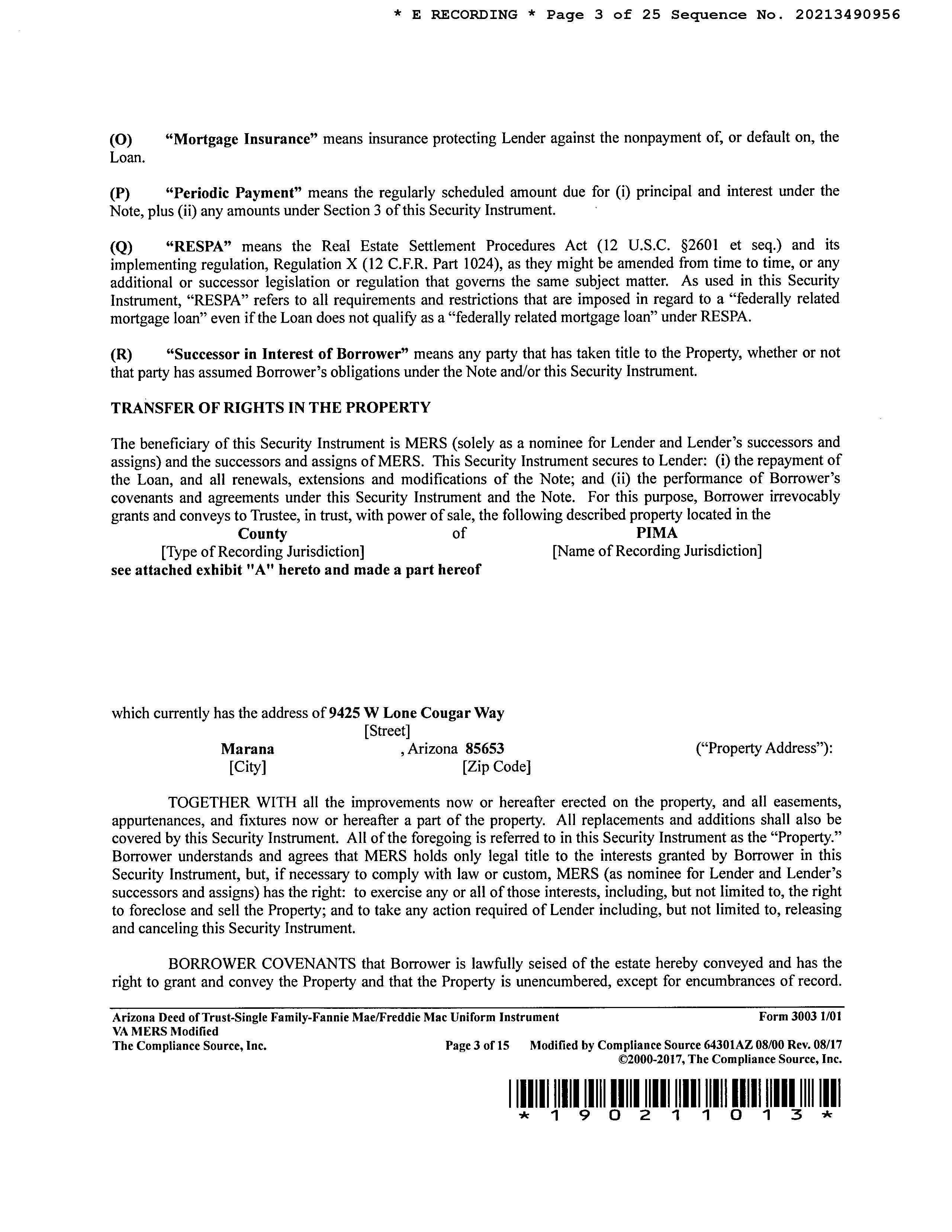 Mailing Address : 9425 W Lone Cougar Way, Marana AZ 85653-0180 H017
