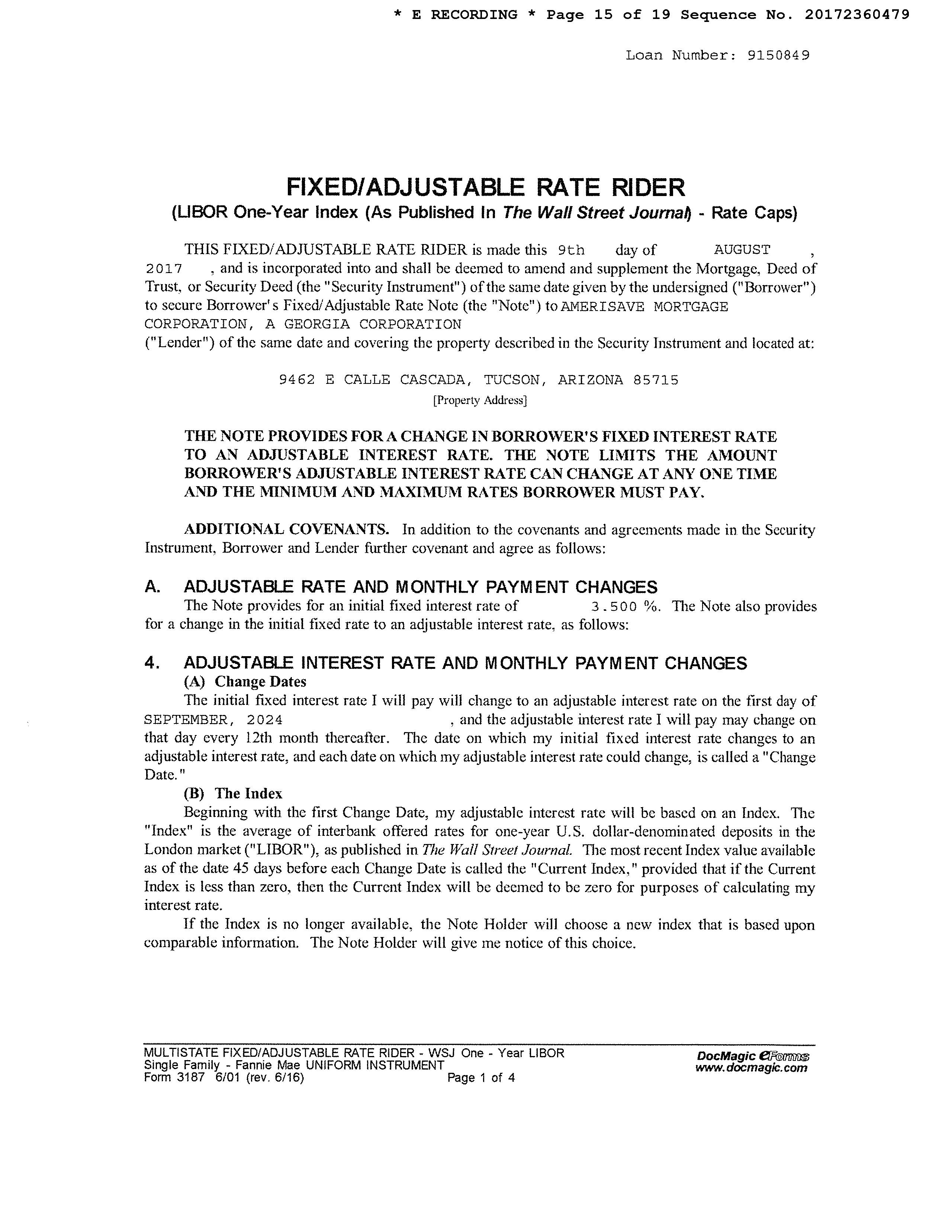 Prior 1st Mtg Rate/Type : $10.25 / Adjustable Int Rate Loan