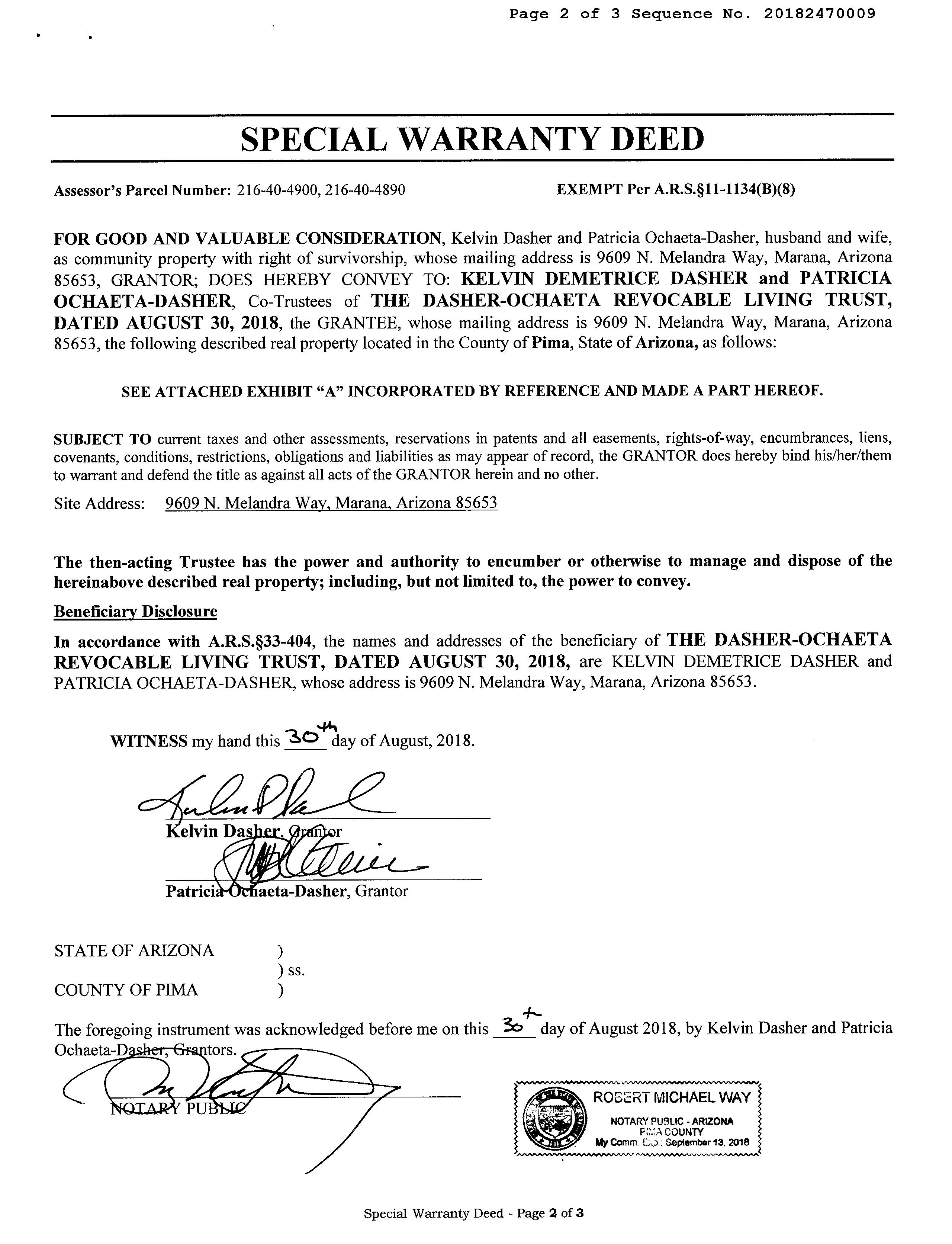Recording/Sale Date : 09/04/2018 / 08/30/2018 Deed Type : Special Warranty Deed Document # : 2470009