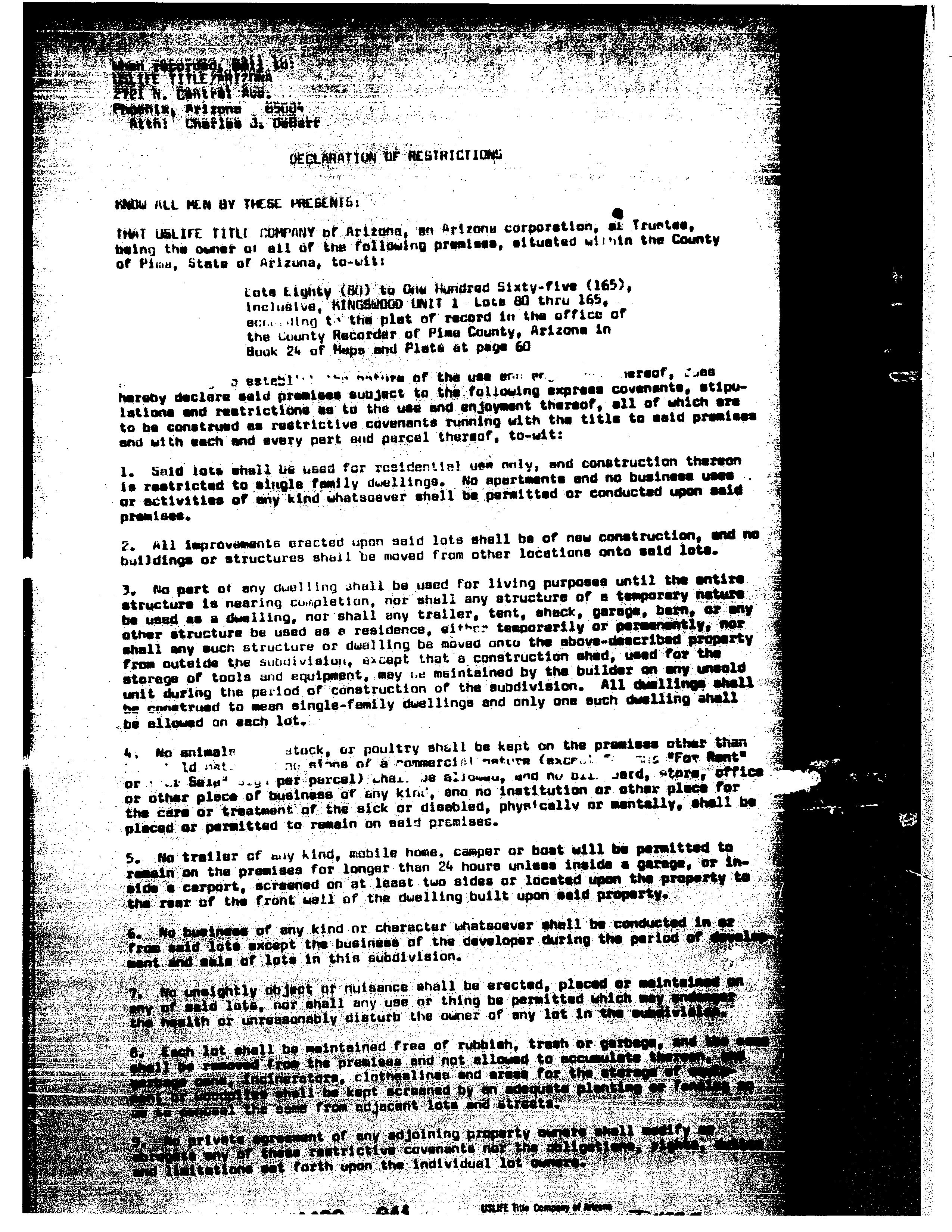 CONDITIONS & RESTRICTIONS PREPARED FOR : First American Title Insurance Company, and the operating divisions thereof, make no express or implied warranty respecting the information presented and assume no responsibility for errors or omissions. First American, the eagle logo, First American Title, and firstam.com are registered trademarks or trademarks of First American Financial Corporation and/or its affiliates. 9634 East 3rd Street Tucson, AZ 85748