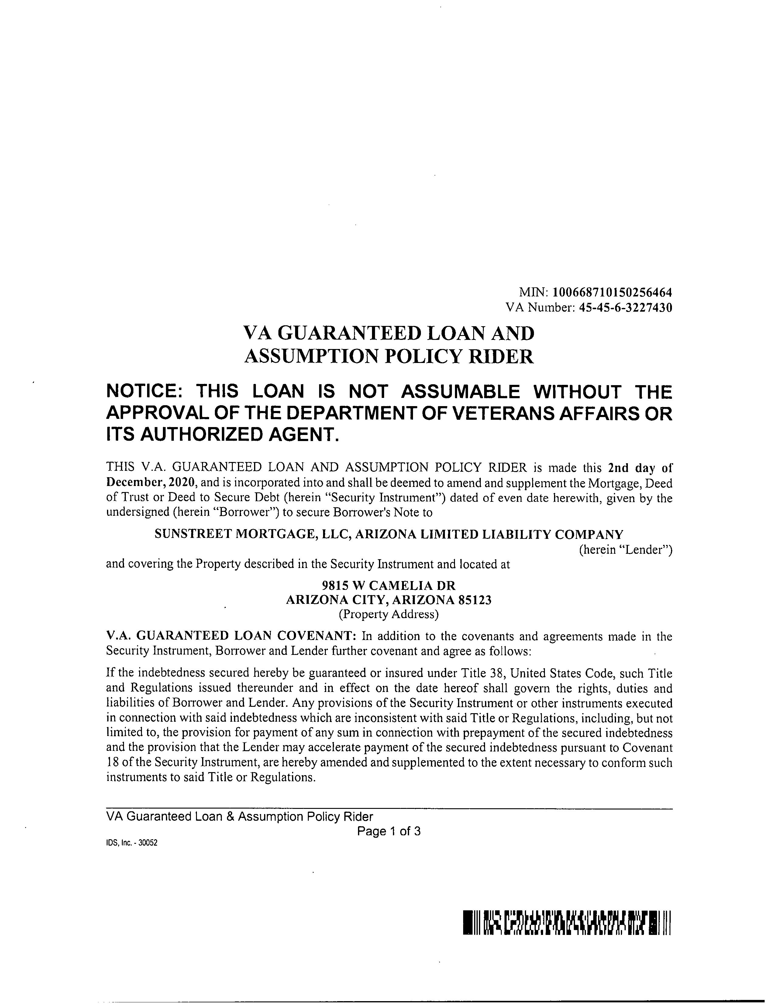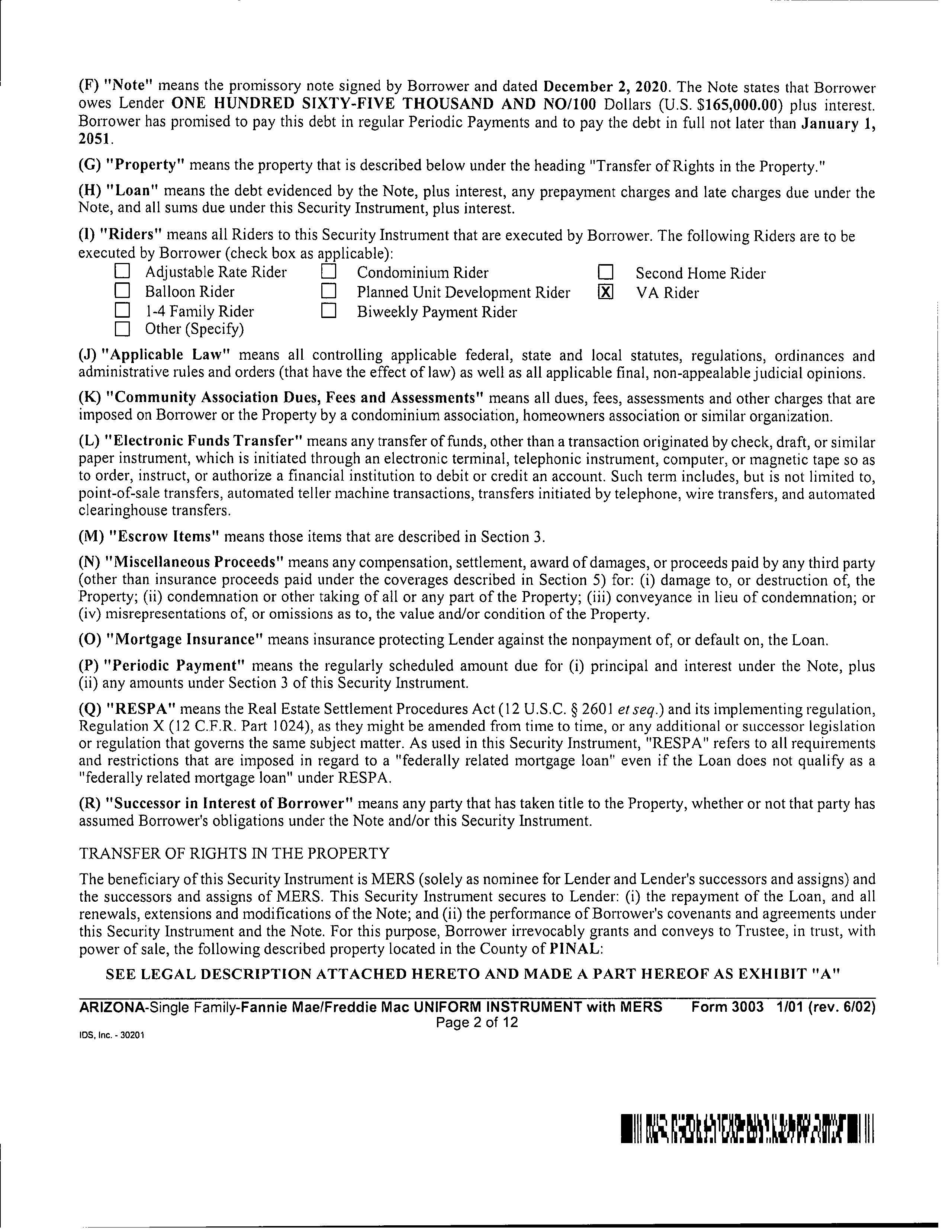 Recording/Sale Date : 12/03/2020 / 12/01/2020 1st Mtg Amount/Type : $165,000 / Va