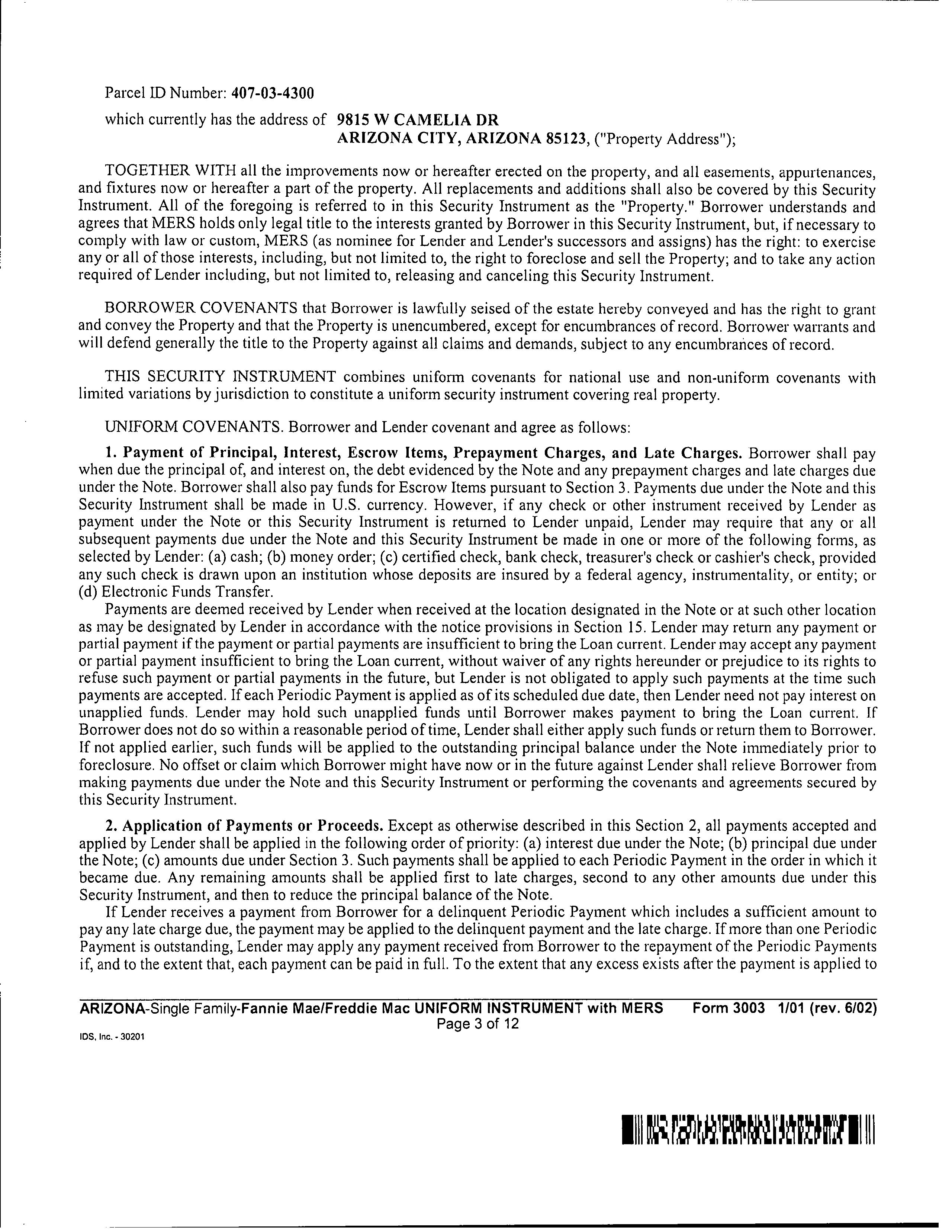 SITUS: 9815 W CAMELIA DR ARIZONA CITY