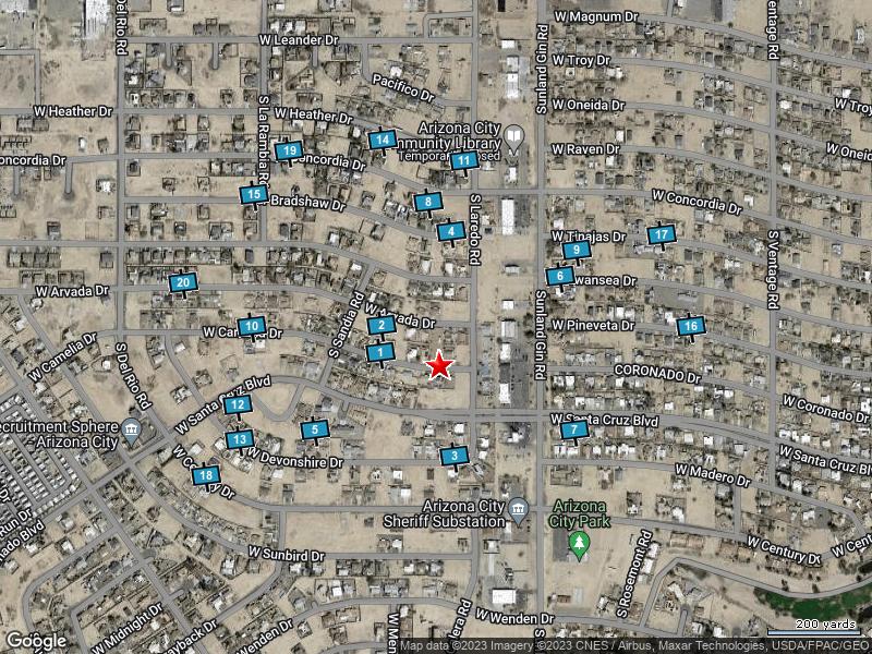 Deed Type: Warranty Deed Land Use: Sfr Subdivision / Tract: Arizona City #5 / Lot Size: 7,356 Year Built / Eff: 2005 / Rec. Date / Price: 07/11/2022 / $300,000 Living Area: 1,336 # of units: Document #: 77982 Bedrooms: Pool: Total Tax Value: $125,563 Bath(F/H): /