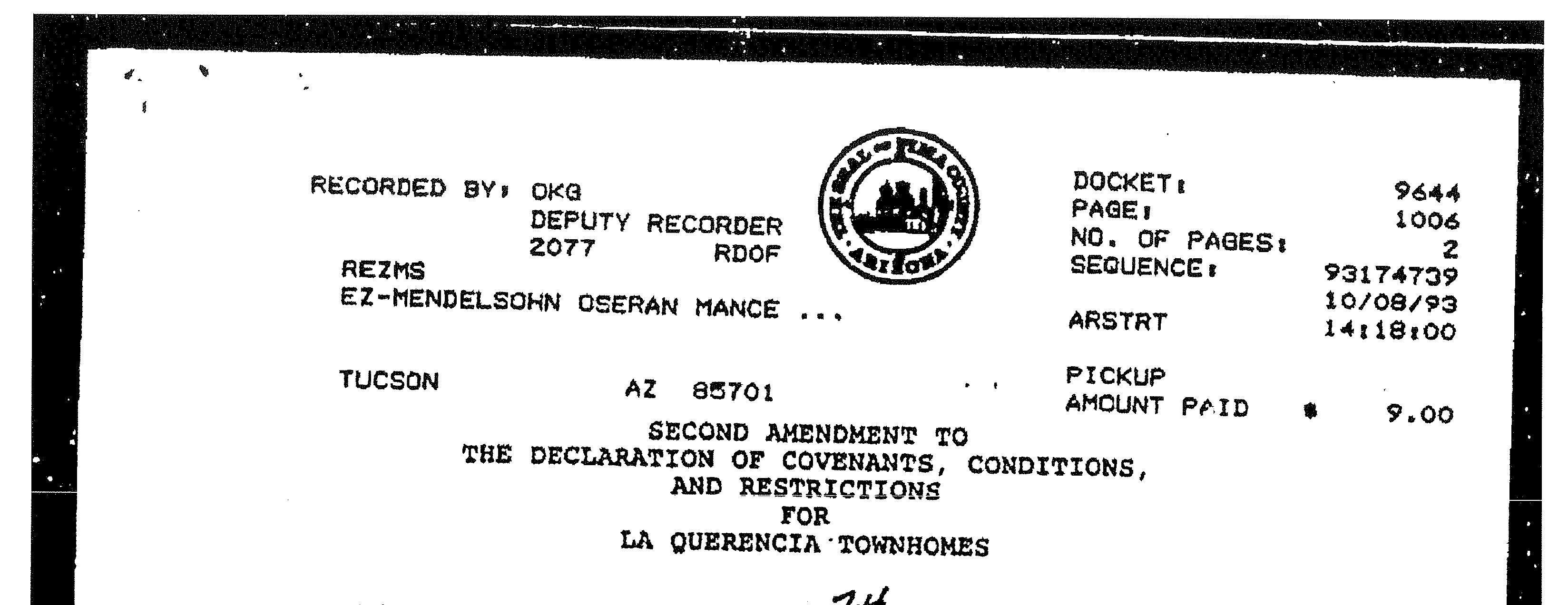 ©2021 First American Financial Corporation and/or its affiliates. All rights reserved. NYSE: FAF 05252610821 COVENANTS, CONDITIONS & RESTRICTIONS PREPARED FOR : First American Title Insurance Company, and the operating divisions thereof, make no express or implied warranty respecting the information presented and assume no responsibility for errors or omissions. First American, the eagle logo, First American Title, and firstam.com are registered trademarks or trademarks of First American Financial Corporation and/or its affiliates. 3122 East 4th Street Tucson, AZ 85716