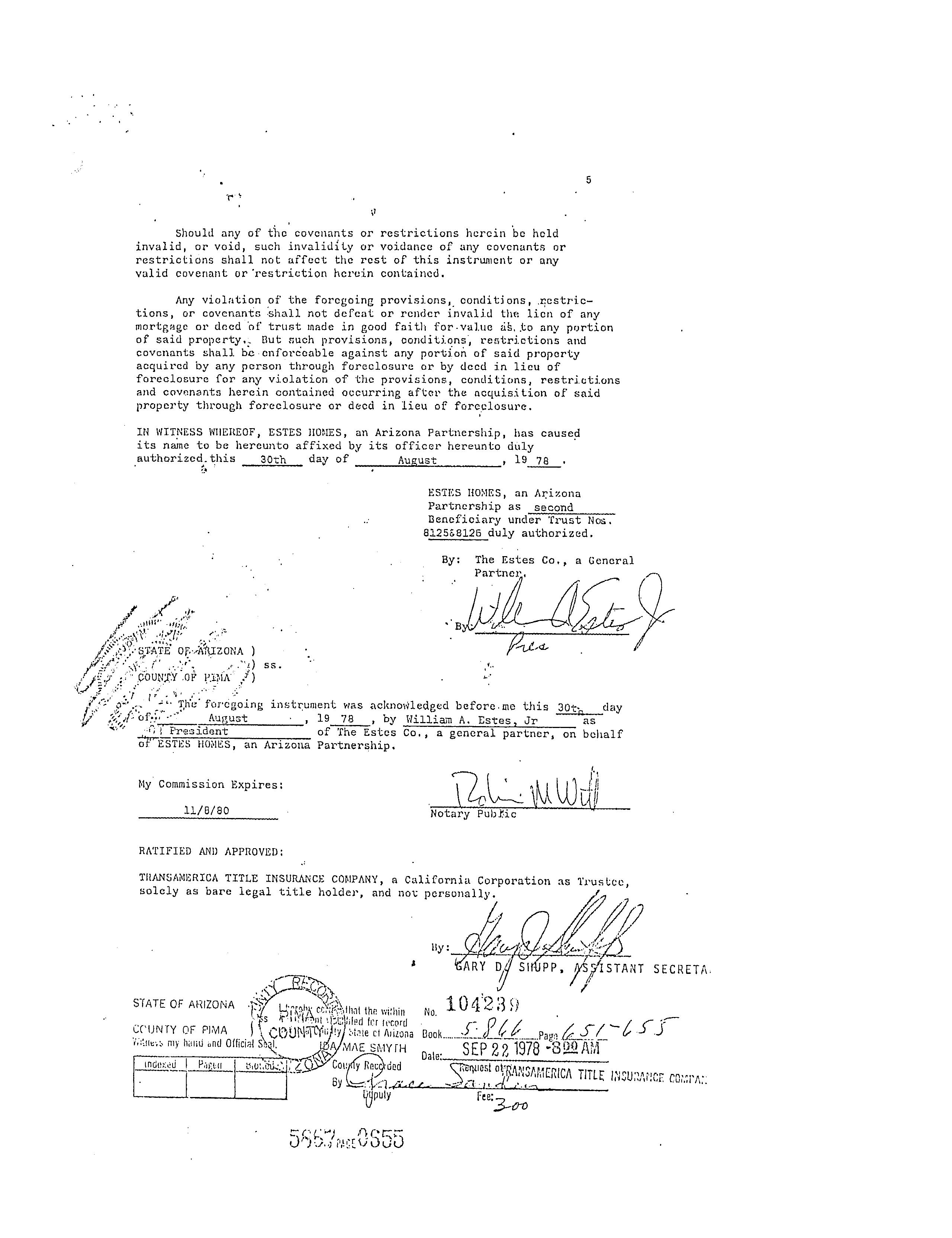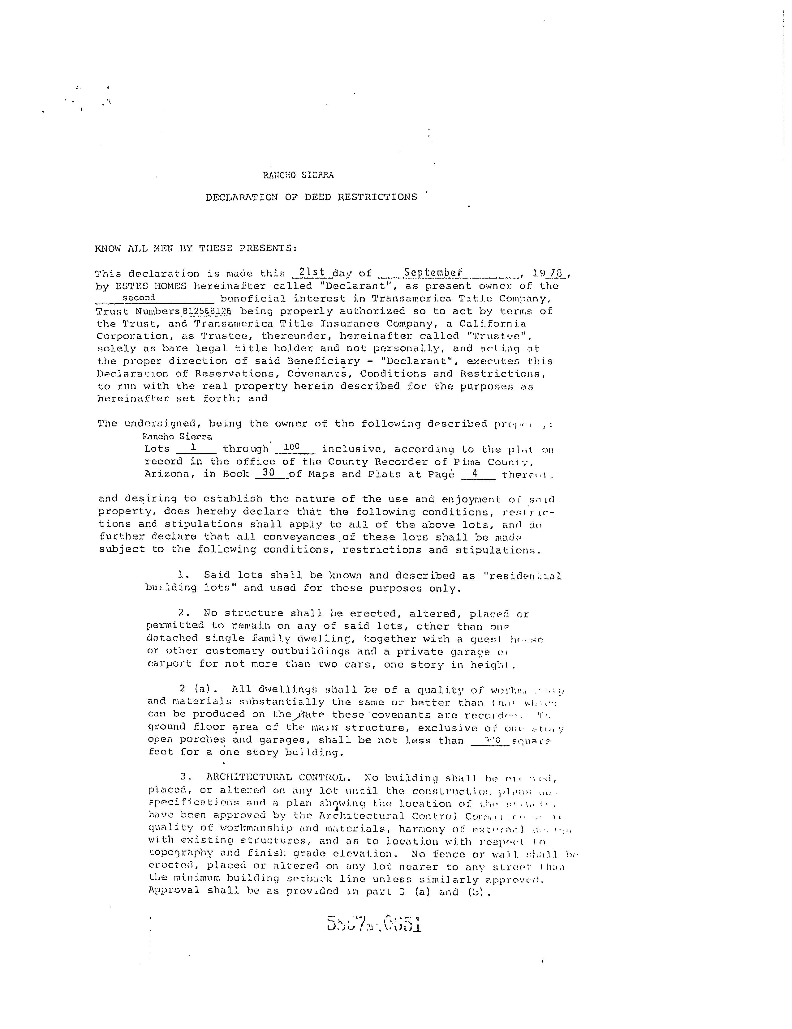 ©2021 First American Financial Corporation and/or its affiliates. All rights reserved. NYSE: FAF 05252610821 COVENANTS, CONDITIONS & RESTRICTIONS PREPARED FOR : First American Title Insurance Company, and the operating divisions thereof, make no express or implied warranty respecting the information presented and assume no responsibility for errors or omissions. First American, the eagle logo, First American Title, and firstam.com are registered trademarks or trademarks of First American Financial Corporation and/or its affiliates. 4880 N. Calle Tobosa Tucson, AZ 85749