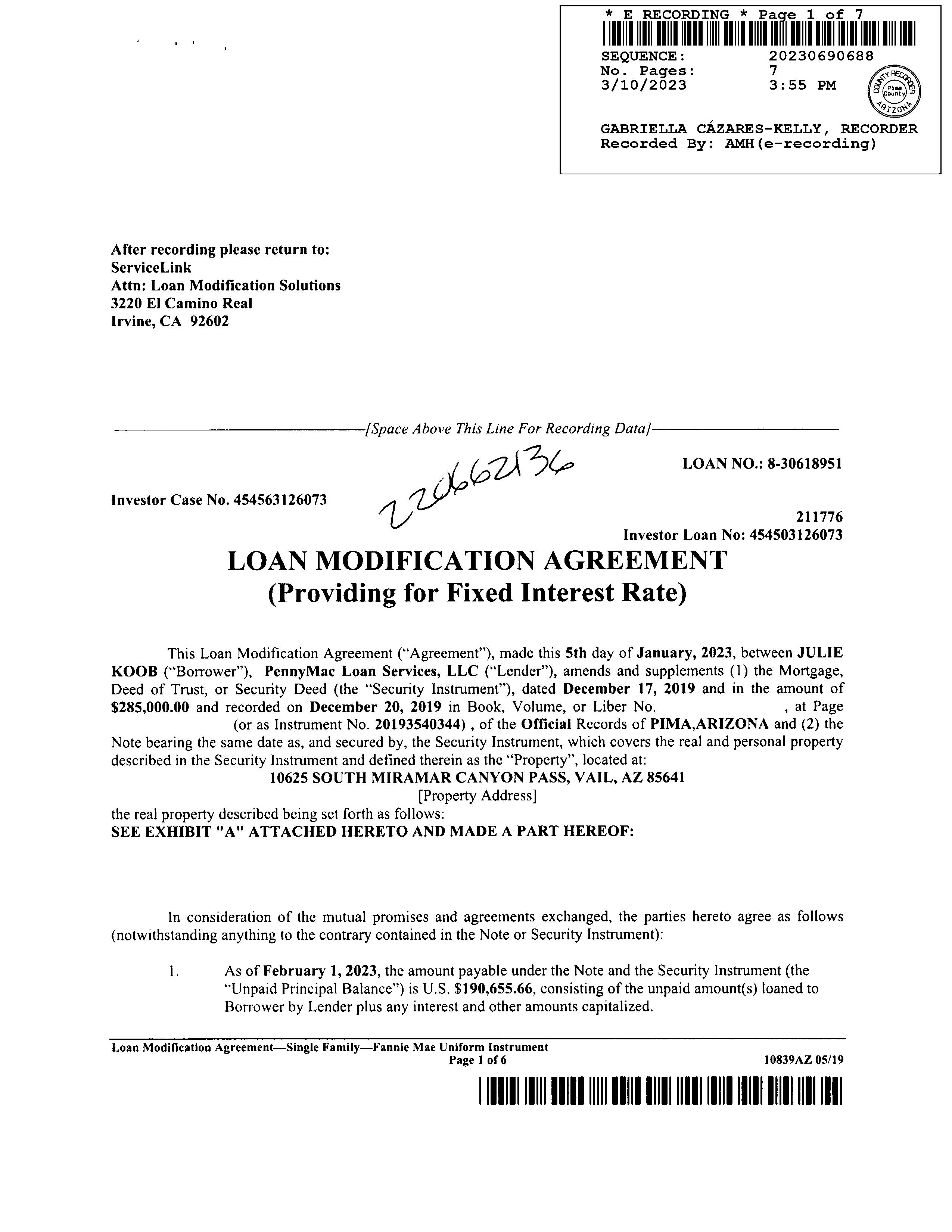Subject Property : 10625 S Miramar Canyon Pass Vail AZ 85641