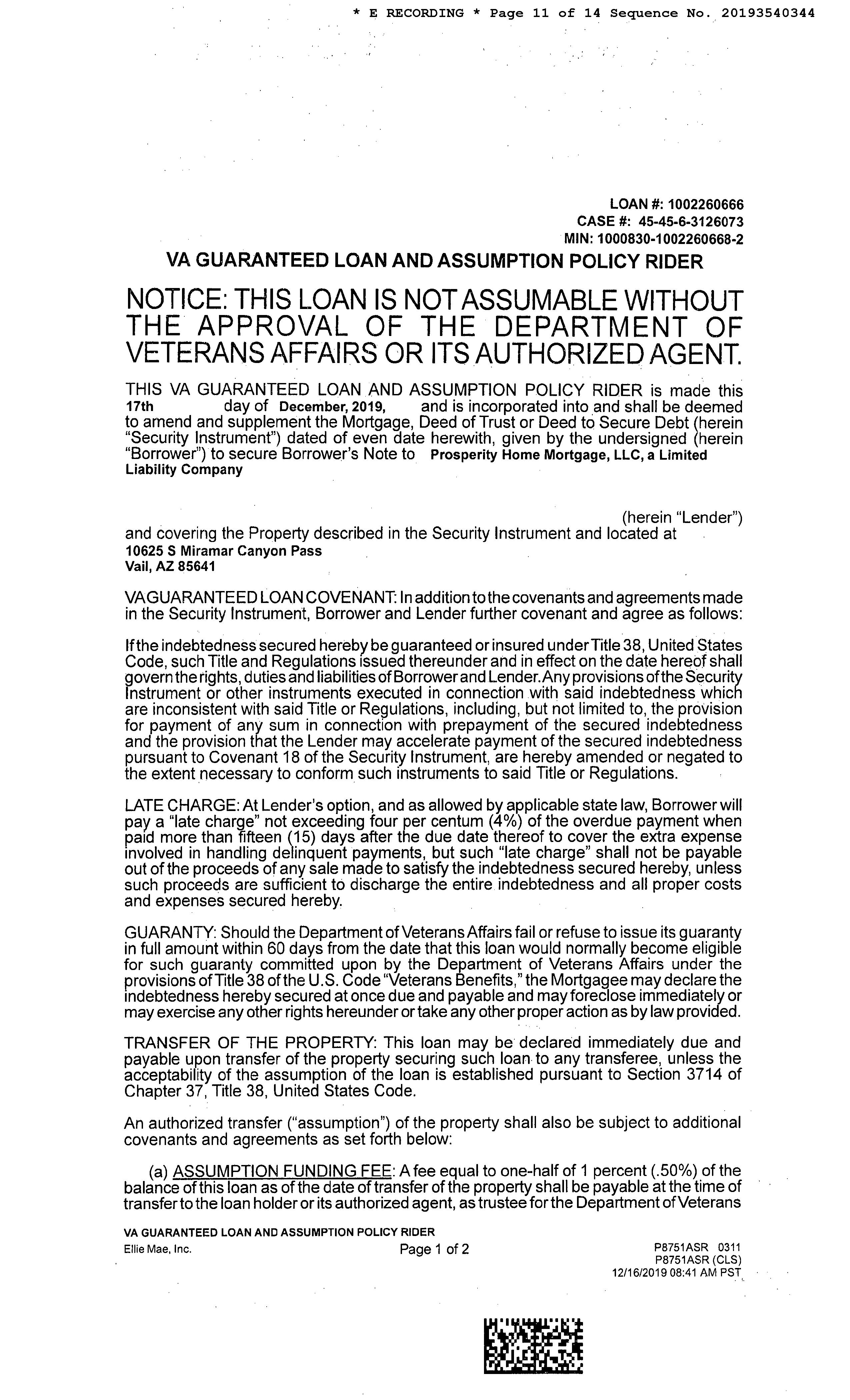 Recording/Sale Date : 12/20/2019 / 12/13/2019 1st Mtg Amount/Type : $285,000 / Va