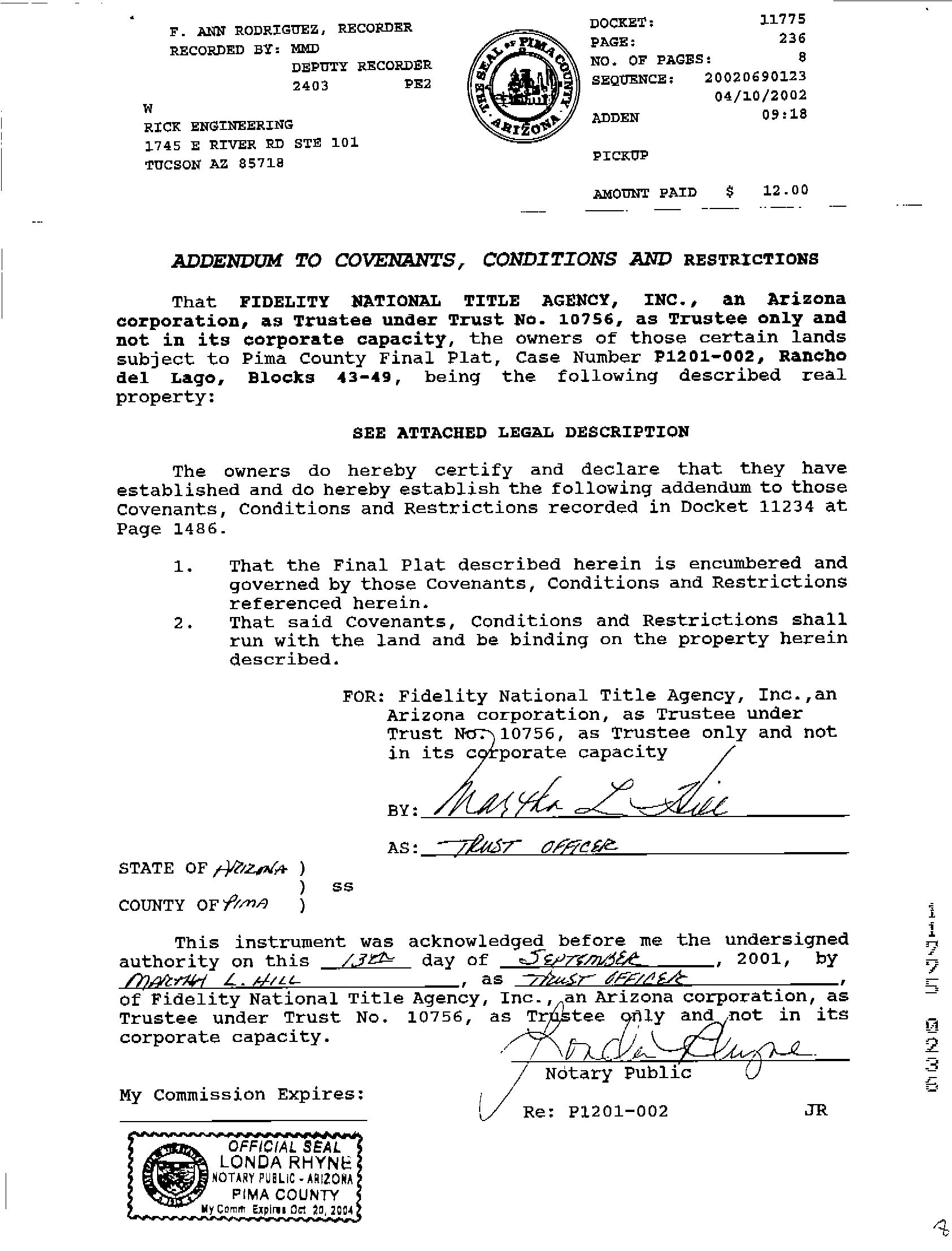 E Red Iron Trl Vail Az 85641 Owner Name: Anderson Dustin Errol & Jesuslisset Colorado De /