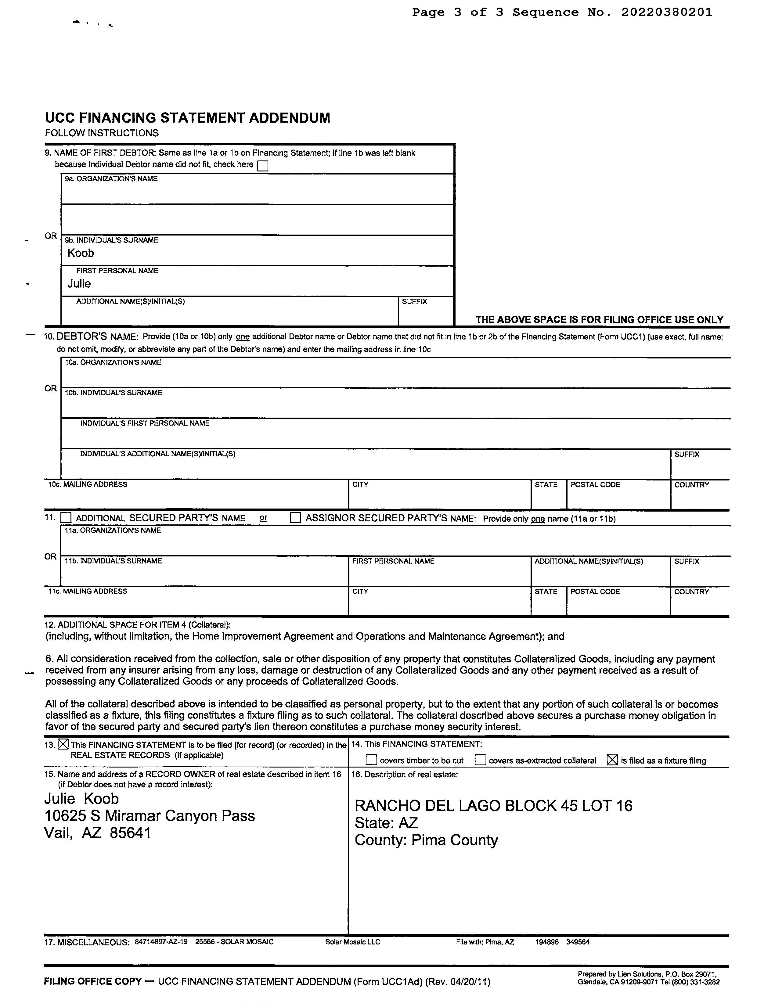 Legal Description : Rancho Del Lago Block 45 Lot 16