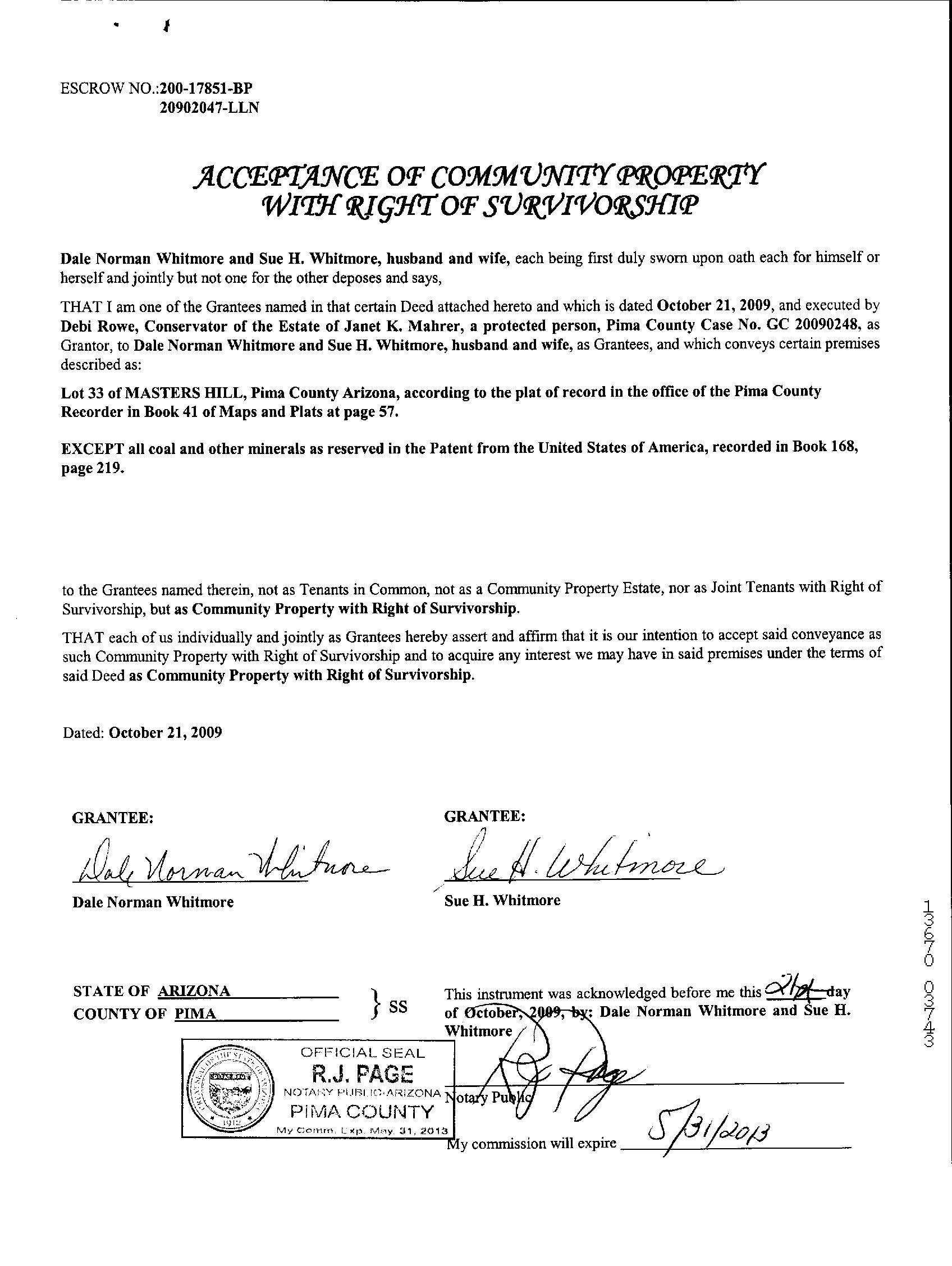 Recording/Sale Date : 10/23/2009 / 10/21/2009