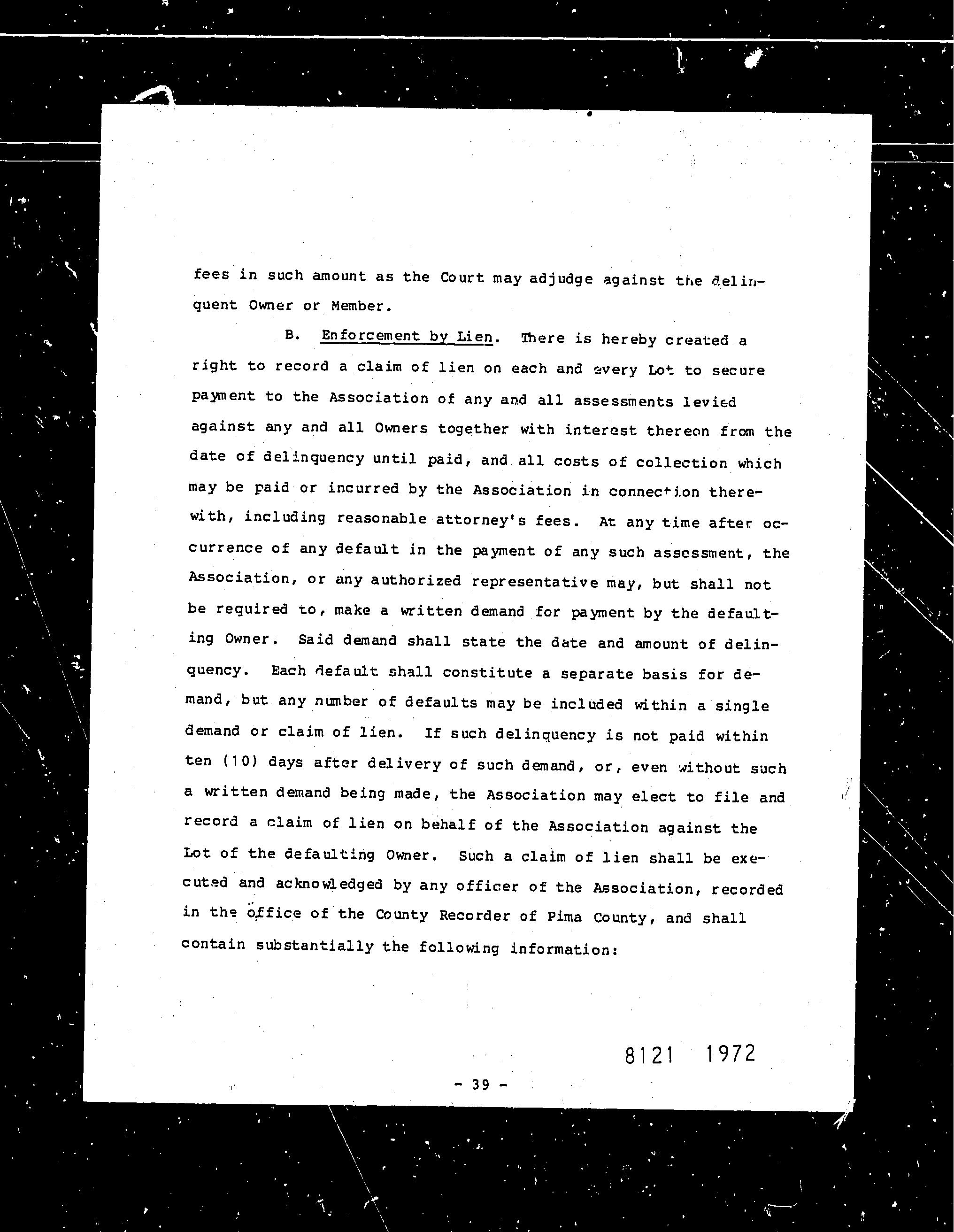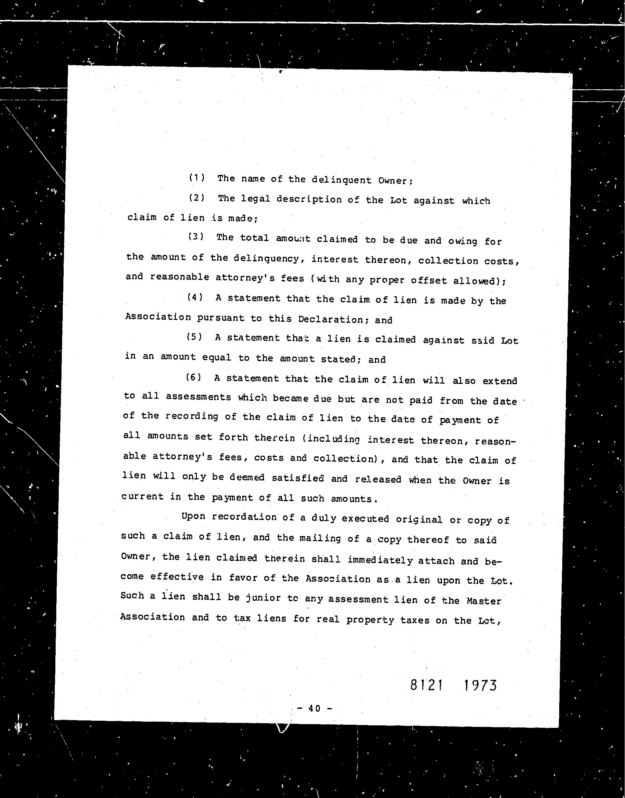 11 Unrecorded lien by a homeowners association
