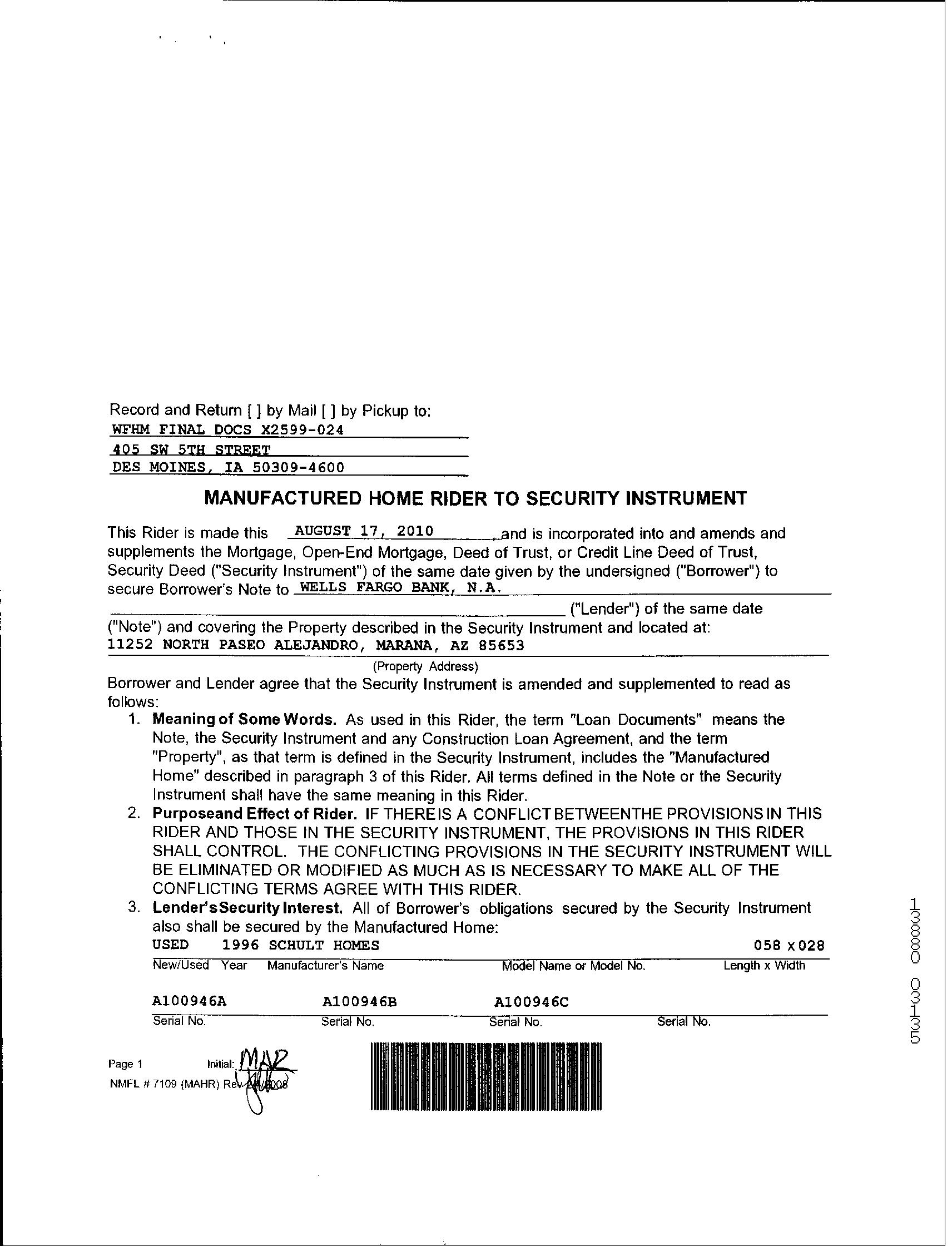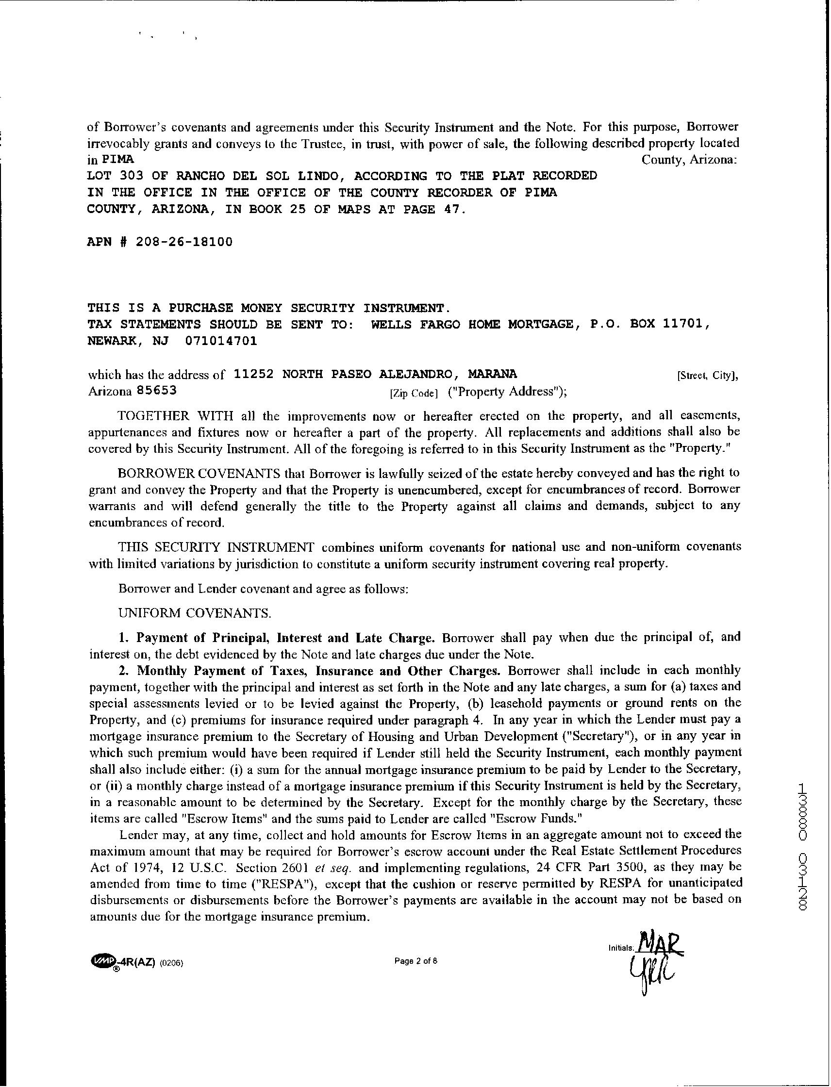 Mailing Address : 11252 N Paseo Alejandro, Marana AZ 85653-8707 H004
