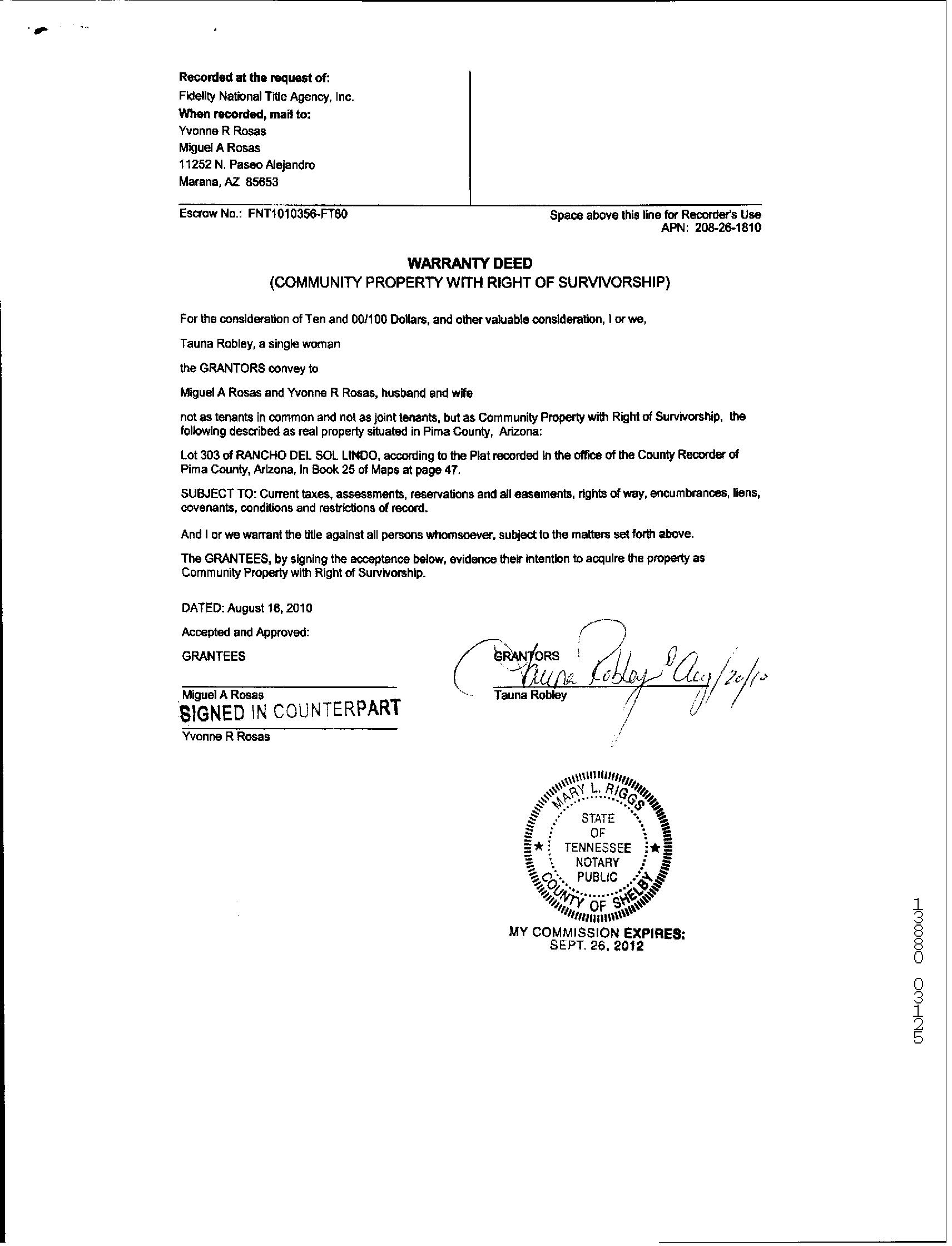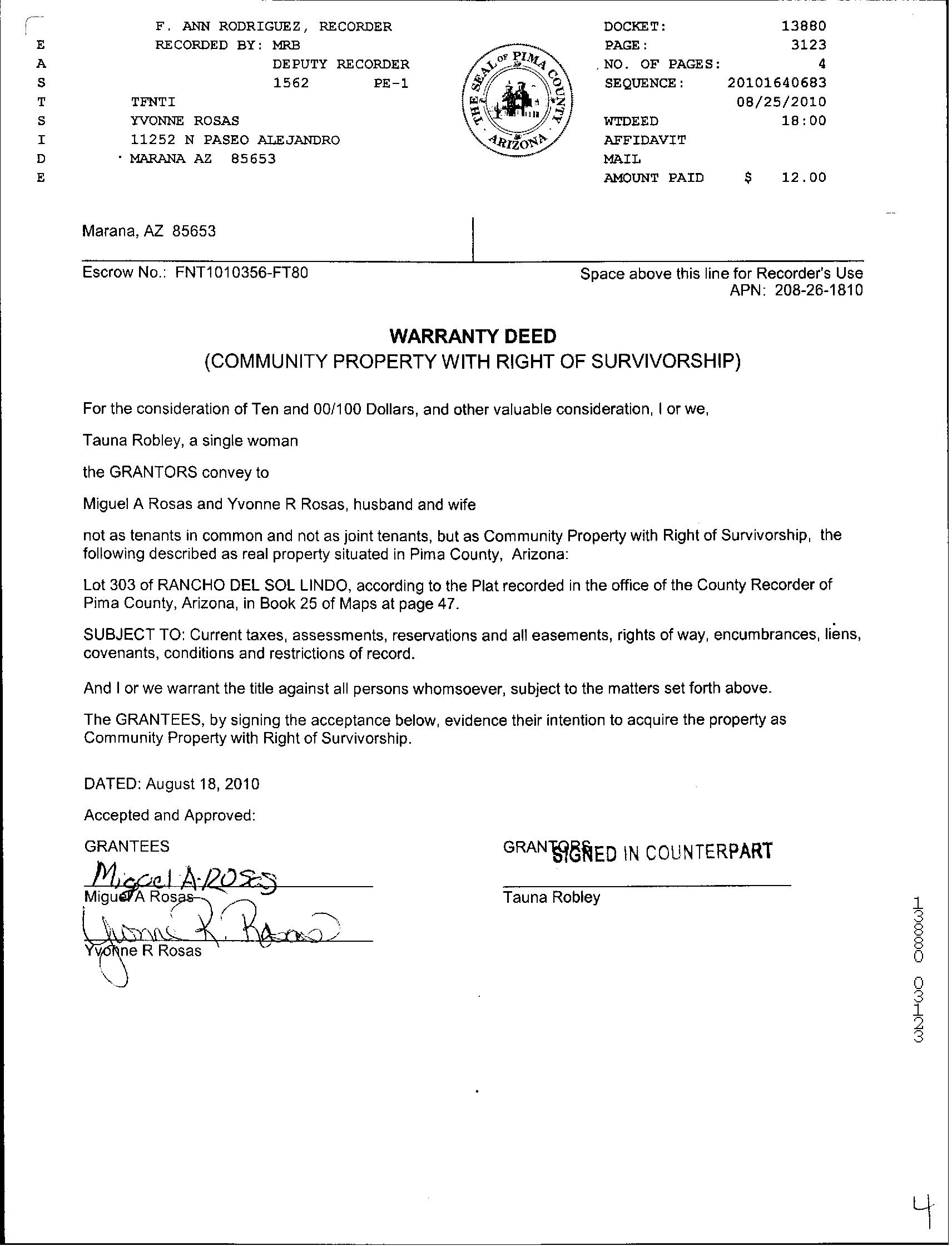 #3 11442 N Paseo Alejandro Marana Az 85653 Owner Name: Ford Matthew E /