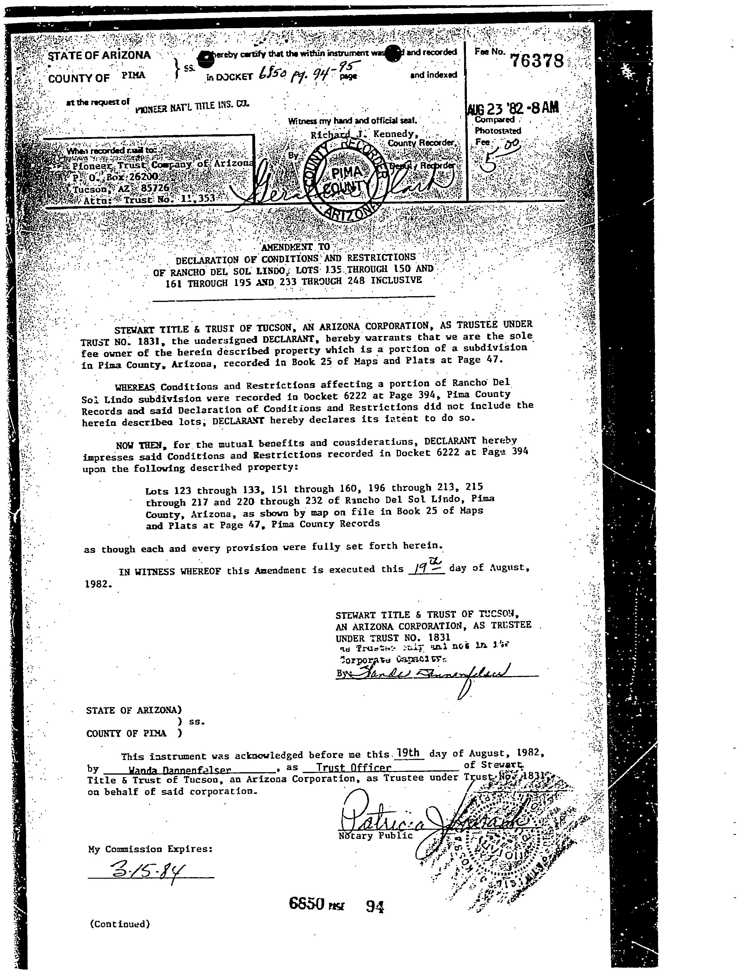 Legal Description : Rancho Del Sol Lindo Lot 303