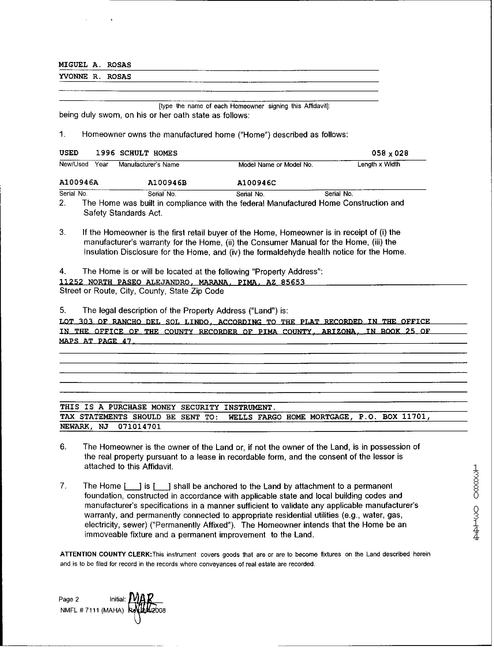 #8 16821 W Calle Carmela Marana Az 85653 Owner Name: Duarte Victor Alfredo /
