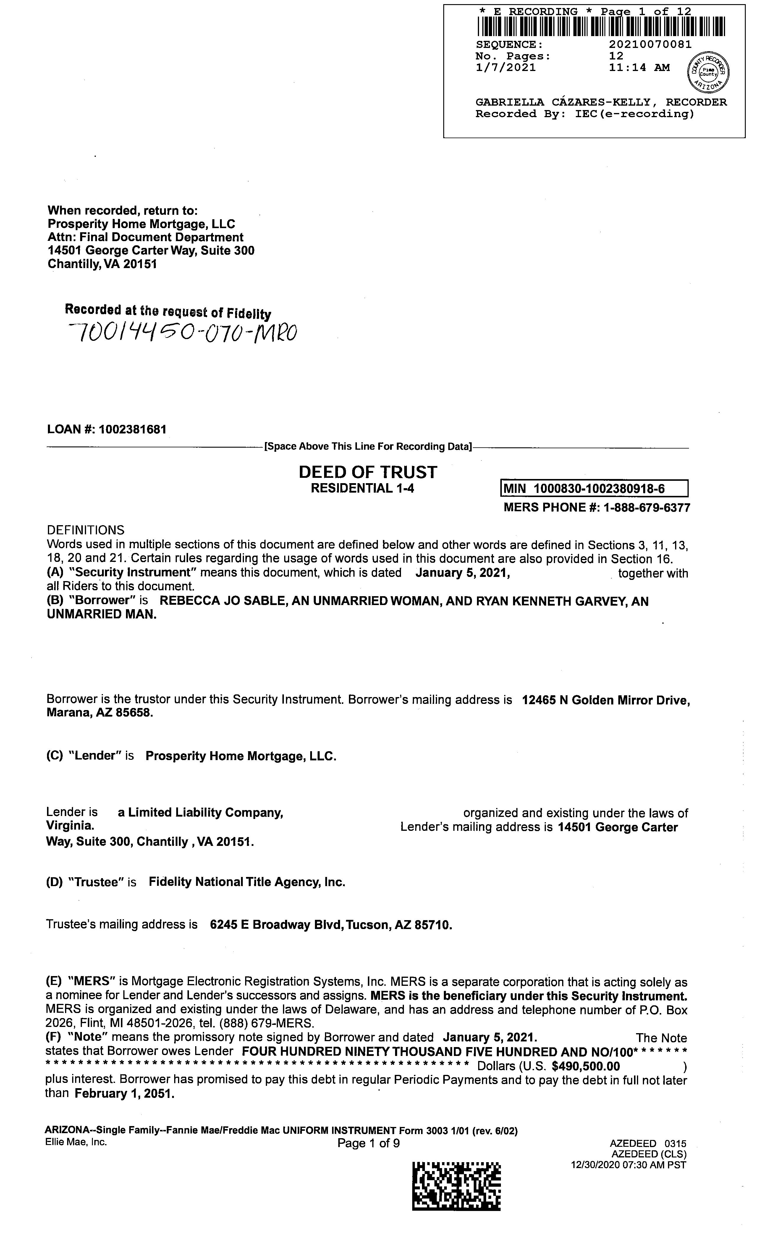 Mailing Address : 12465 N Golden Mirror Dr, Marana AZ 85658-4746 H018