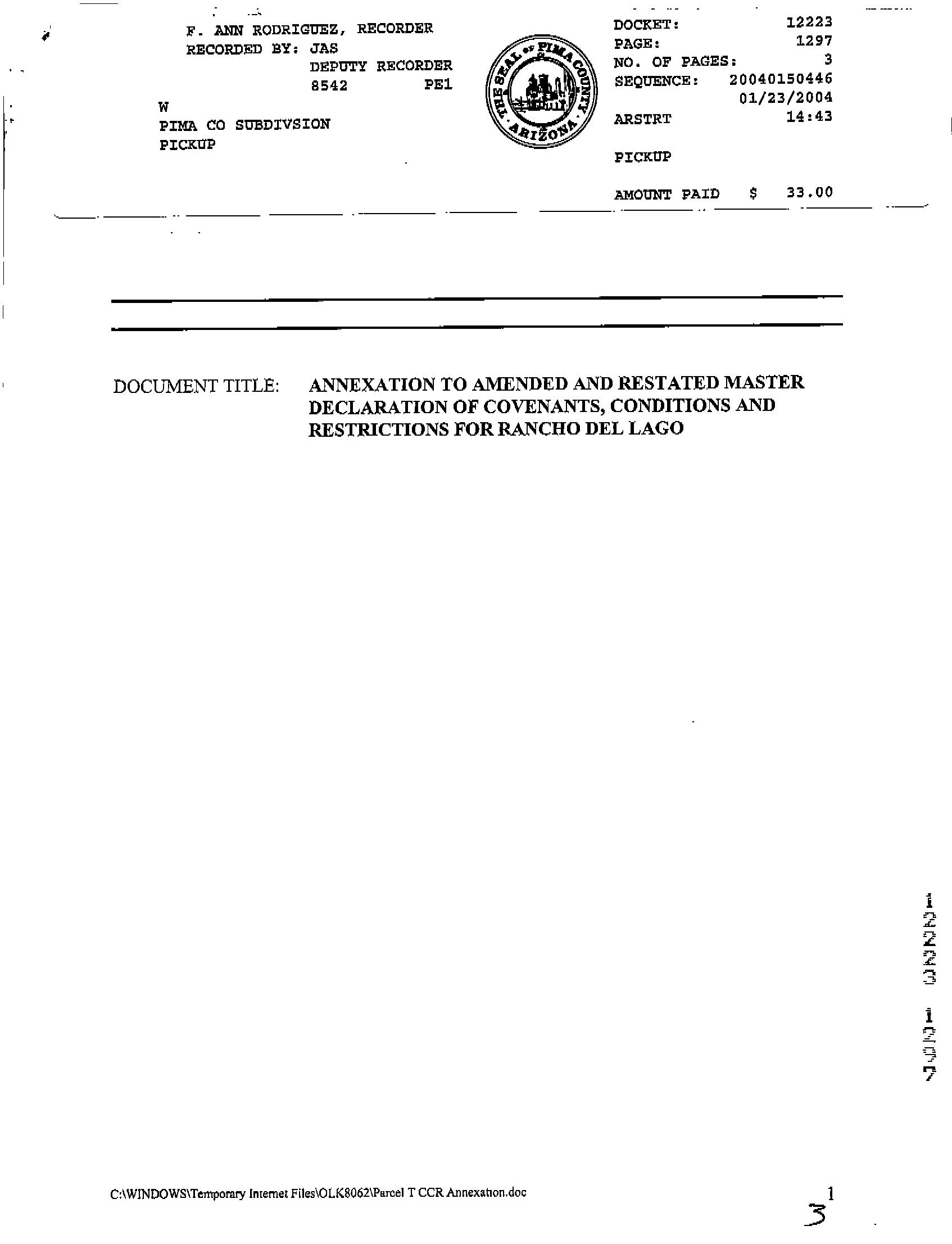 Owner Name : Rohr Wallace John Iii Subdivision : Del Lago Rho