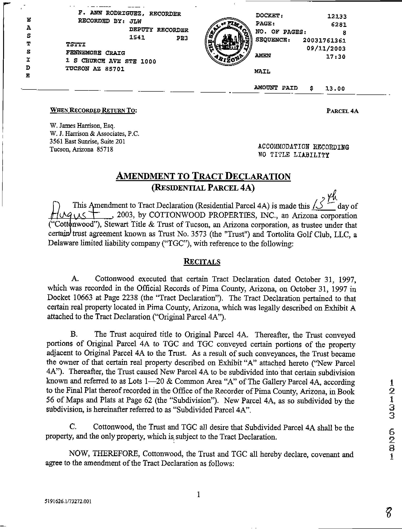 #8 6067 W Seven Saguaros Cir Marana Az 85658 Owner Name: Smith James /Smith Michale C
