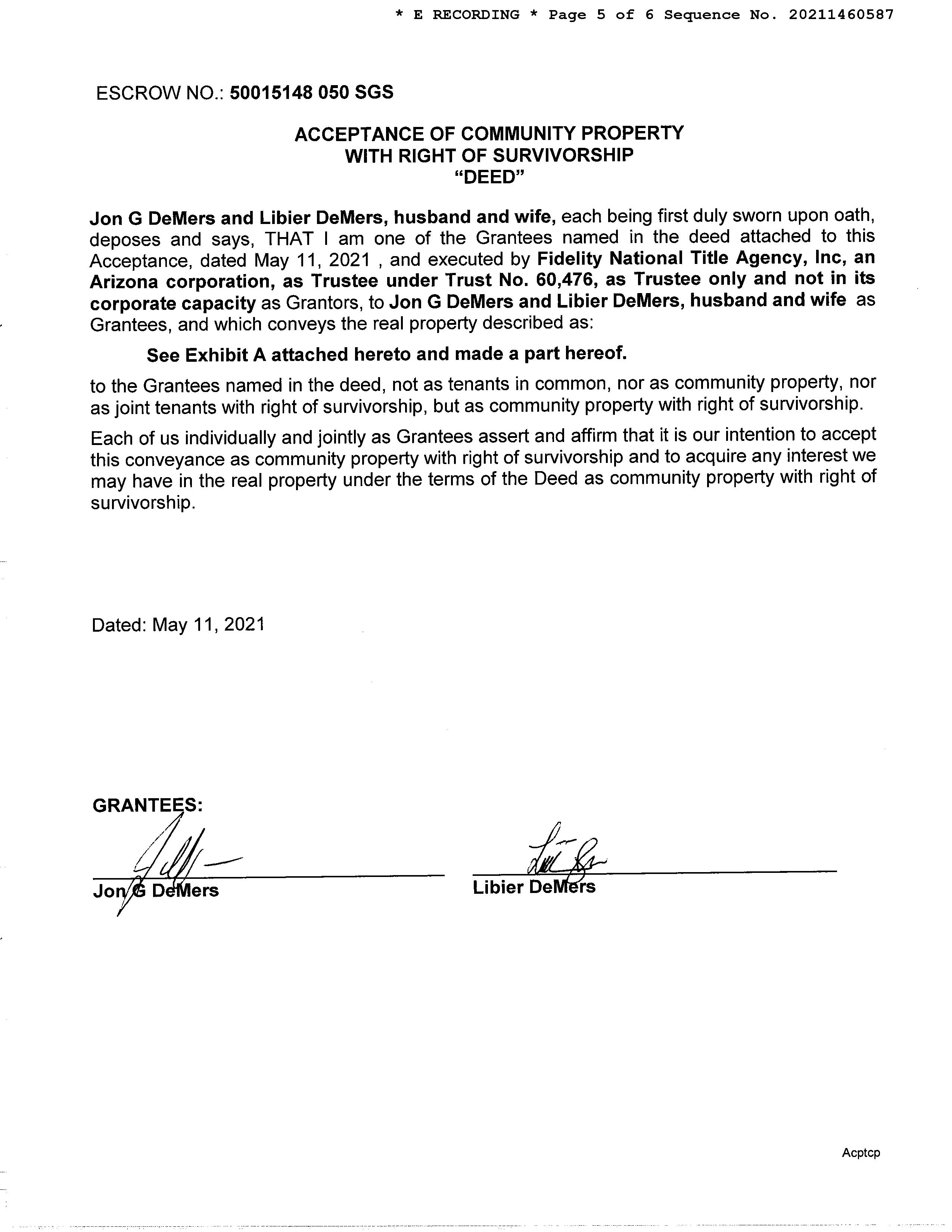 Owner Name : De Mers Jon G / De Mers Libier