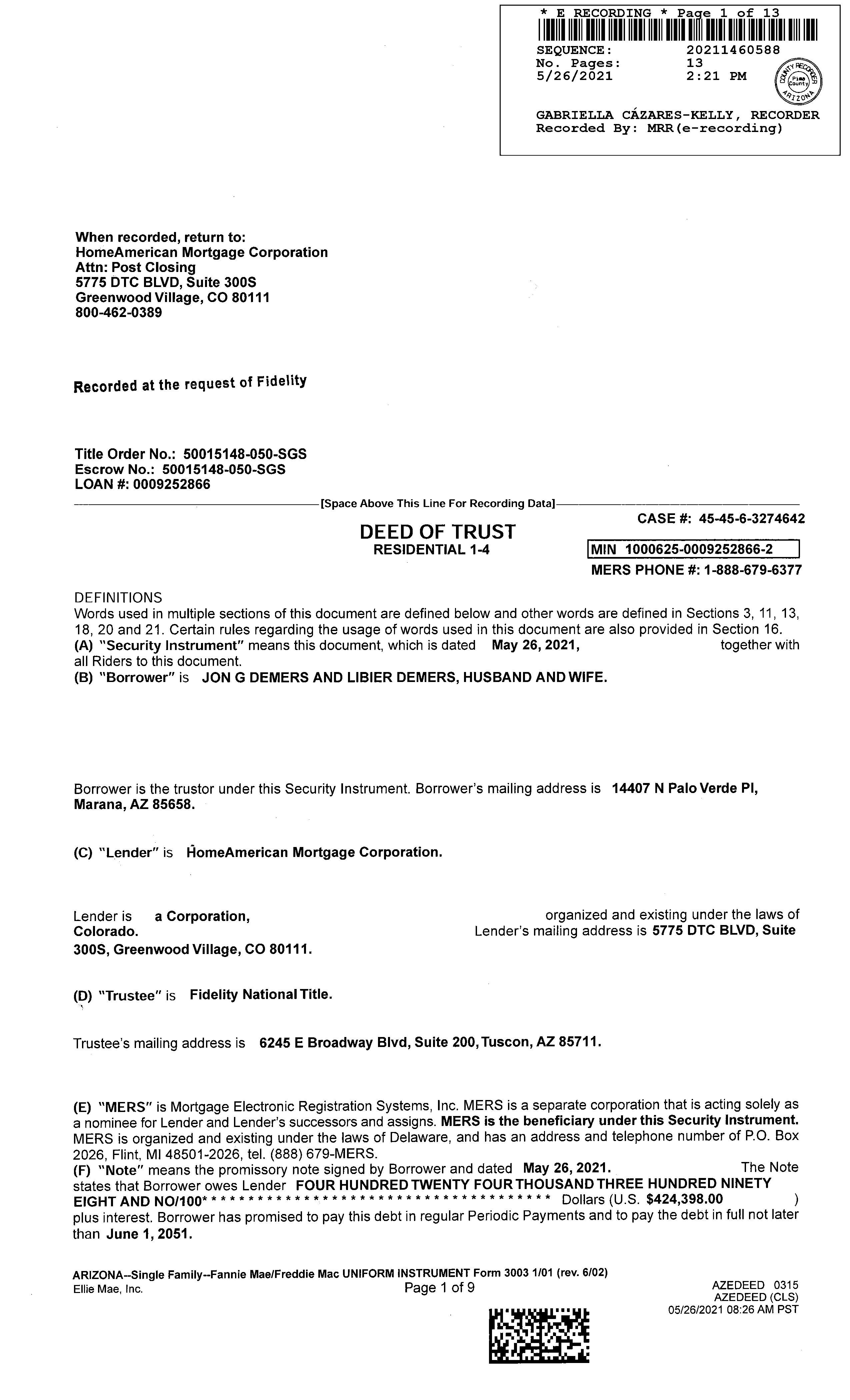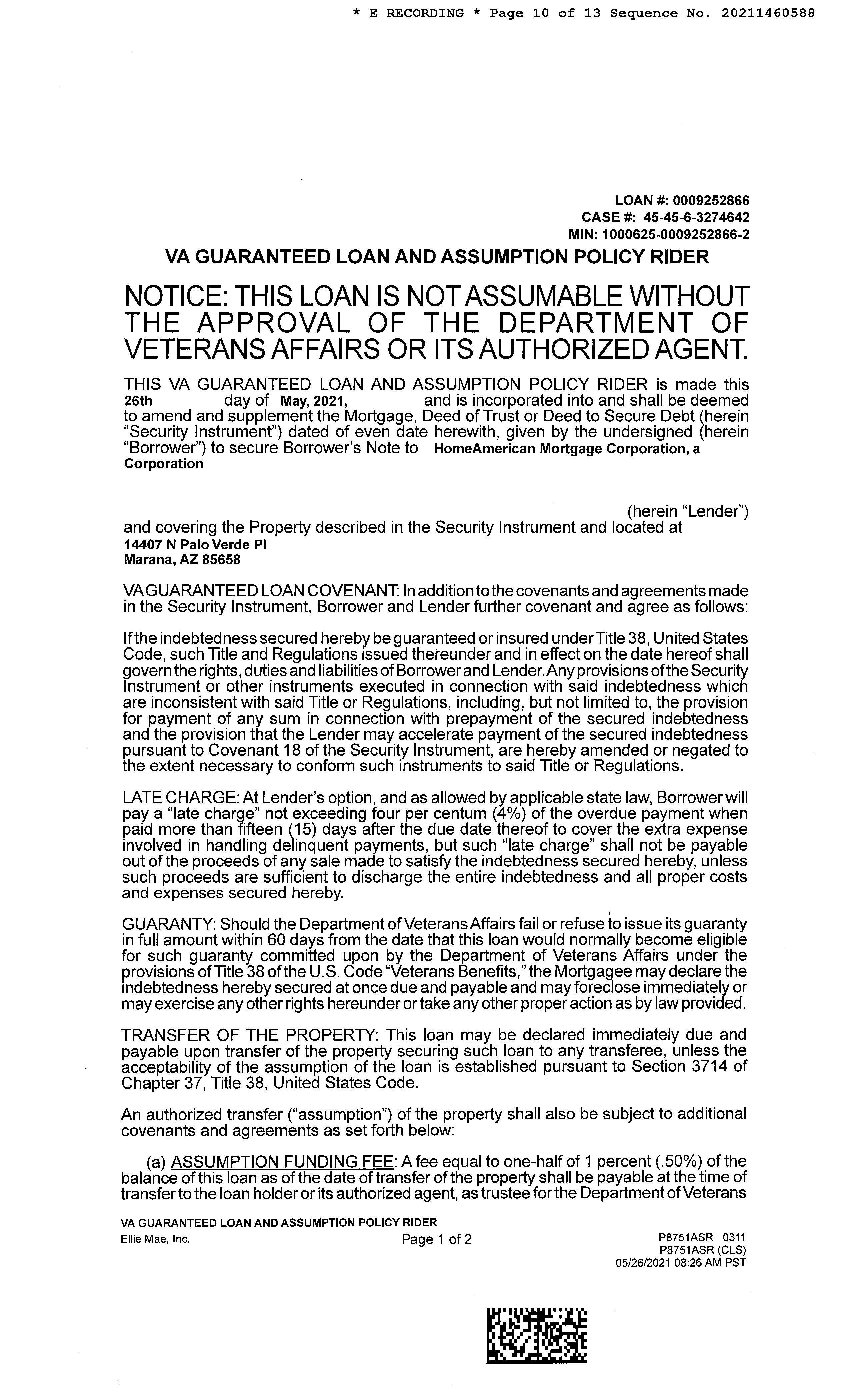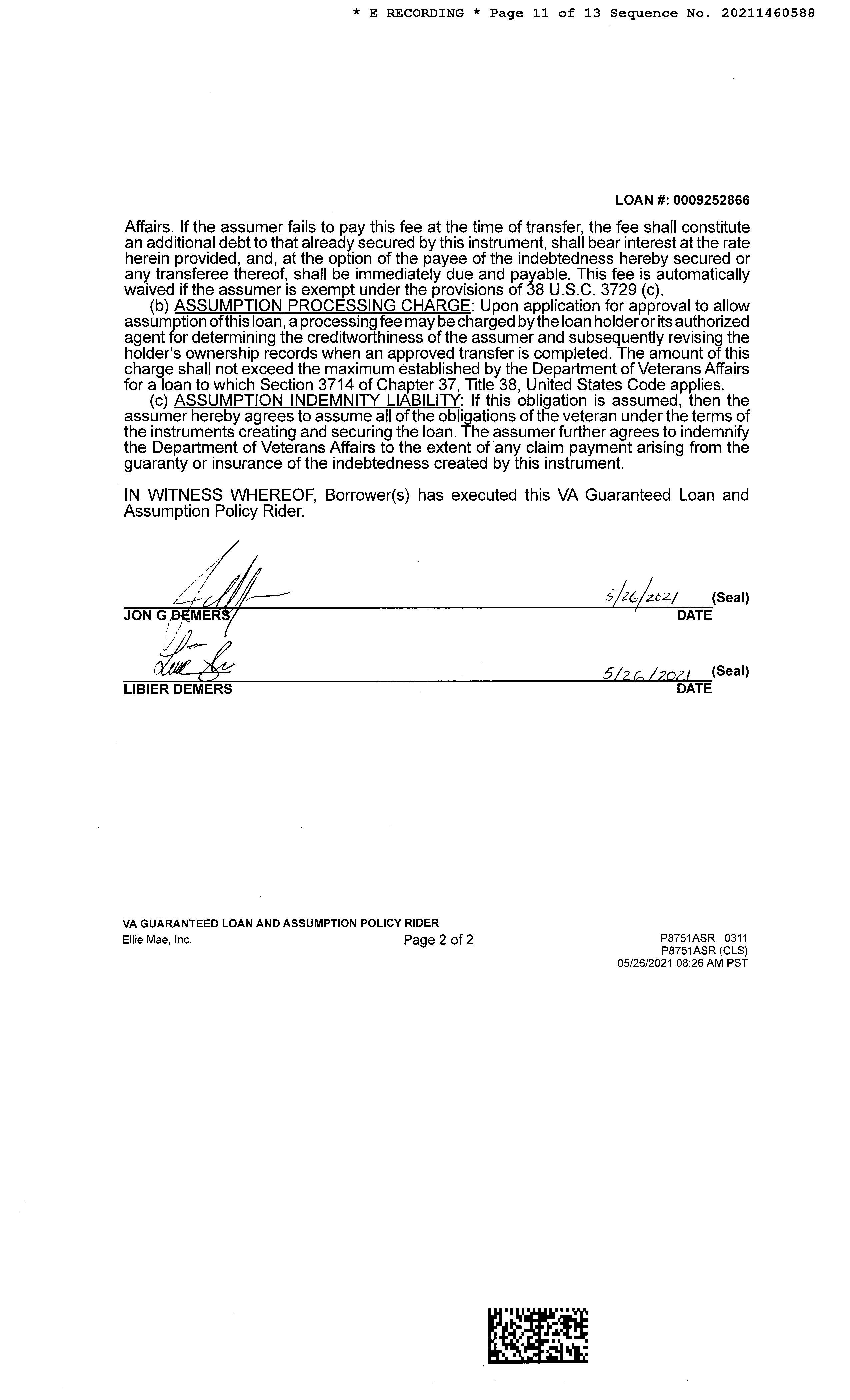 Recording/Sale Date : 05/26/2021 / 05/11/2021 1st Mtg Amount/Type : $424,398 / Va