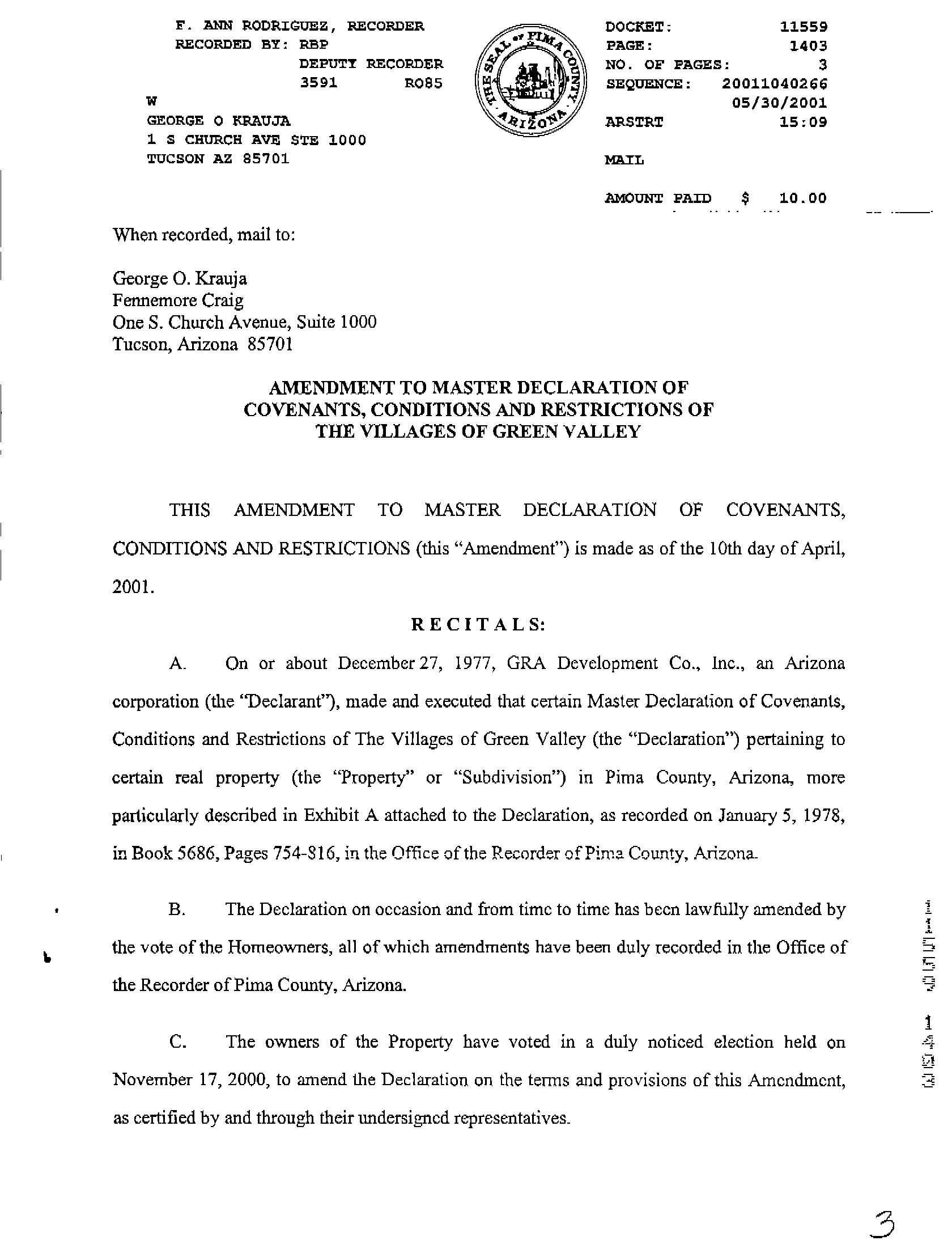 Mailing Address : 1481 N Rio Santa Cruz, Green Valley AZ 85614-3930 C079