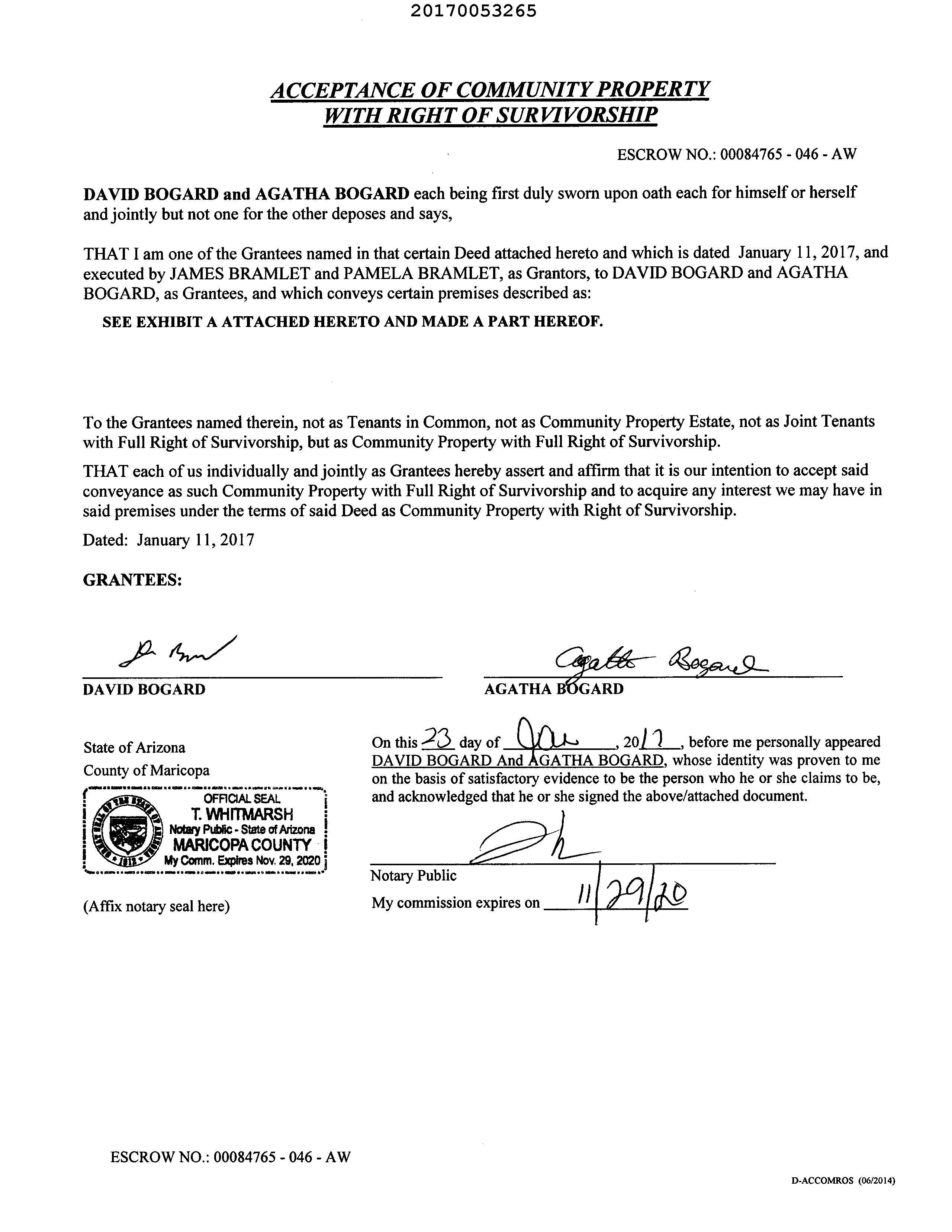 Mailing Address : 1802 E Brookwood Ct, Phoenix AZ 85048-8622 C023