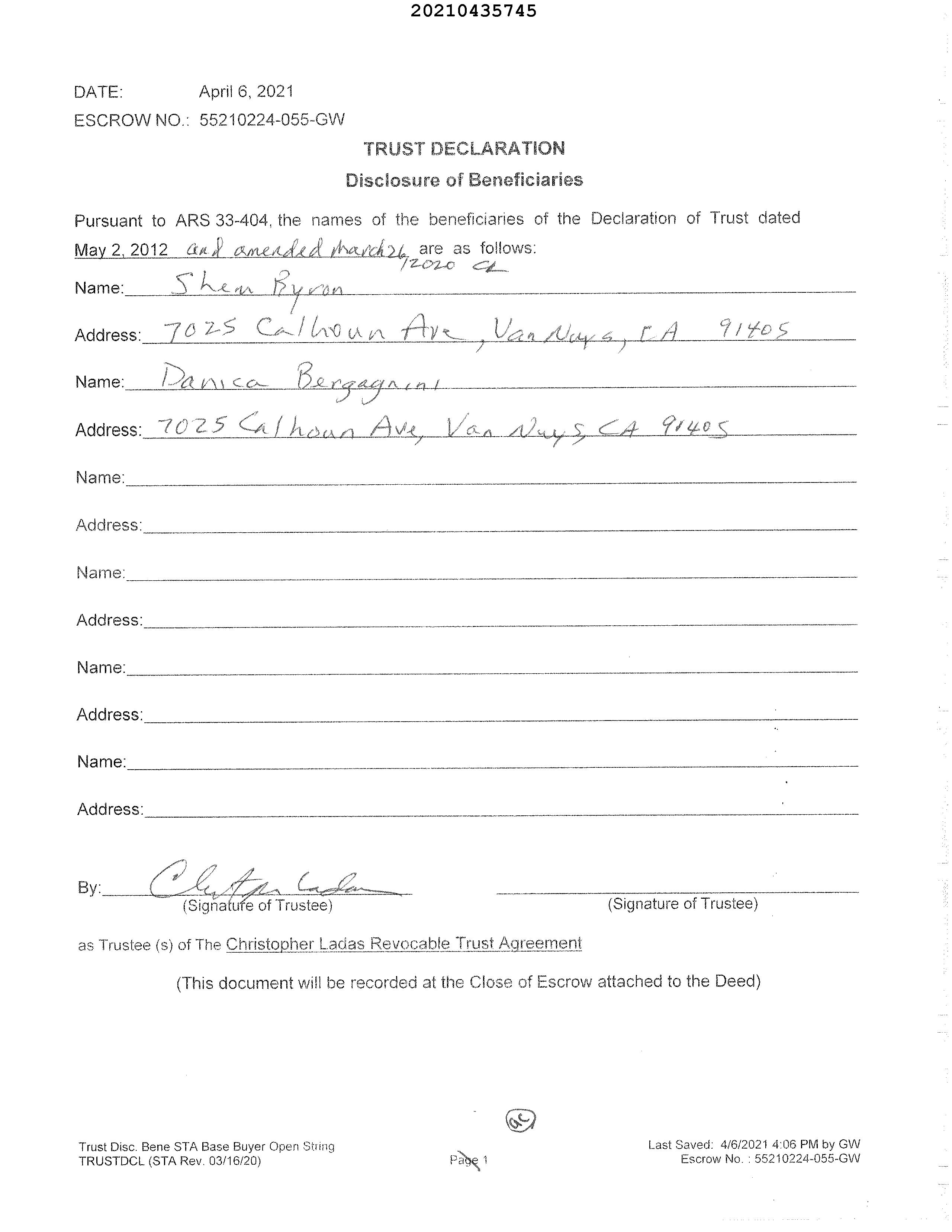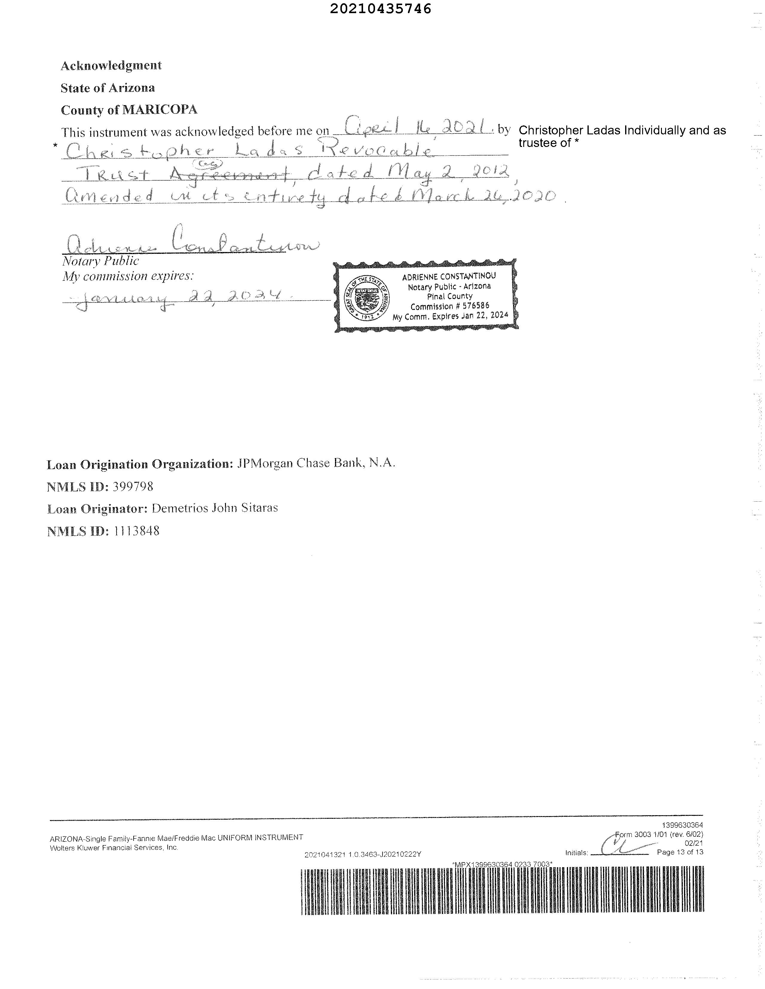 Property: 1802 E Brookwood Ct Phoenix Az 85048 Owner Name: Christopher Ladas /