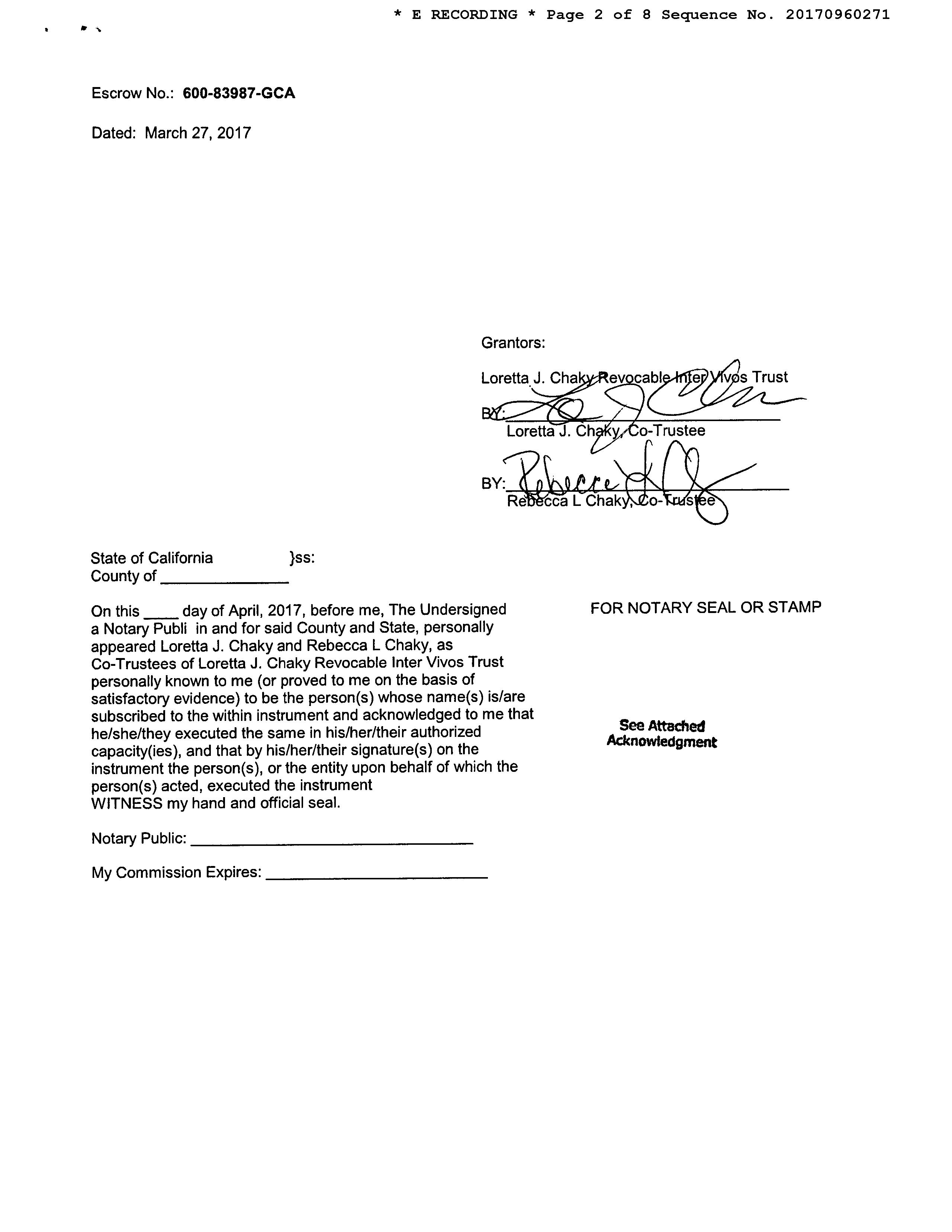 Seller Name : Chaky Loretta J Trust