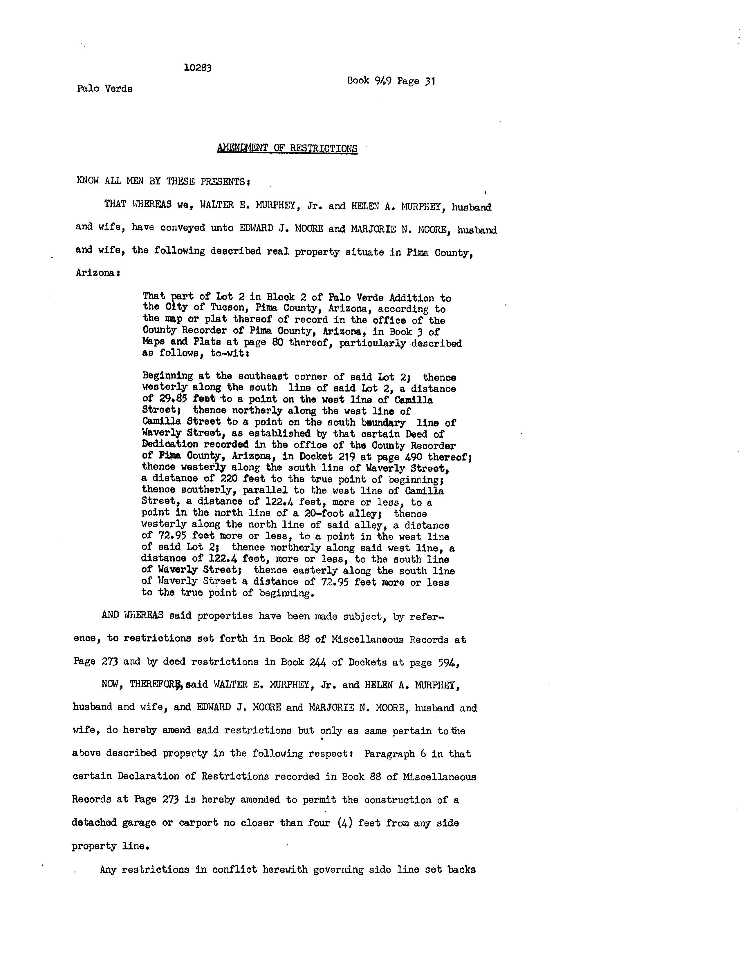 Legal Description : Palo Verde Amended S60' N496' W132.8' Lot 3 Blk 1