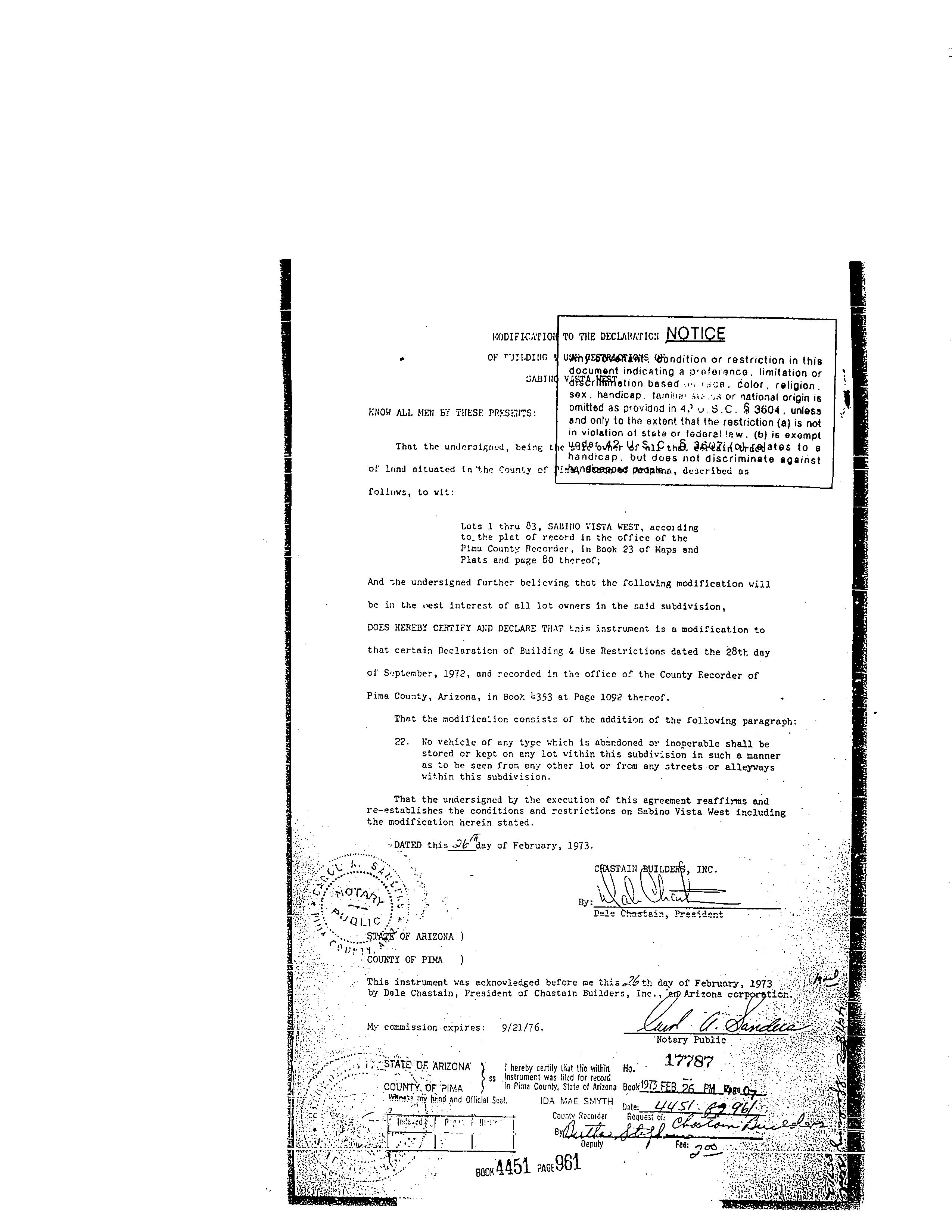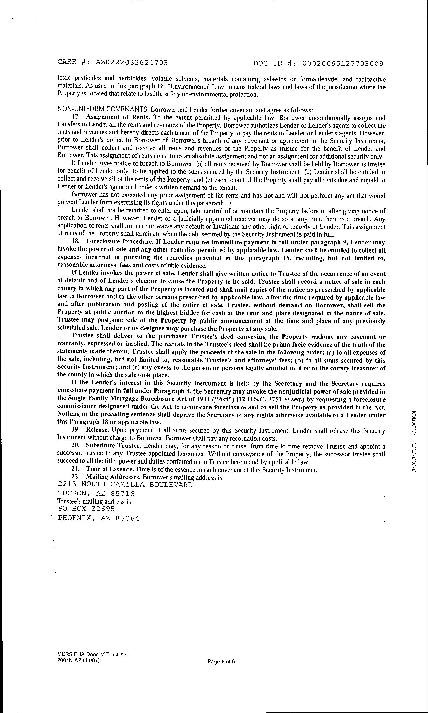 Mailing Address : 2213 N Camilla Blvd, Tucson AZ 85716-2849 C012