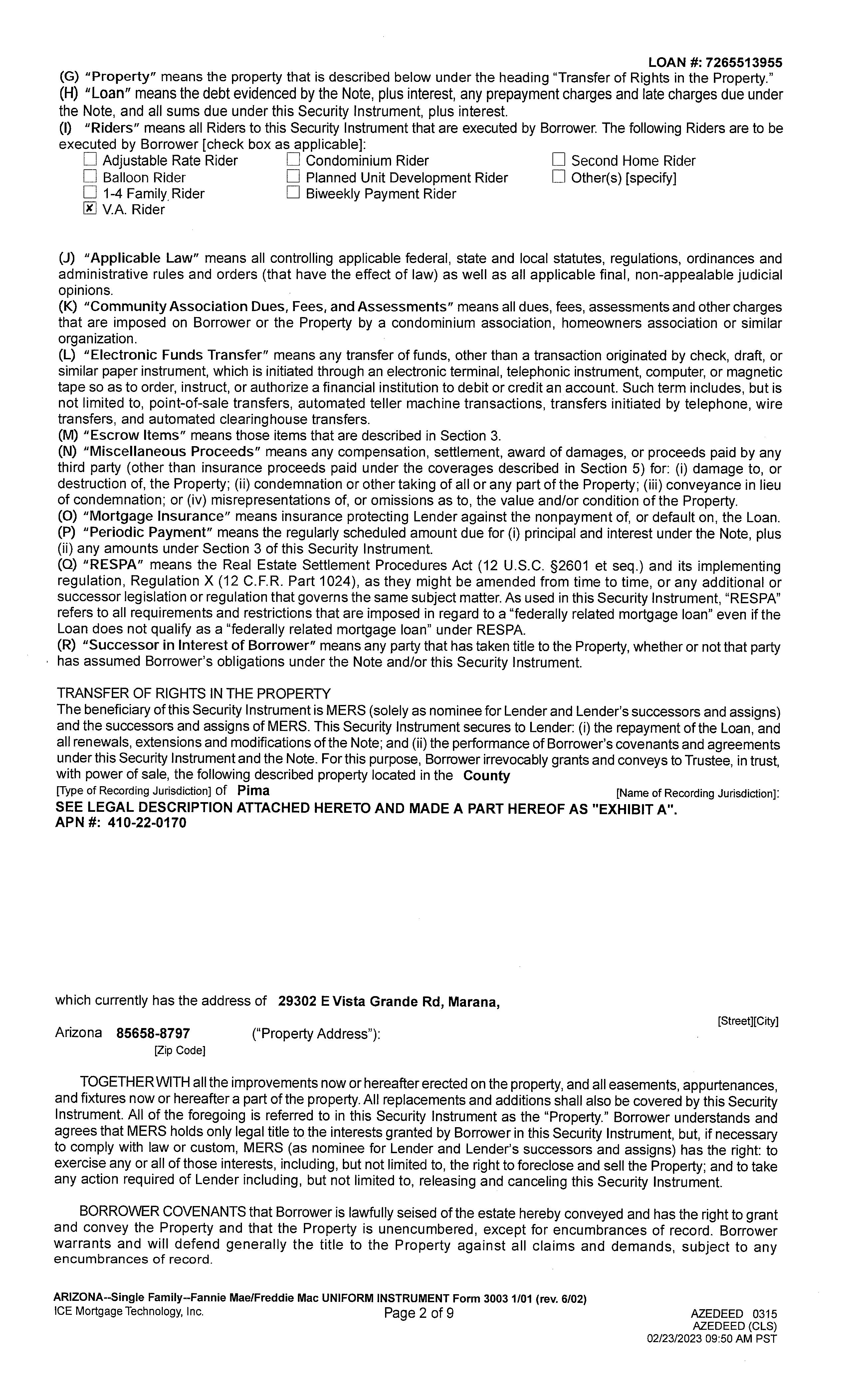 Subject Property : 29302 E Vista Grande Rd Marana AZ 85658