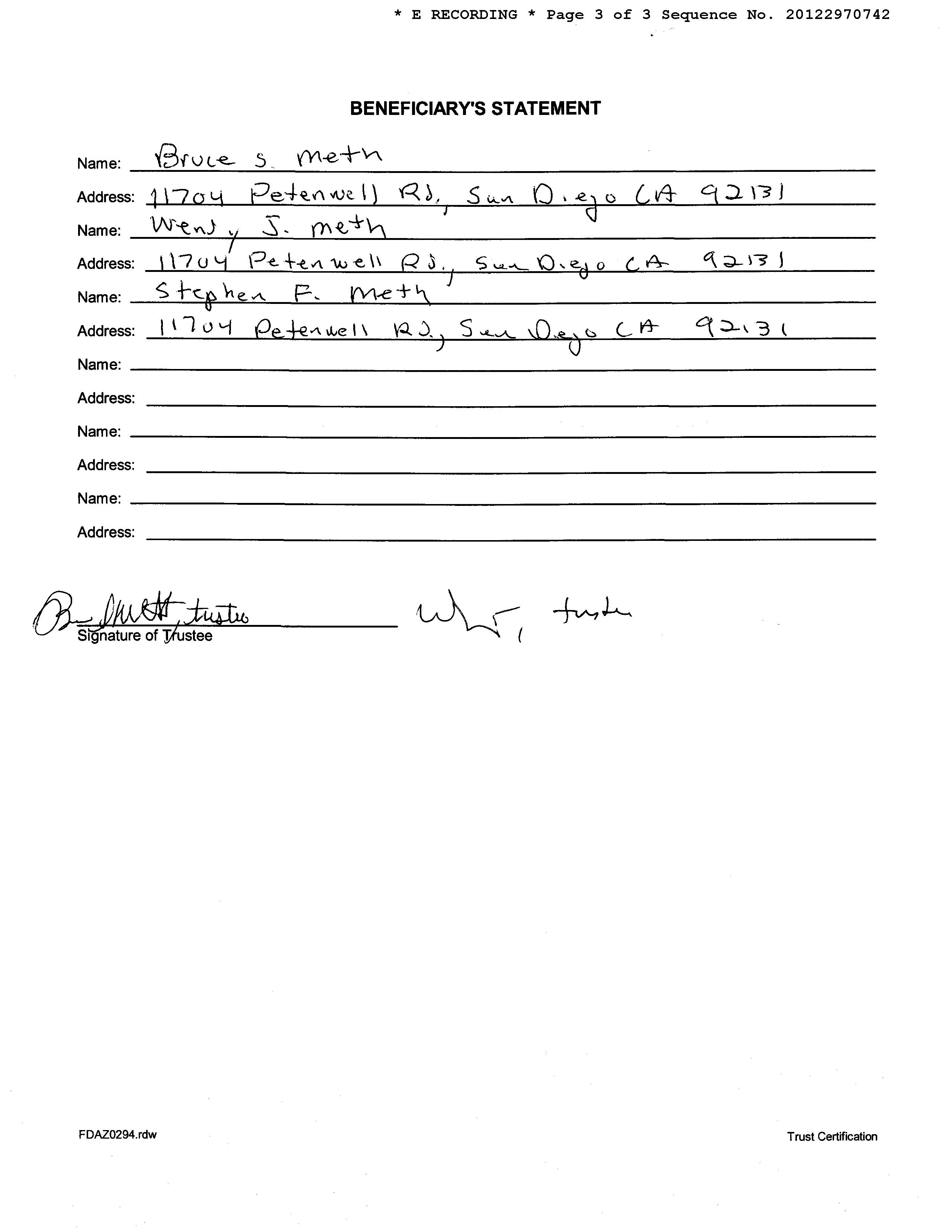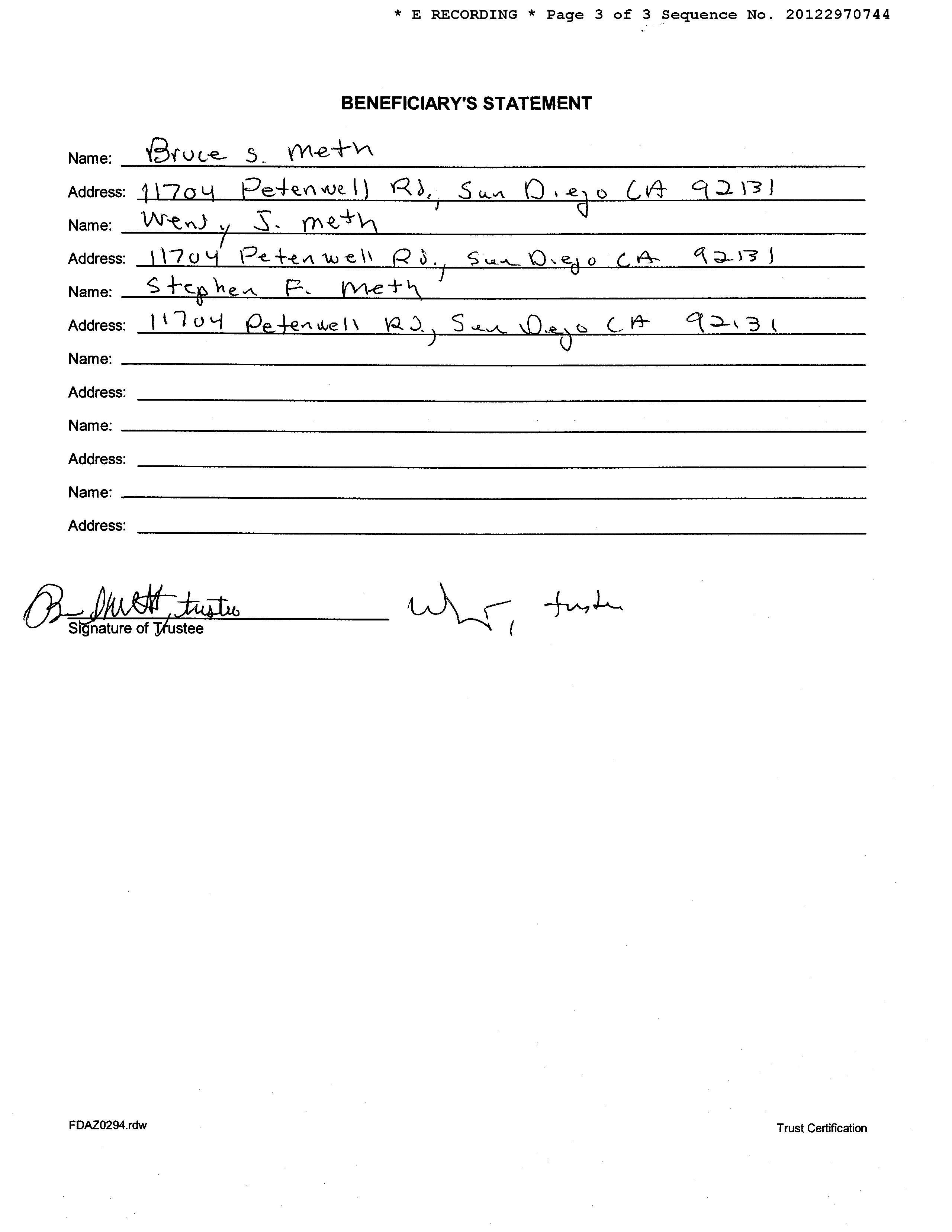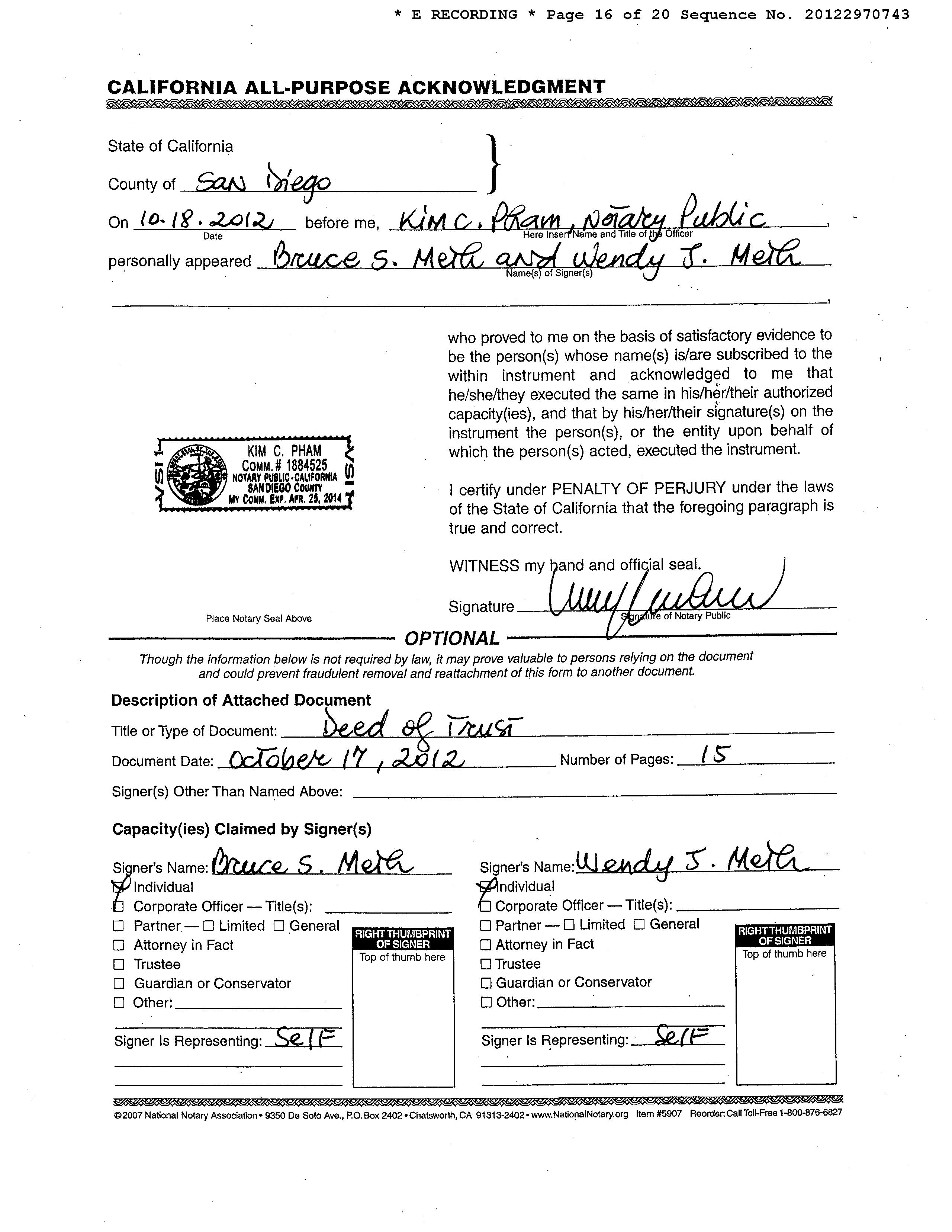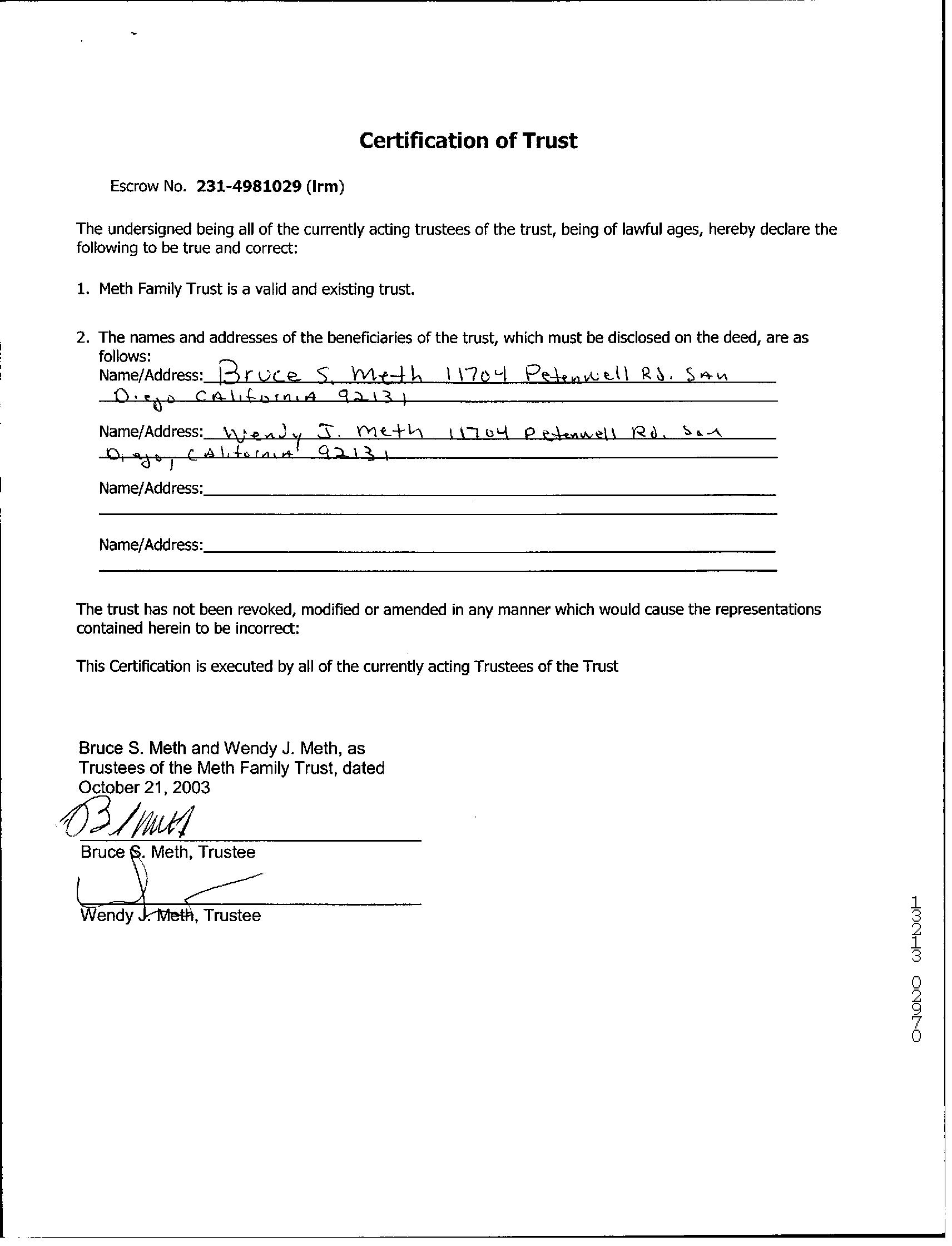 Mailing Address : 11704 Petenwell Rd, San Diego CA 92131-3622 C034
