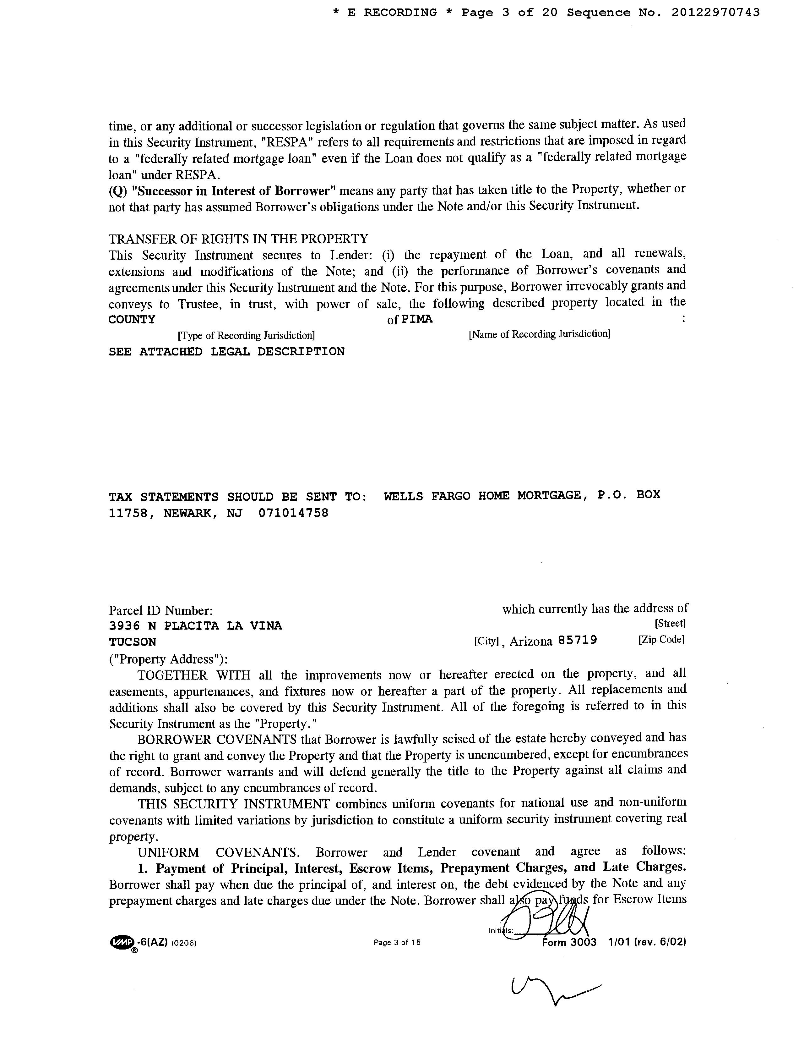 Subject Property :   3936 N Placita La Vina Tucson AZ 85719