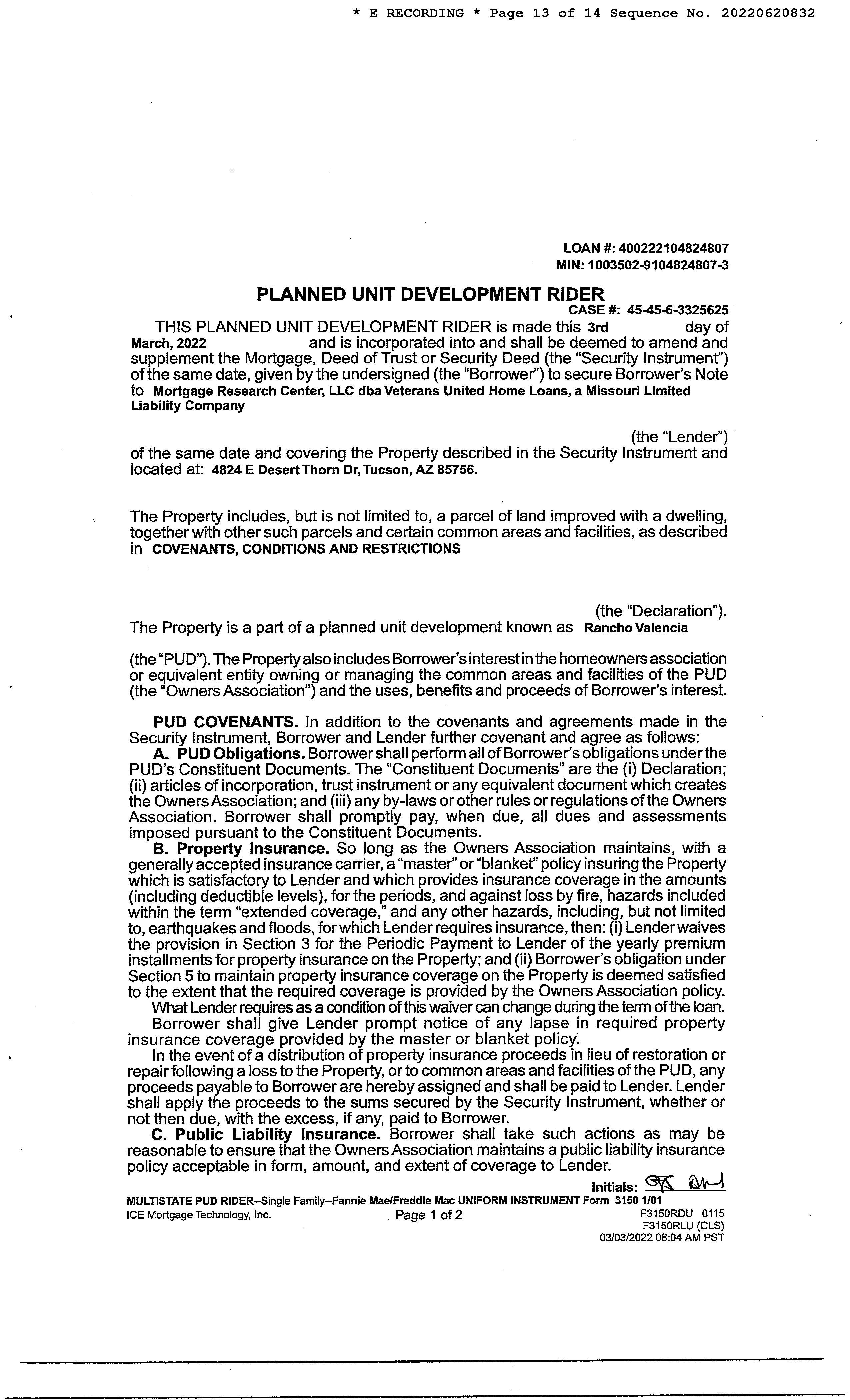 Mailing Address : 4824 E Desert Thorn Dr, Tucson AZ 85756-5179 C026