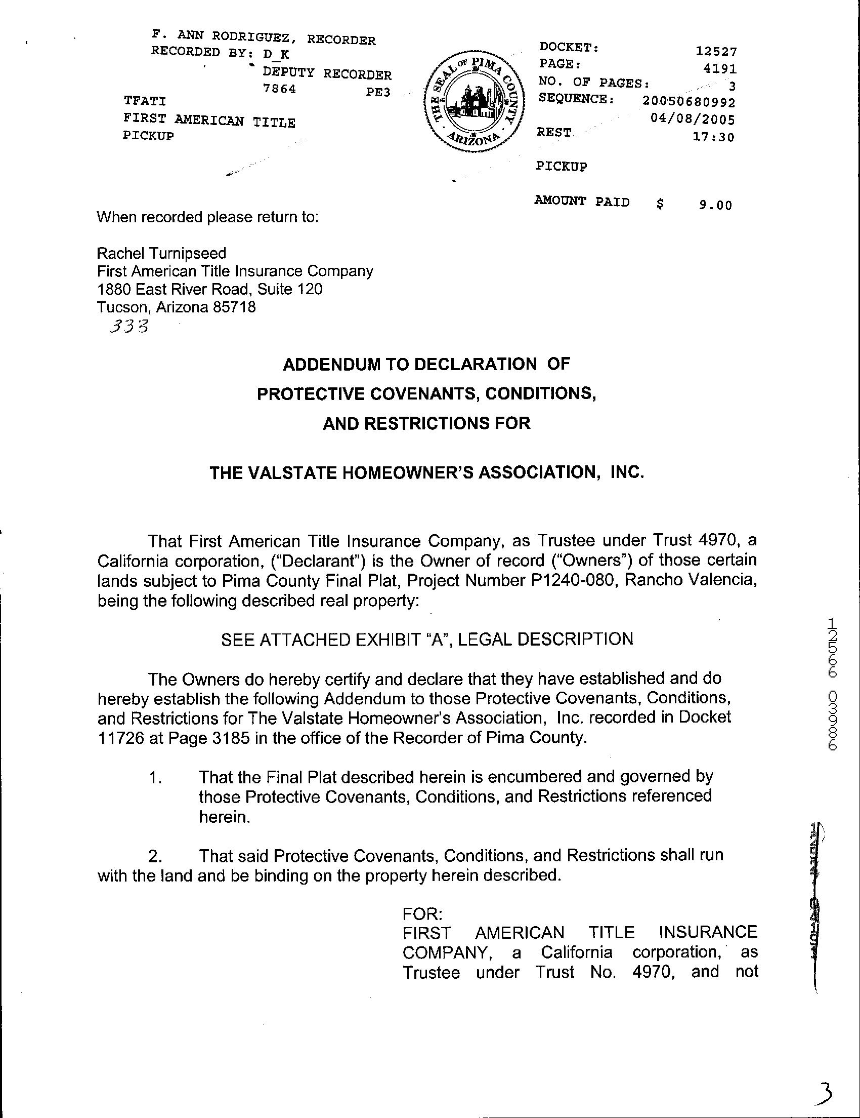 This report is not an insured product or service or a representation of the condition of title to real property. It is not an abst ract, legal opinion, opinion of title, title insurance commitment or preliminary report, or any form of Title Insurance or Guaranty. This report is issued exclusively for the benefit of the Applicant therefor and may not be used or relied upon by any other person. This report may not be reproduced in any manner without First American or Title Security's prior written consent. First American or Title Security does not represent or warrant that the information herein is complete or free from error, and the information herein is provided without any warranties of any kind, as-is, and with all faults. As a material part of the consideration given in exchange for the issuance of this report, recipient agrees that First American or Title Security's sole liability for any loss or damage caused by an error or omission due to inaccurate information or negligence in preparing this report shall be limited to the fee charged for the report. Recipient accepts this report with this limitation and agrees that First American or Title Security would not have issued this report but for the limitation of liability described above. First American or Title Security makes no representation or warranty as to the legality or propriety of recipient's use of the information herein.