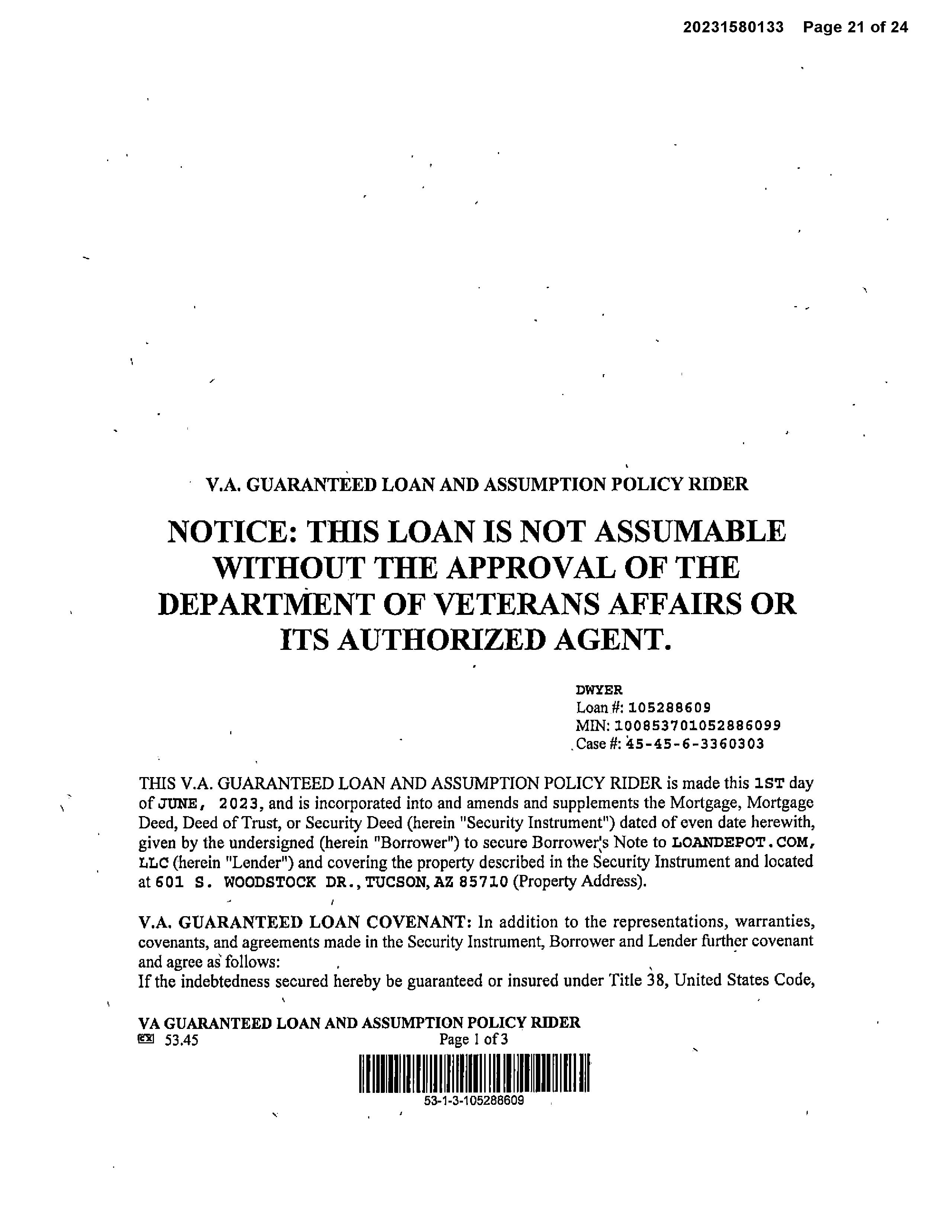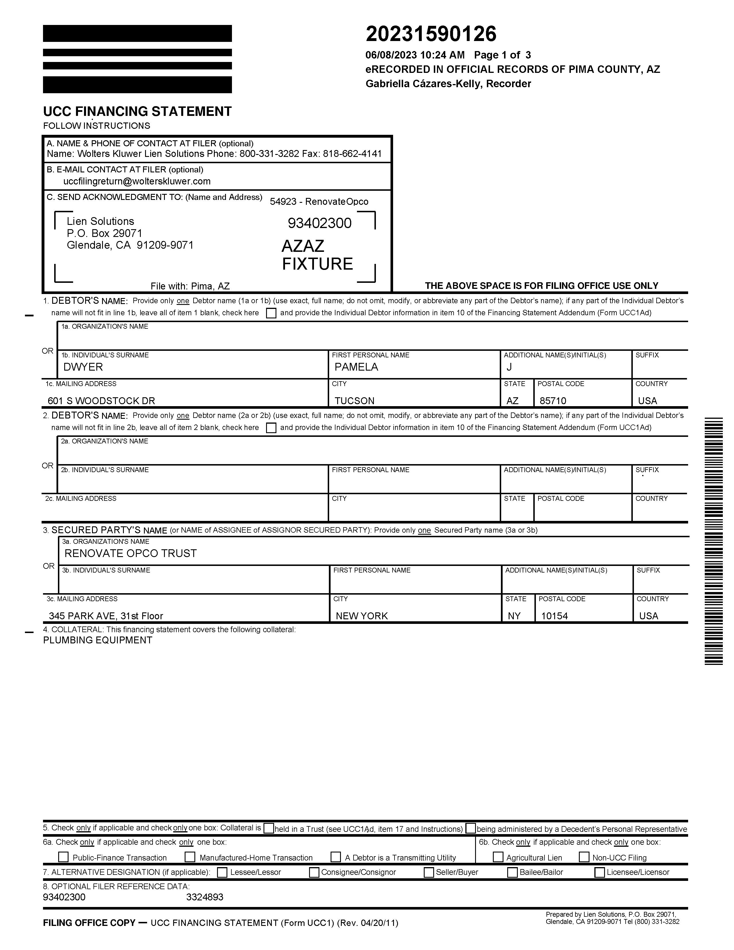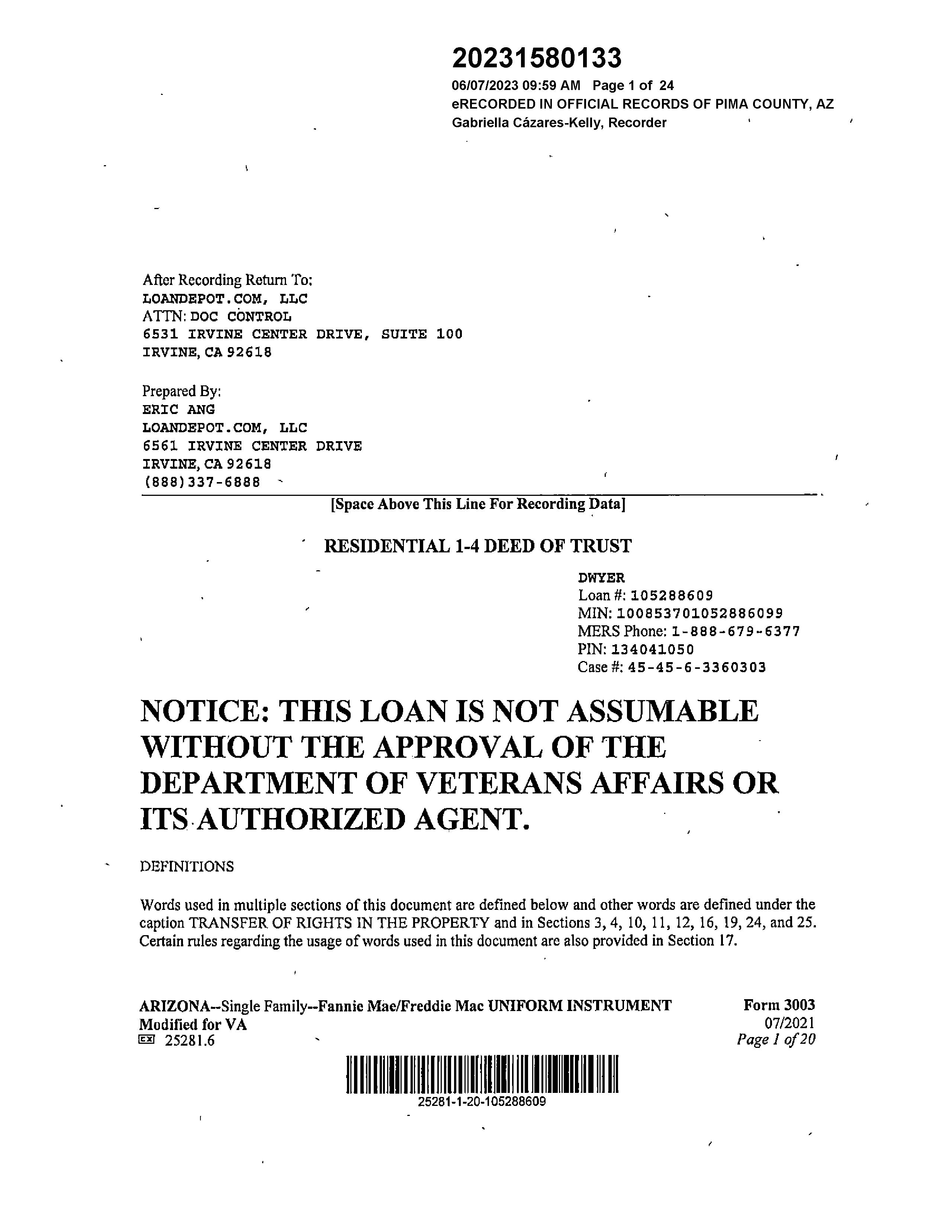 Subject Property: 601 S Woodstock Dr Tucson Az 85710 Owner Name: Dwyer Brian L /Dwyer Pamela J