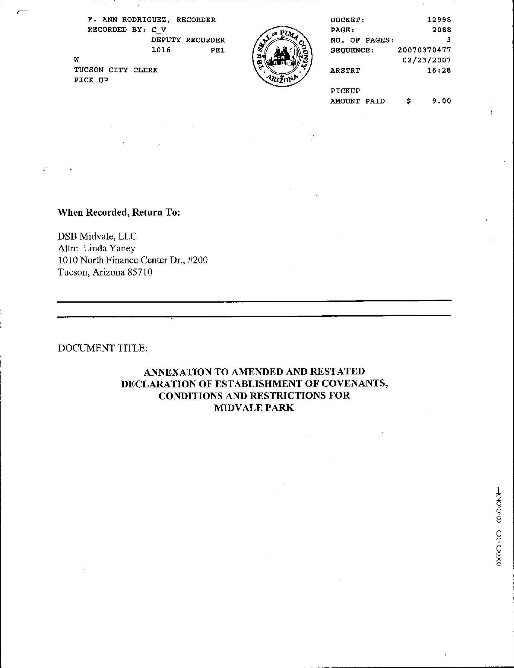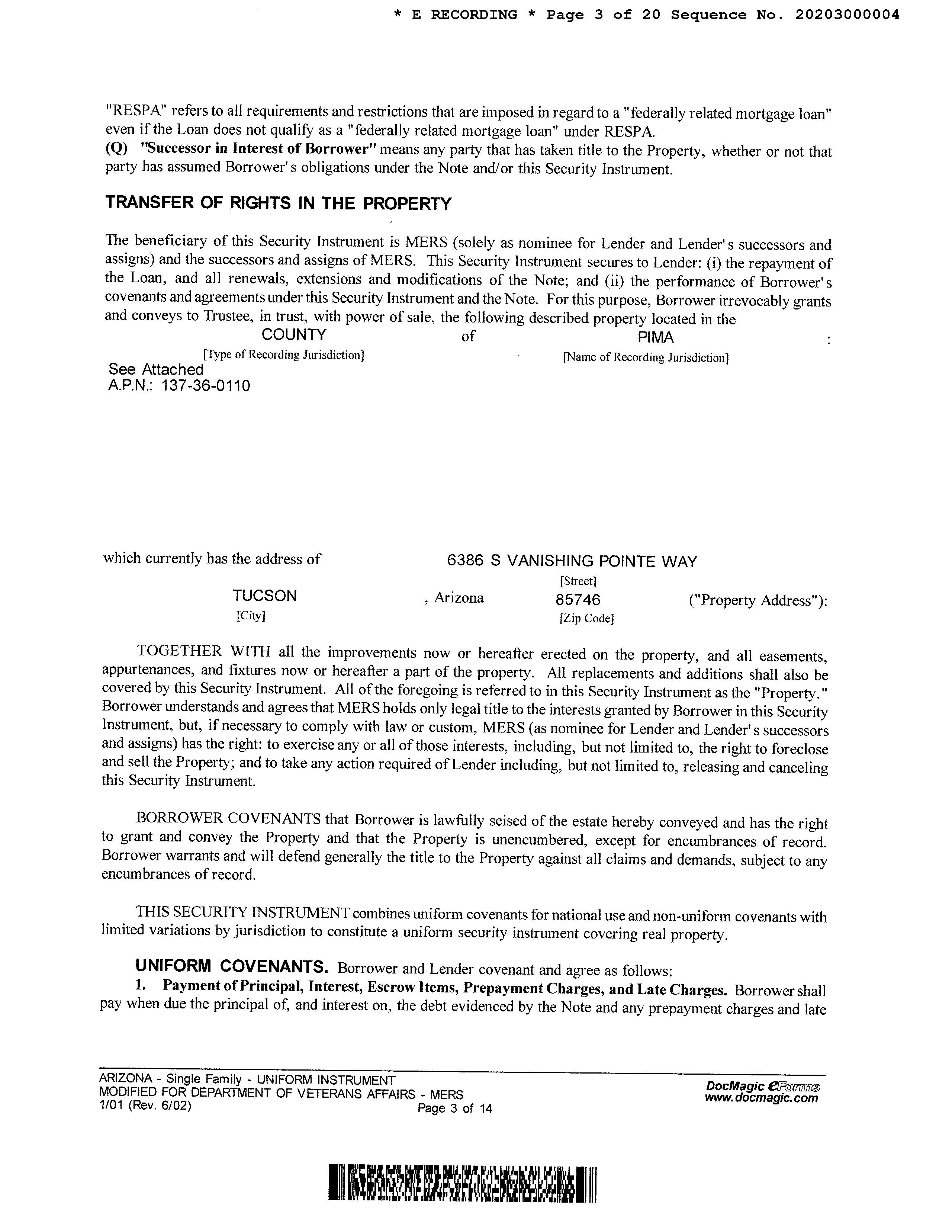 Mailing Address : 6386 S Vanishing Pointe Way, Tucson AZ 85746-6631 C013