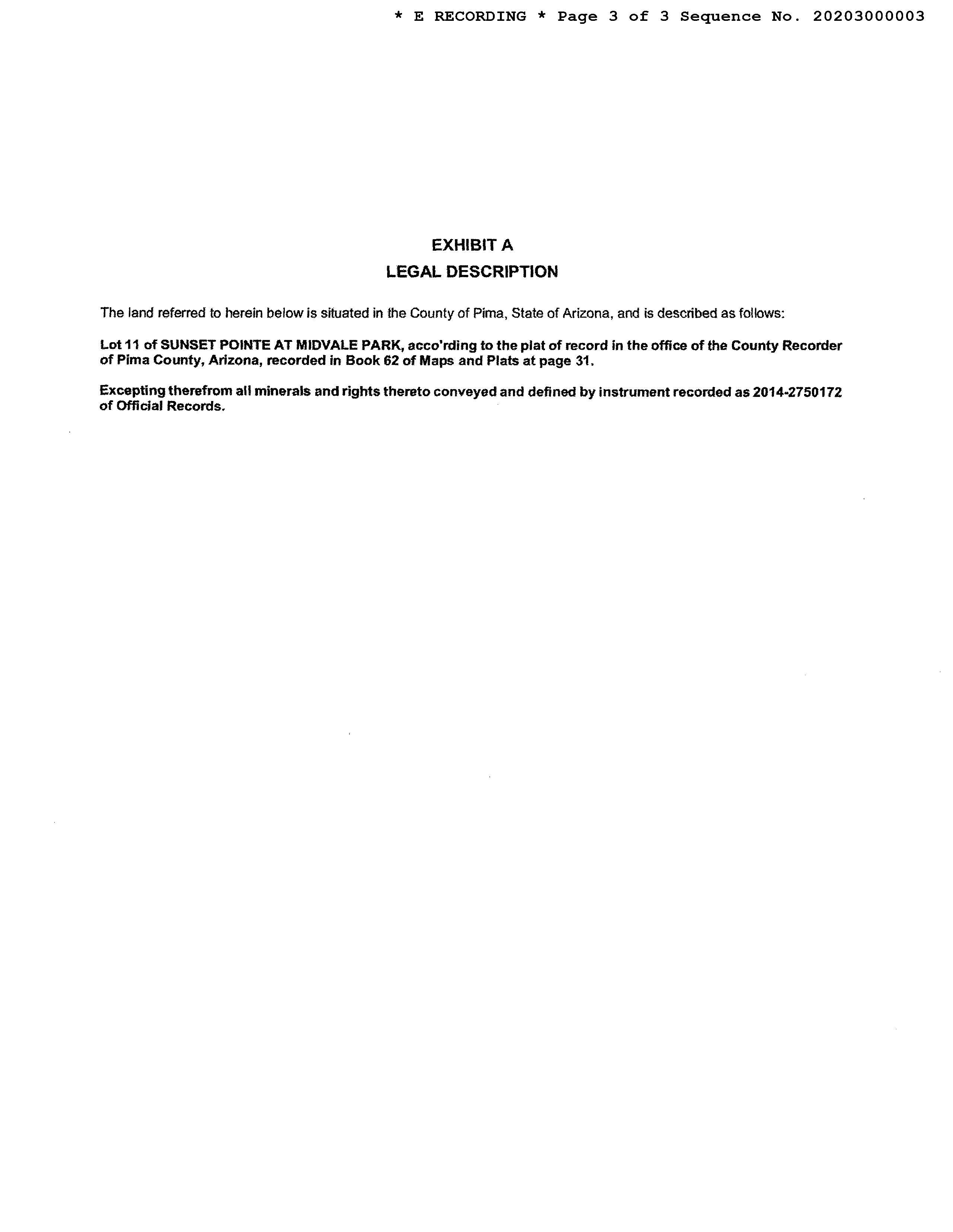 Legal Description : Sunset Pointe At Midvale Park Lot 11 Exc Mineral Rights Below 30-ft