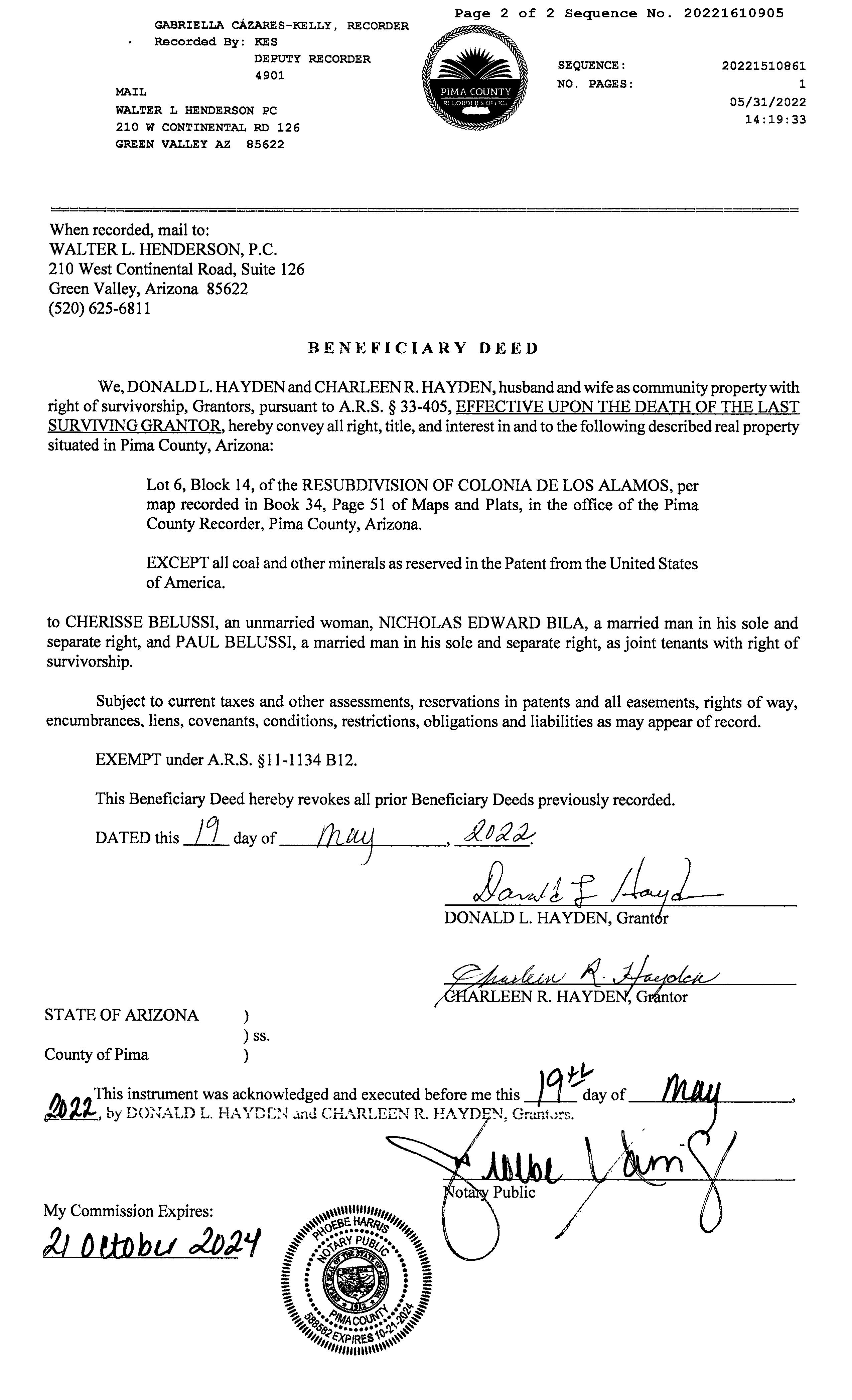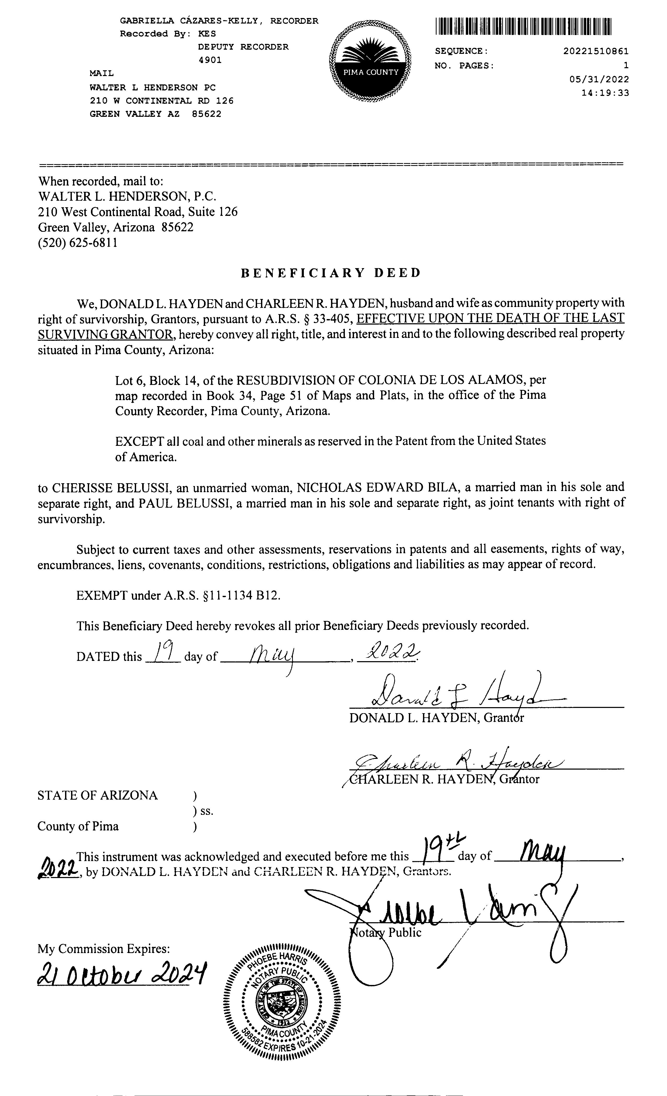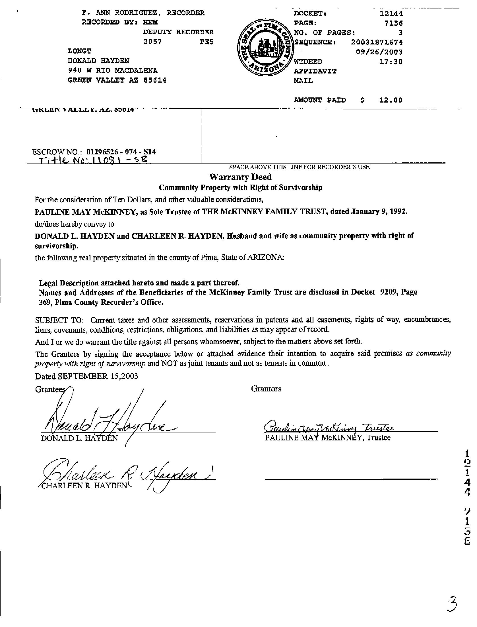 Owner Name : Hayden Donald L / Hayden Charleen R
