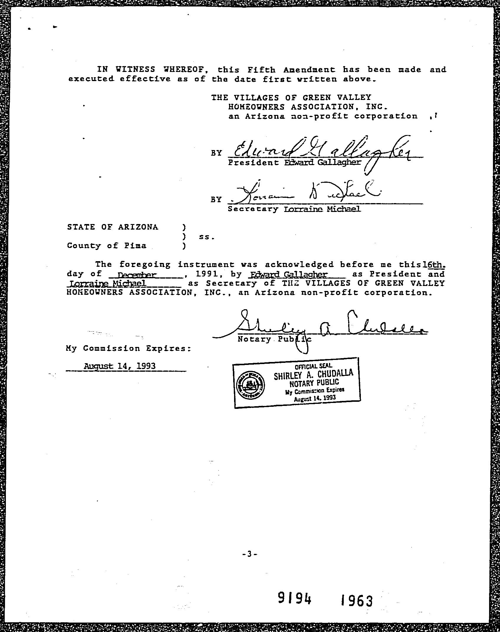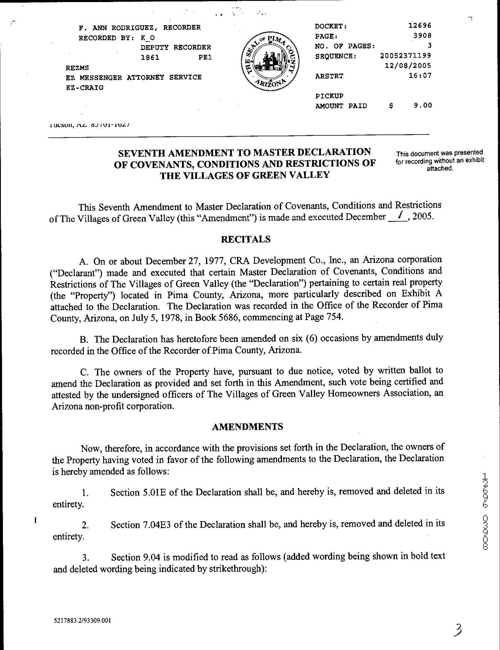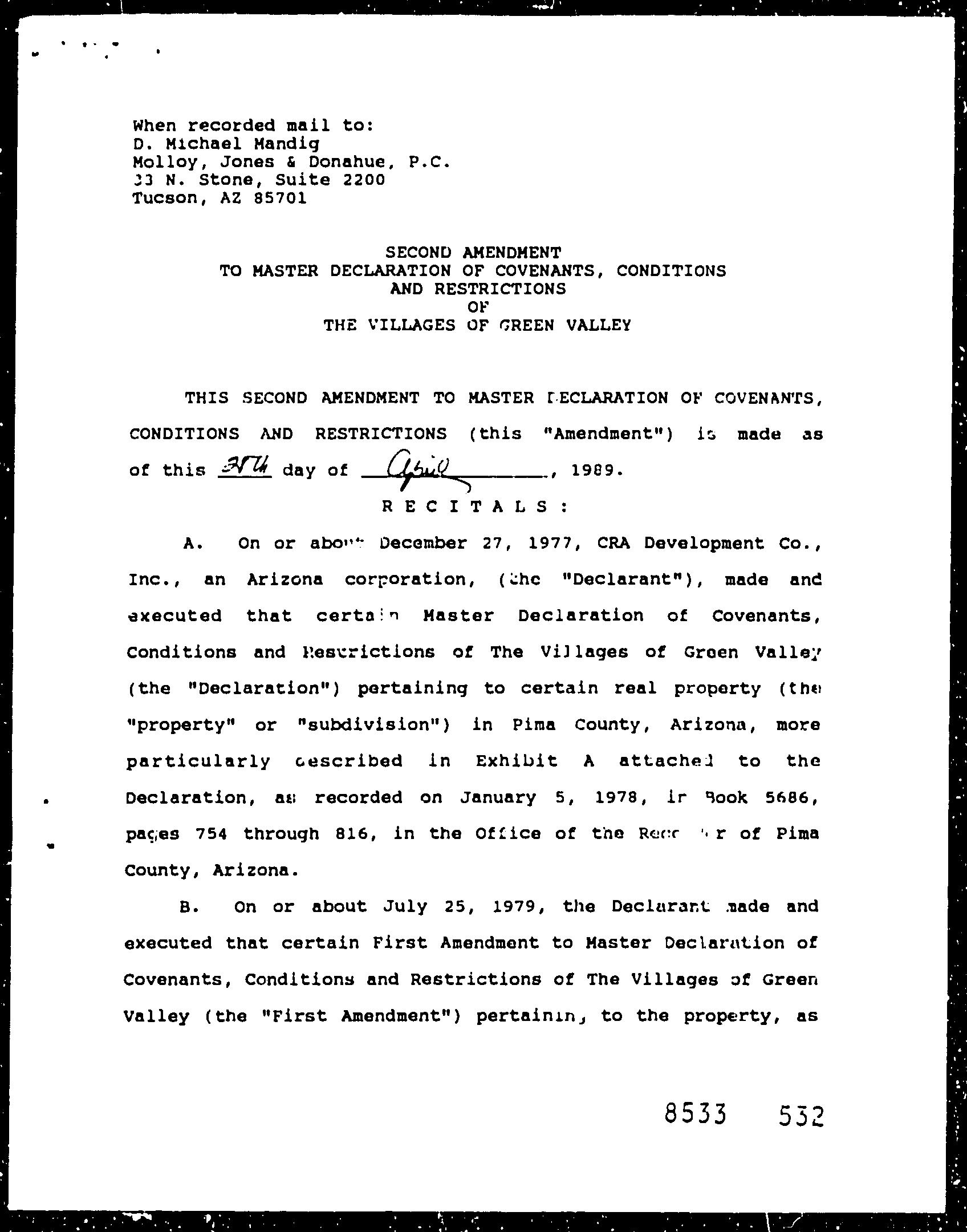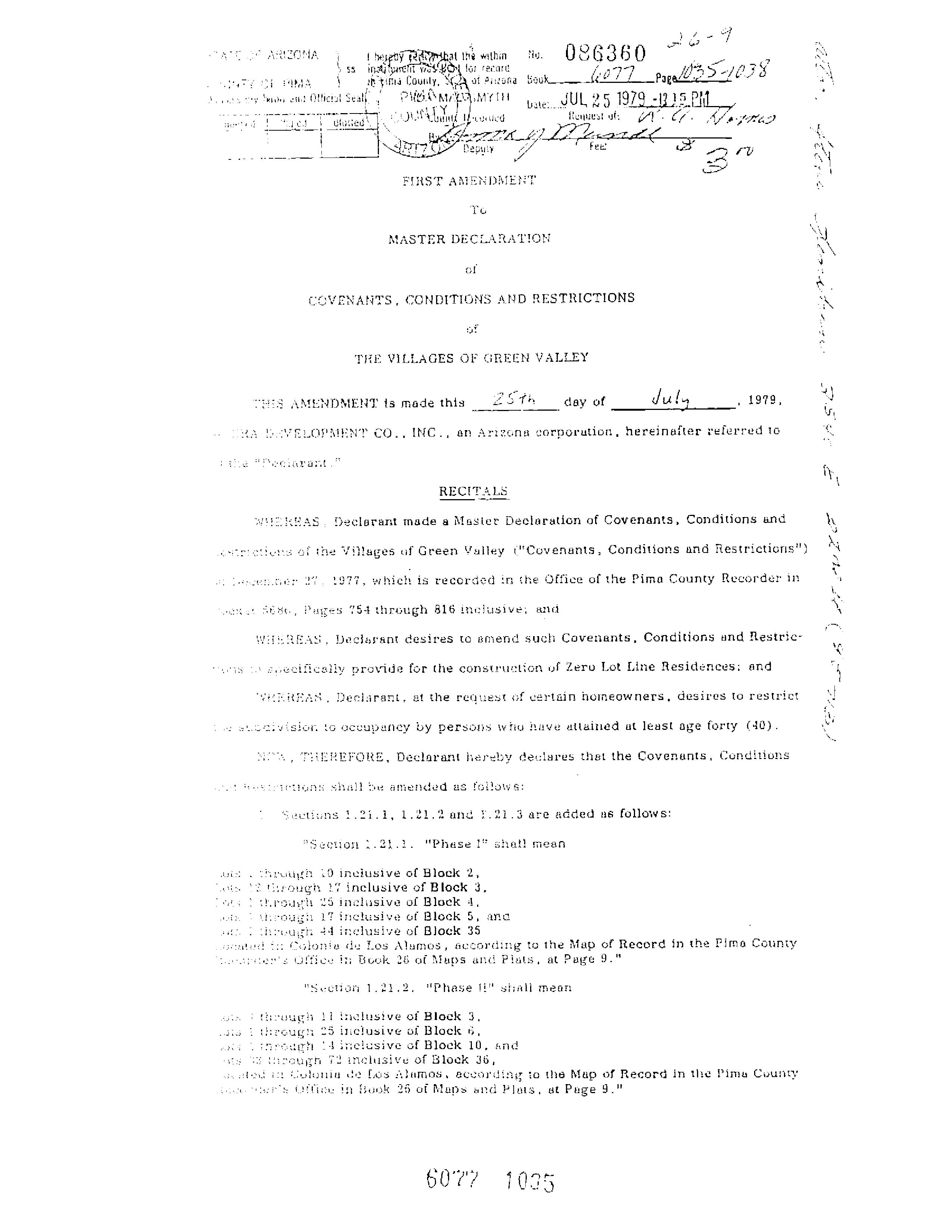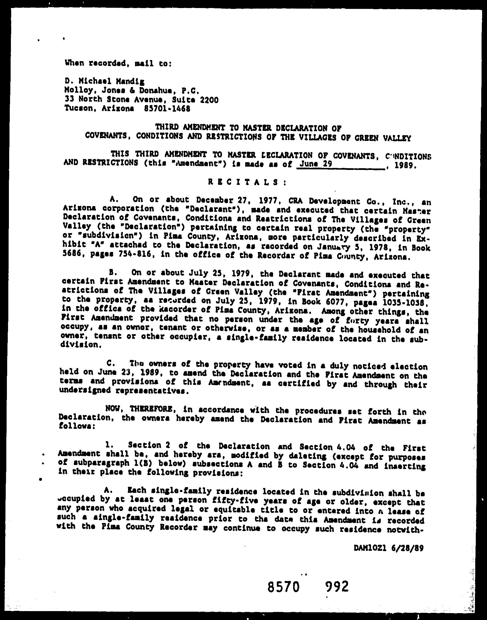 Mailing Address : 940 W Rio Magdalena, Green Valley AZ 85614-4028 C079