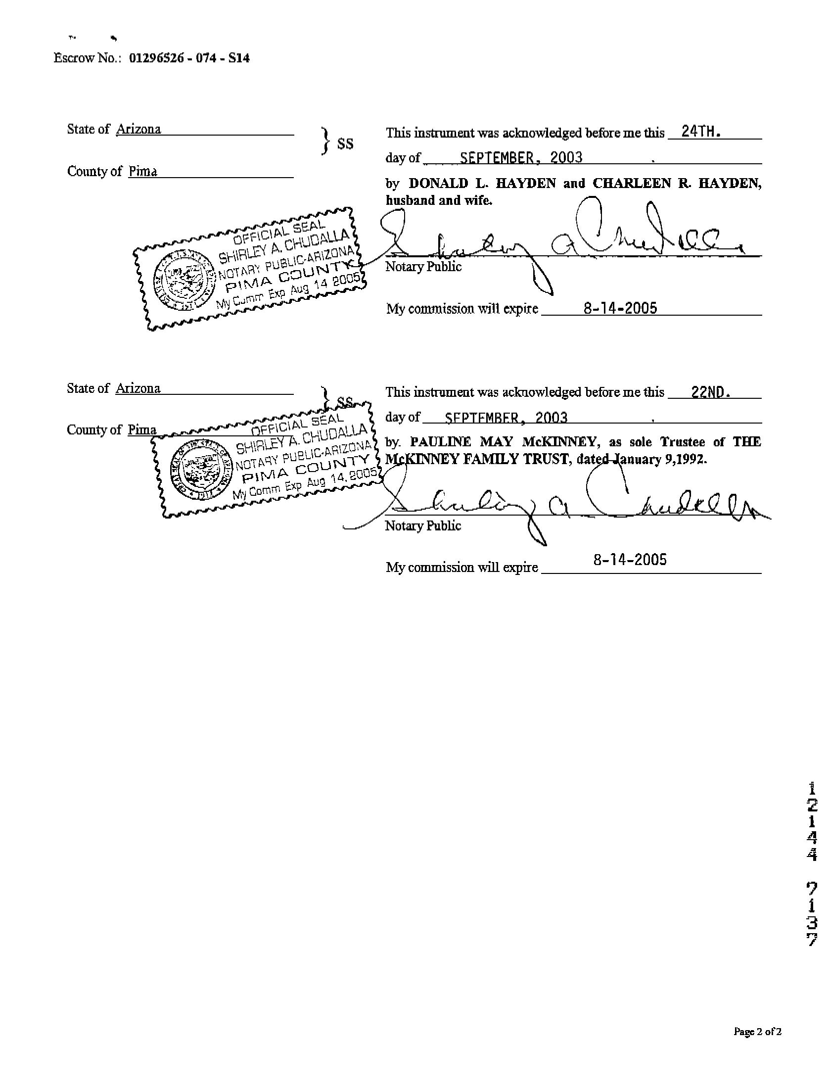 Recording/Sale Date : 09/26/2003 / 09/00/2003