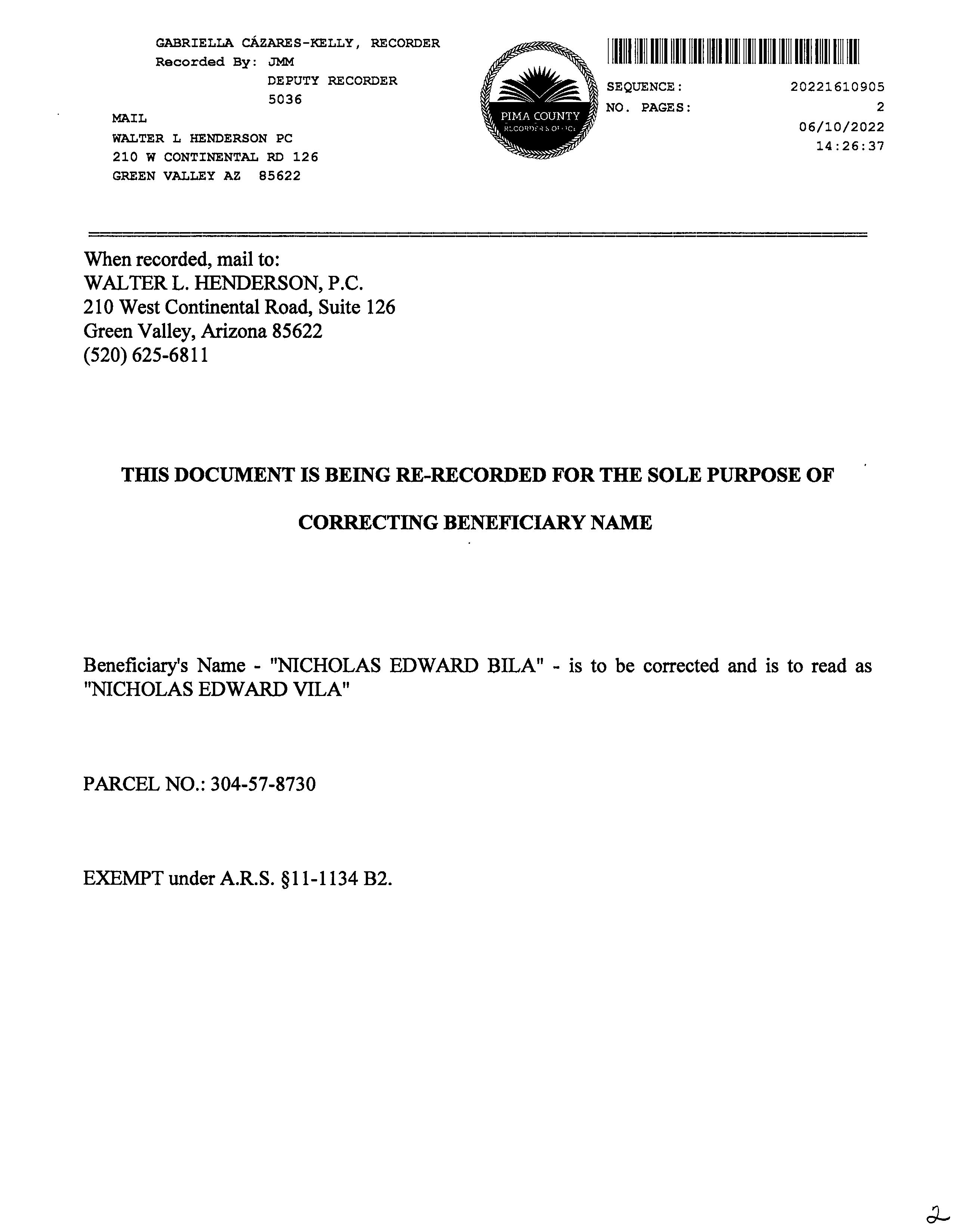 Owner Name : Az Bear Construction Llc Recording Date : 12/09/2022