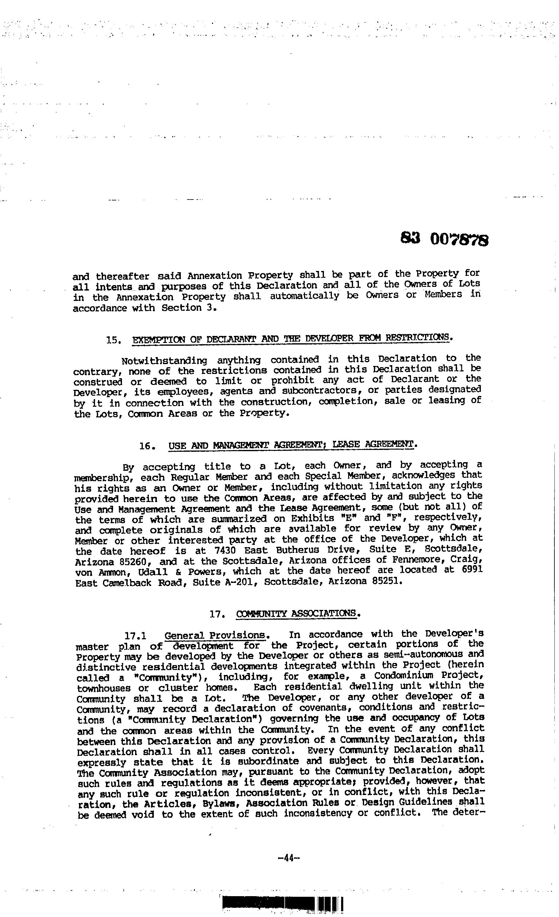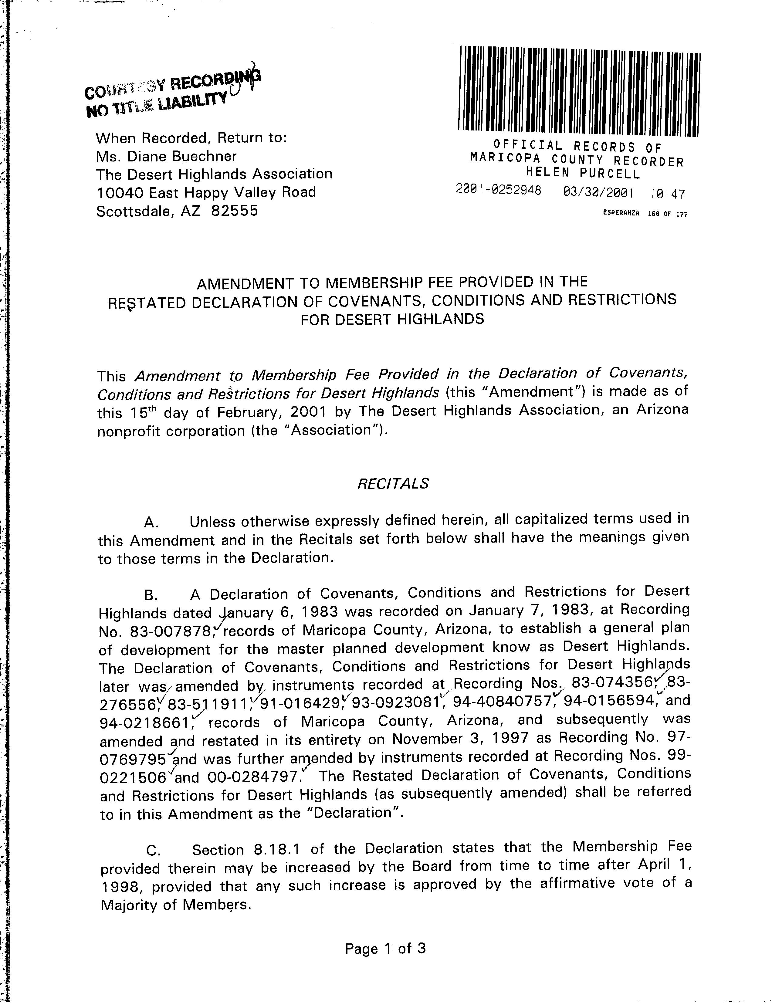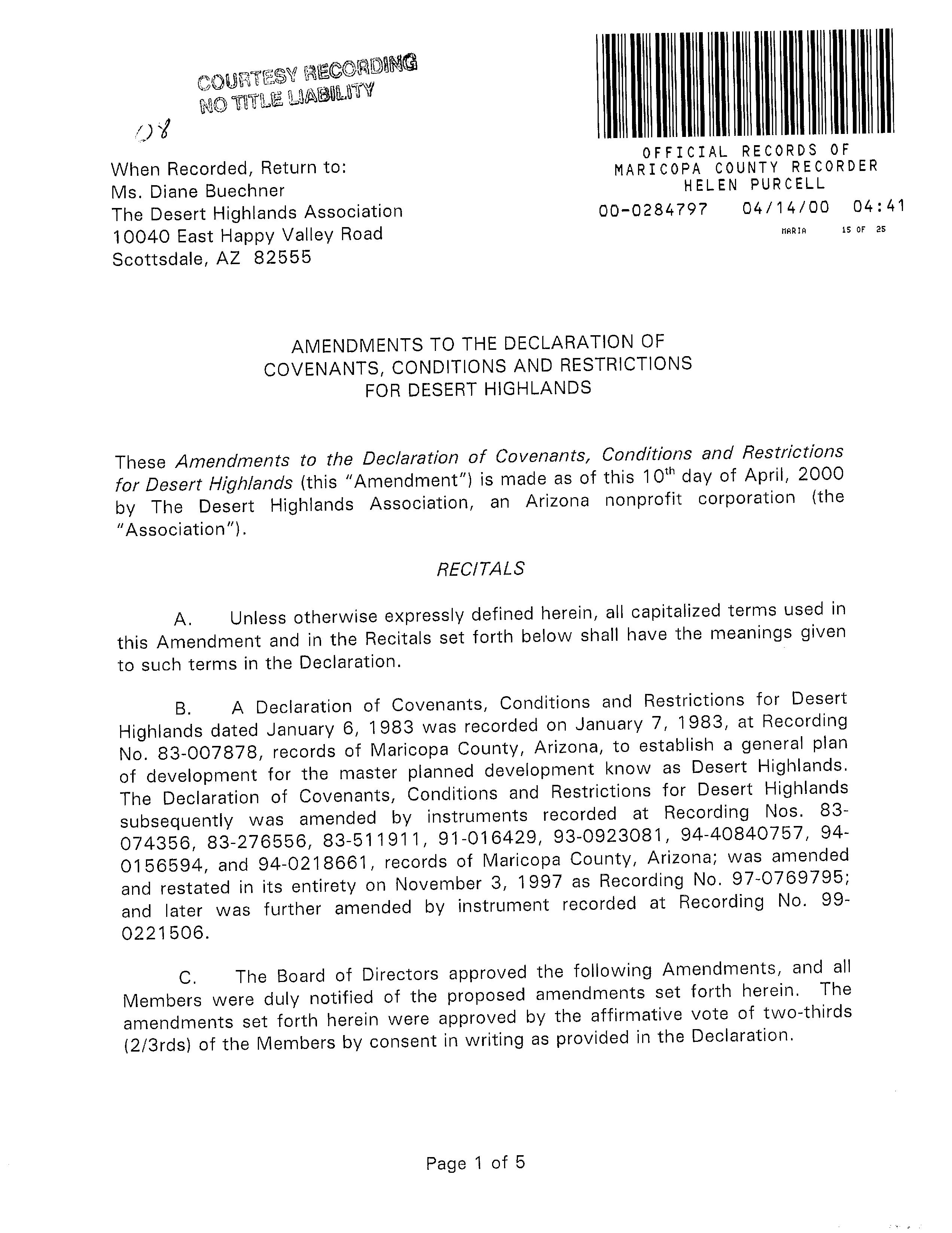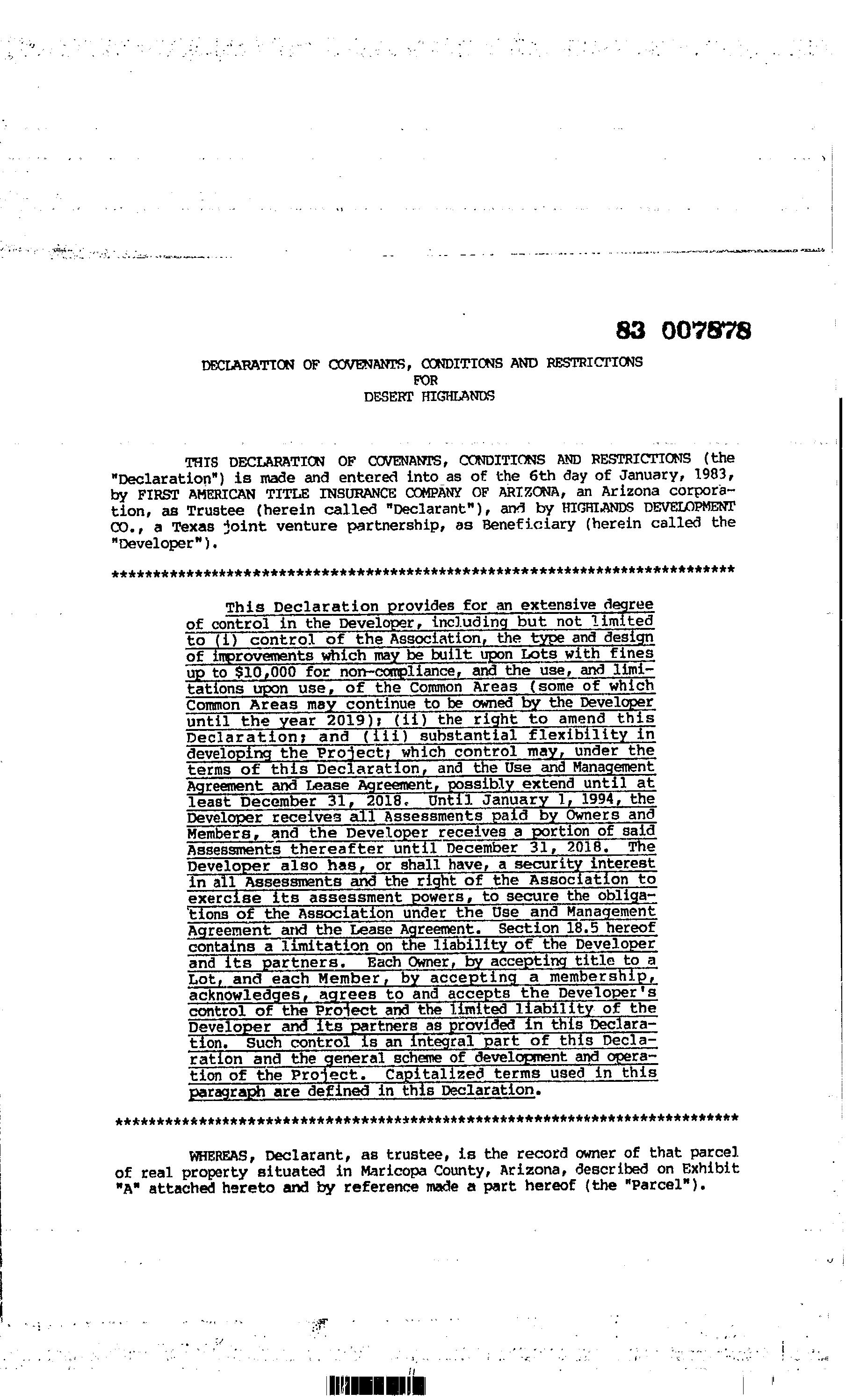 ©2021 First American Financial Corporation and/or its affiliates. All rights reserved. NYSE: FAF 05252610821 COVENANTS, CONDITIONS & RESTRICTIONS PREPARED FOR : First American Title Insurance Company, and the operating divisions thereof, make no express or implied warranty respecting the information presented and assume no responsibility for errors or omissions. First American, the eagle logo, First American Title, and firstam.com are registered trademarks or trademarks of First American Financial Corporation and/or its affiliates. 10020 E Ranch Gate Road Scottsdale, AZ 85255