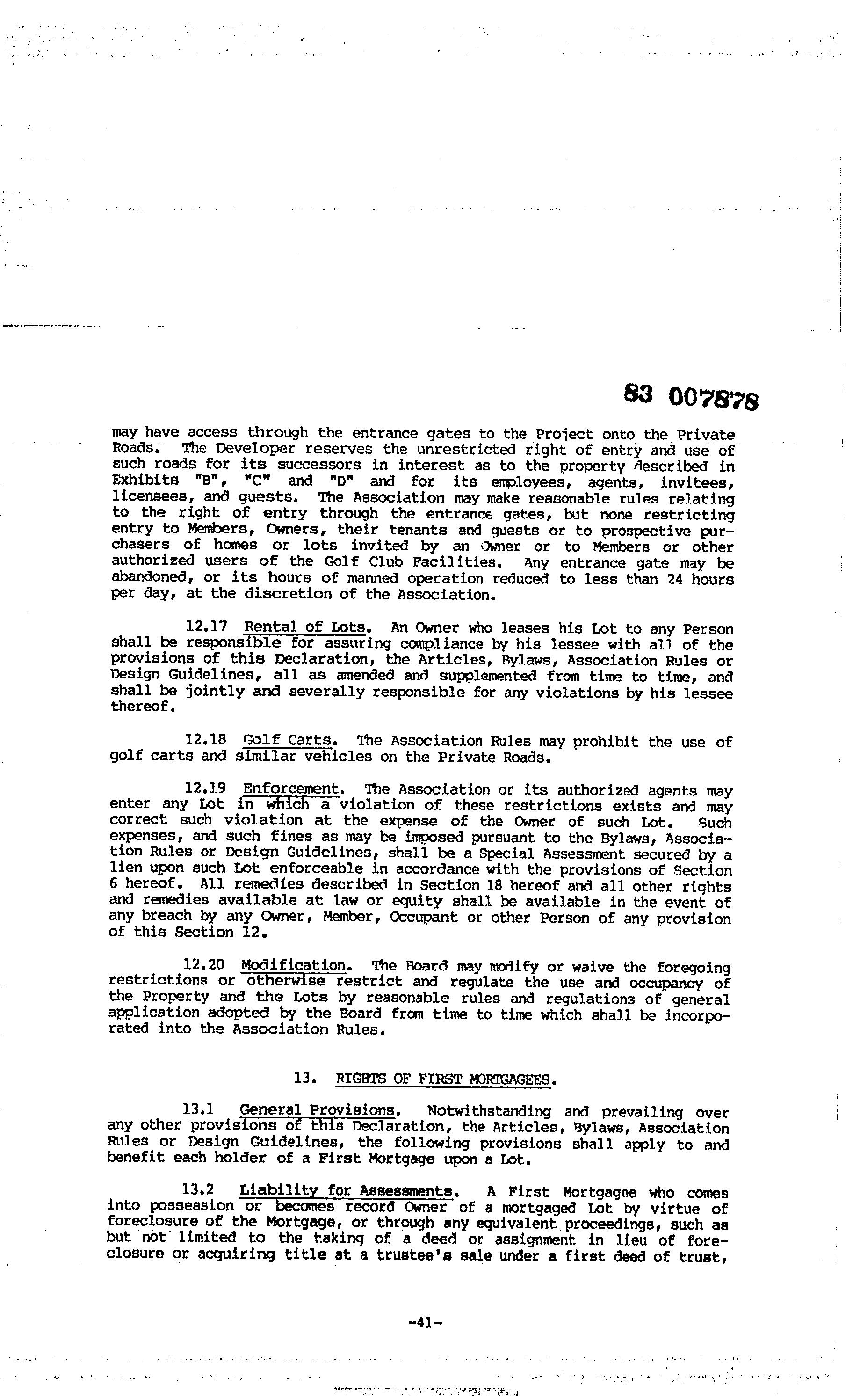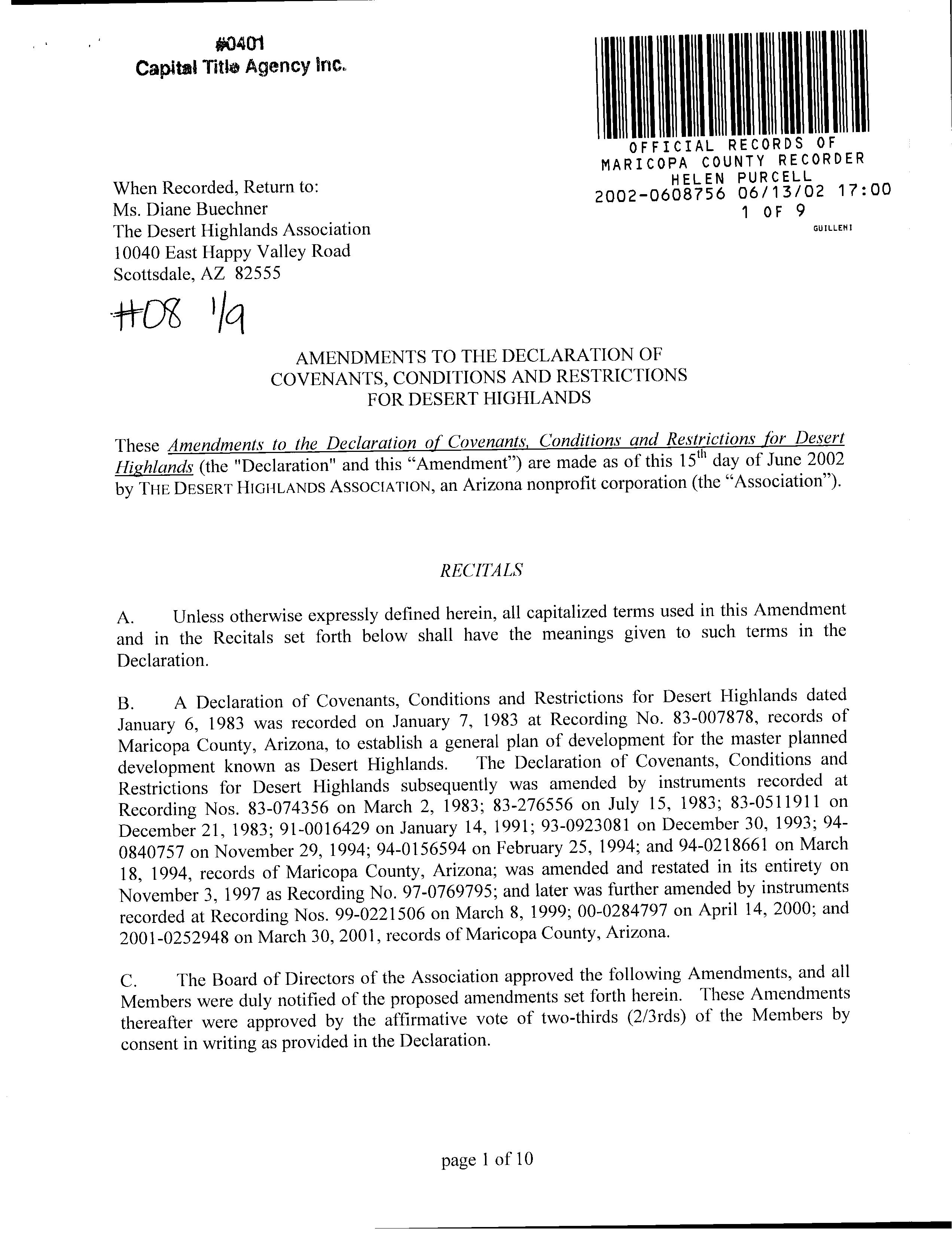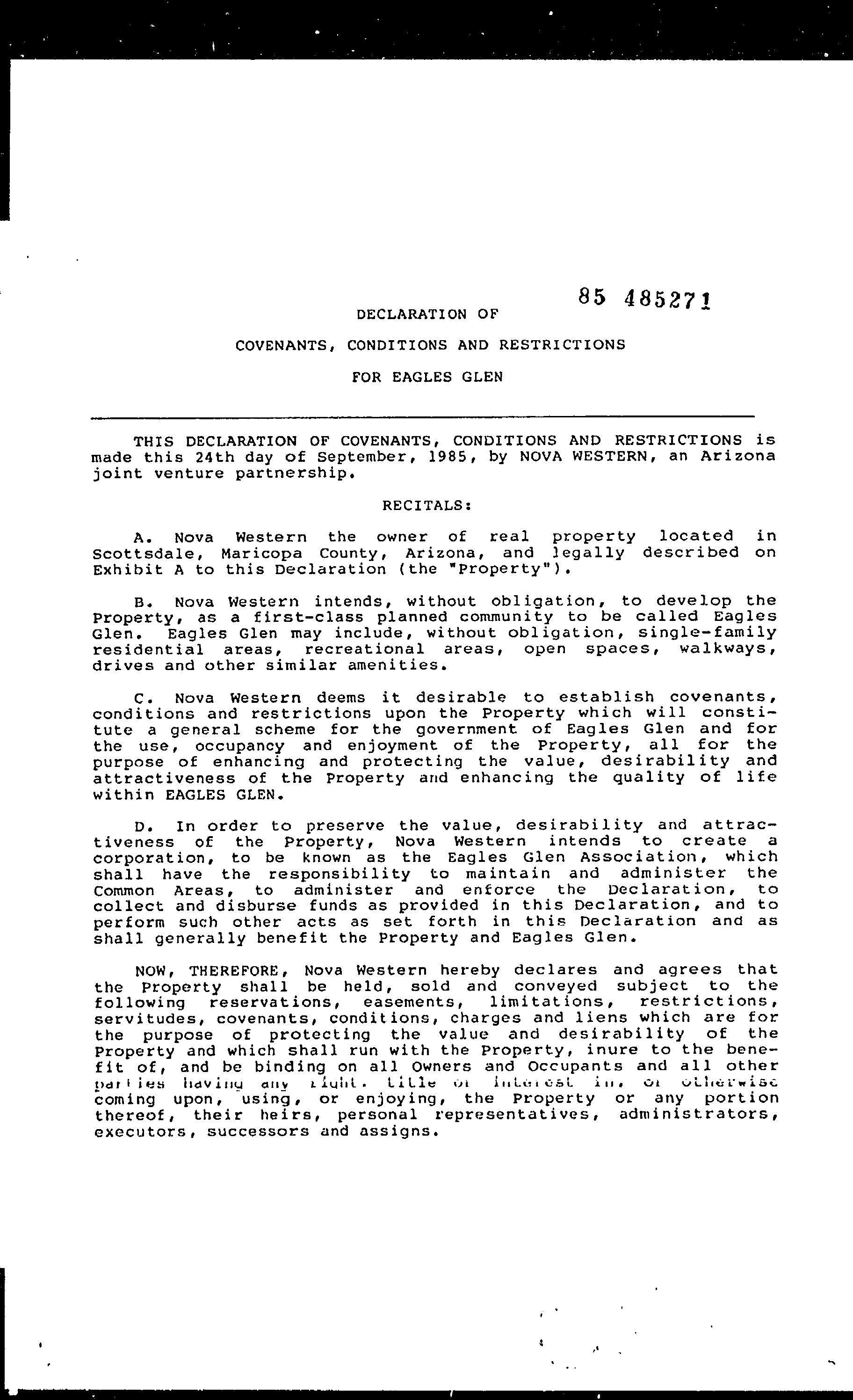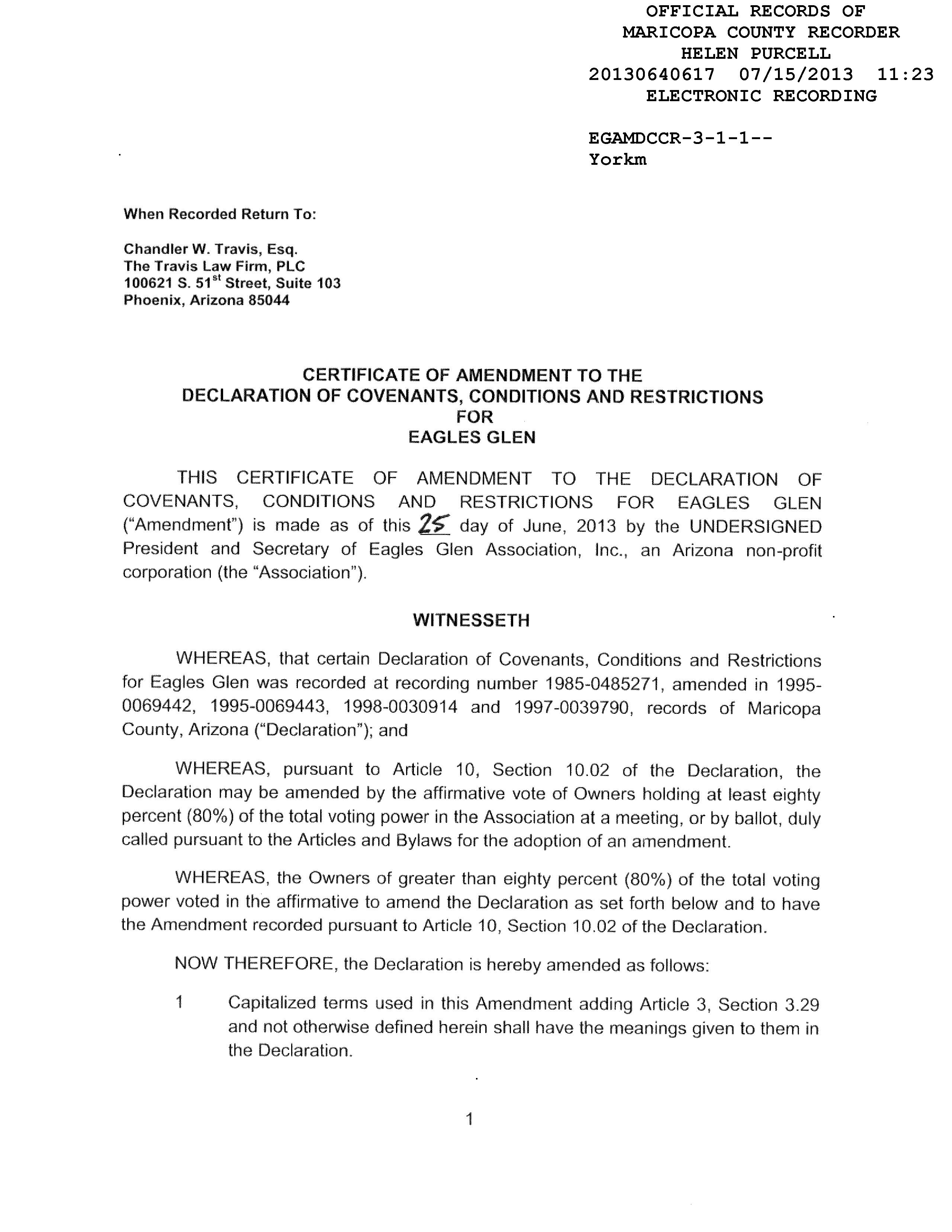 ©2021 First American Financial Corporation and/or its affiliates. All rights reserved. NYSE: FAF 05252610821 COVENANTS, CONDITIONS & RESTRICTIONS PREPARED FOR : First American Title Insurance Company, and the operating divisions thereof, make no express or implied warranty respecting the information presented and assume no responsibility for errors or omissions. First American, the eagle logo, First American Title, and firstam.com are registered trademarks or trademarks of First American Financial Corporation and/or its affiliates. 10020 E Ranch Gate Road Scottsdale, AZ 85255