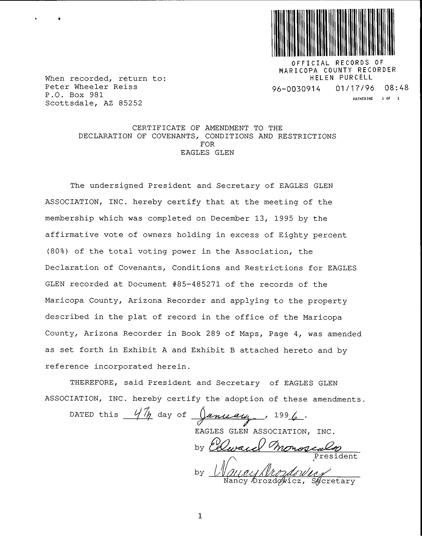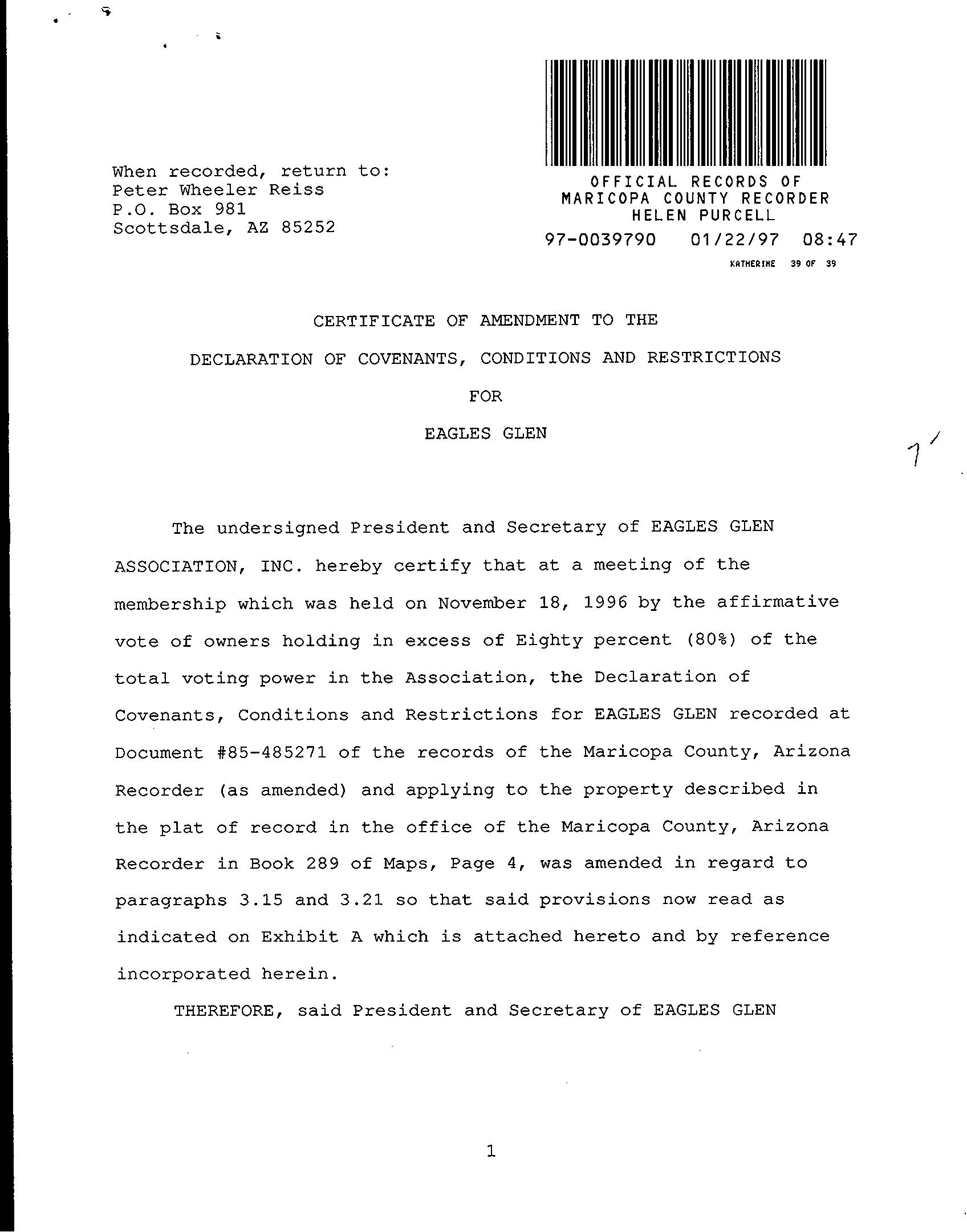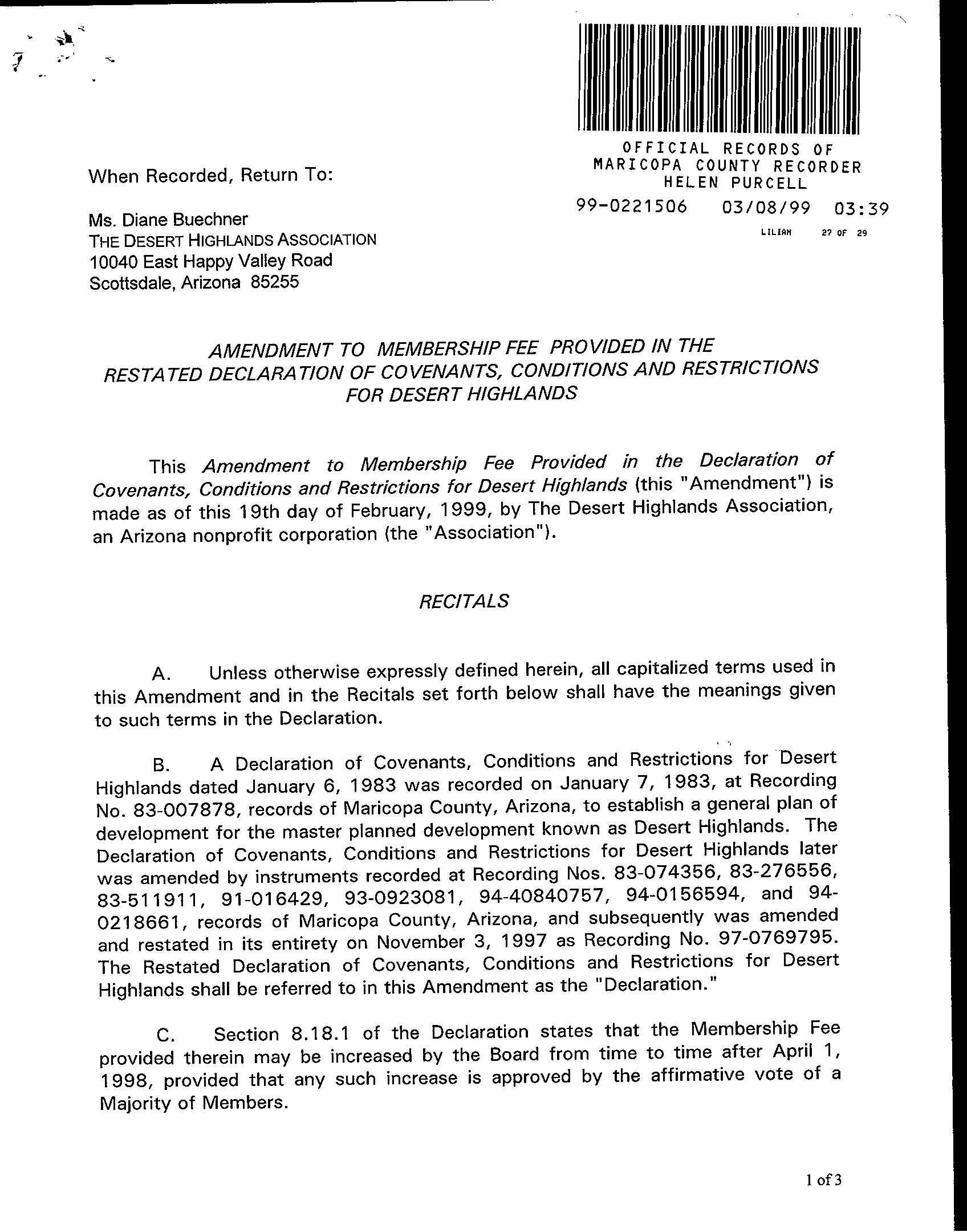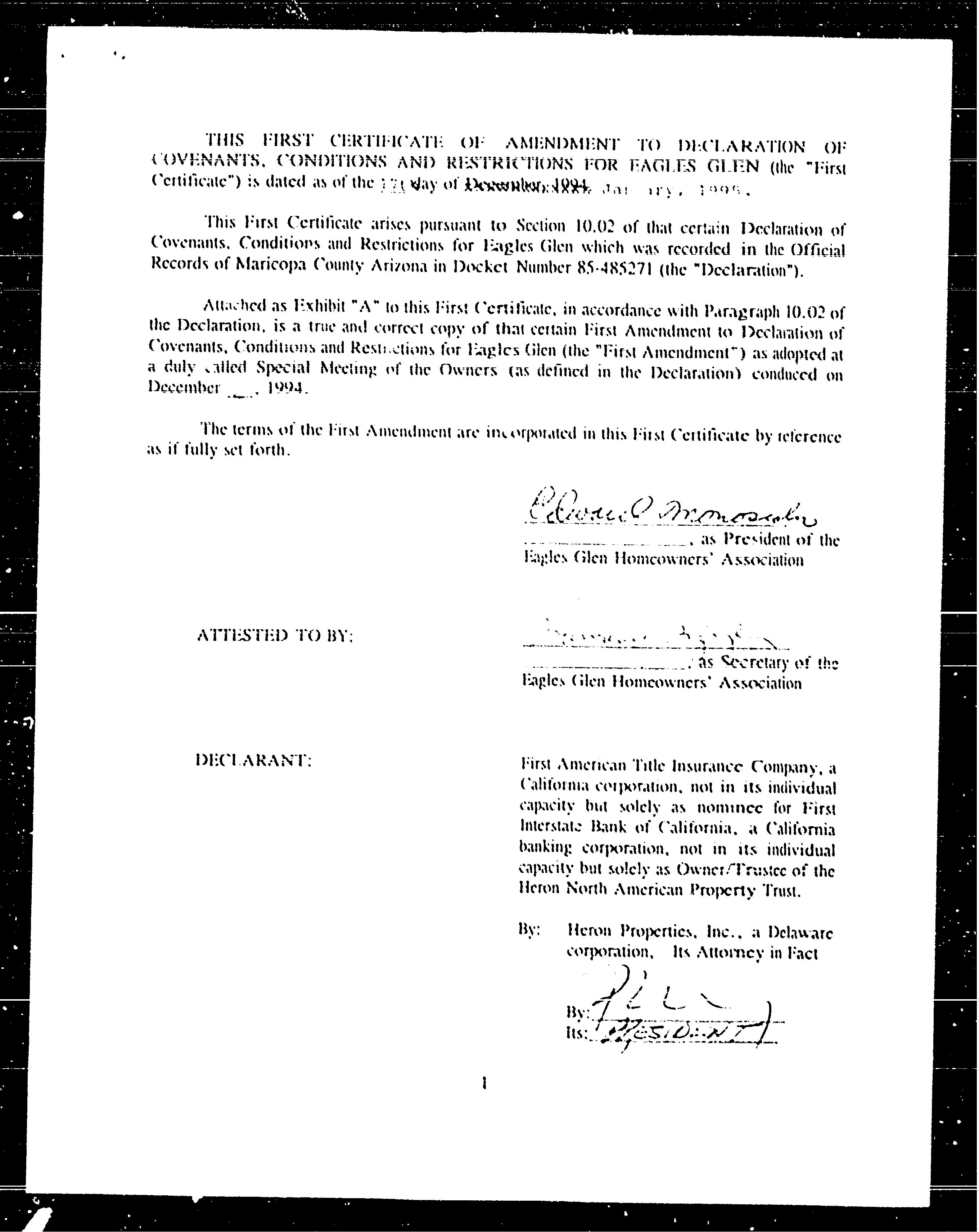 ©2021 First American Financial Corporation and/or its affiliates. All rights reserved. NYSE: FAF 05252610821 COVENANTS, CONDITIONS & RESTRICTIONS PREPARED FOR : First American Title Insurance Company, and the operating divisions thereof, make no express or implied warranty respecting the information presented and assume no responsibility for errors or omissions. First American, the eagle logo, First American Title, and firstam.com are registered trademarks or trademarks of First American Financial Corporation and/or its affiliates. 10020 E Ranch Gate Road Scottsdale, AZ 85255