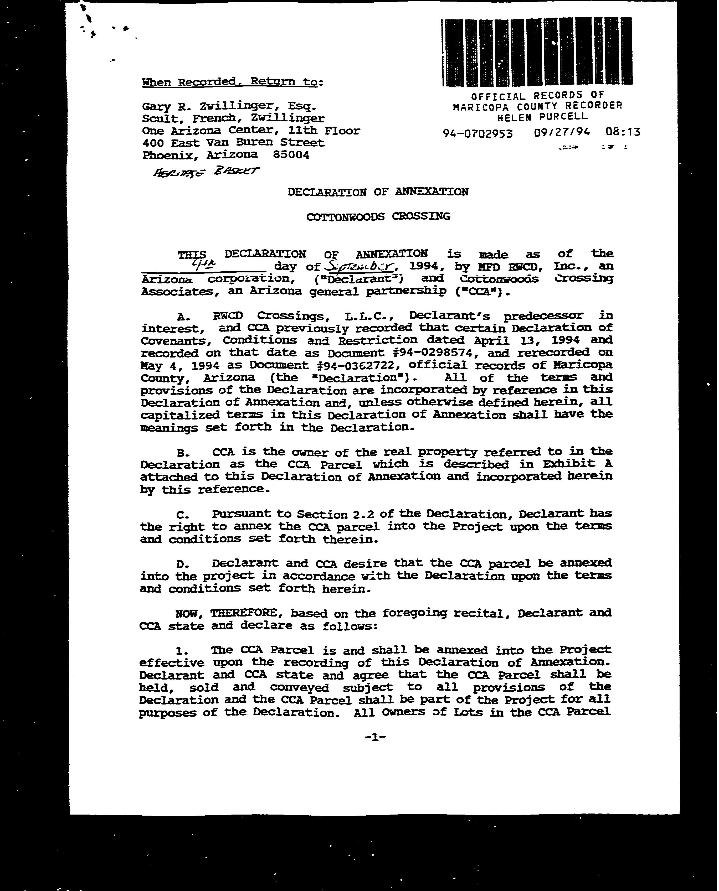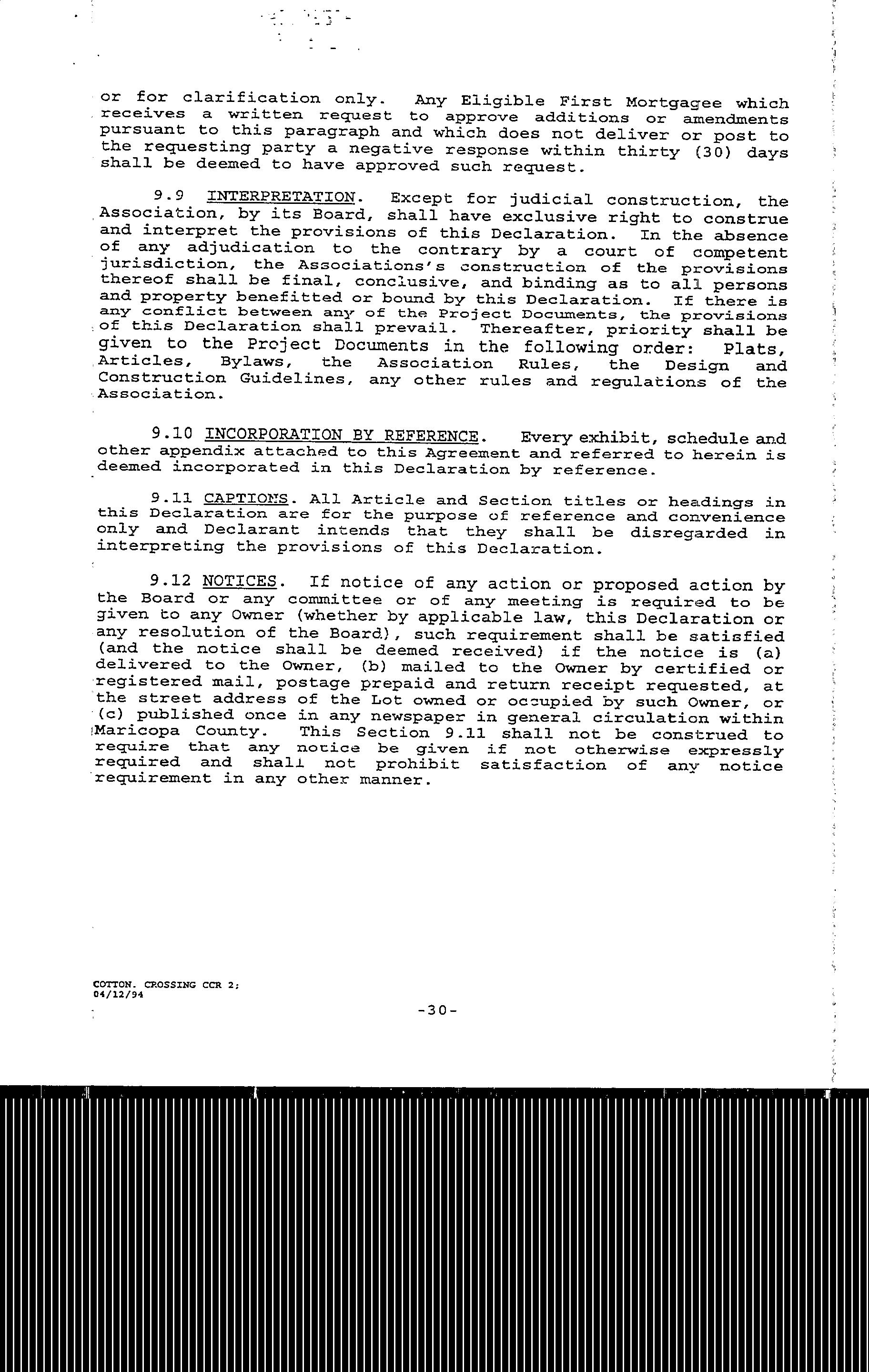 ©2021 First American Financial Corporation and/or its affiliates. All rights reserved. NYSE: FAF 05252610821 COVENANTS, CONDITIONS & RESTRICTIONS PREPARED FOR : First American Title Insurance Company, and the operating divisions thereof, make no express or implied warranty respecting the information presented and assume no responsibility for errors or omissions. First American, the eagle logo, First American Title, and firstam.com are registered trademarks or trademarks of First American Financial Corporation and/or its affiliates. 1031 S. Crossroads Dr. Gilbert, AZ 85296
