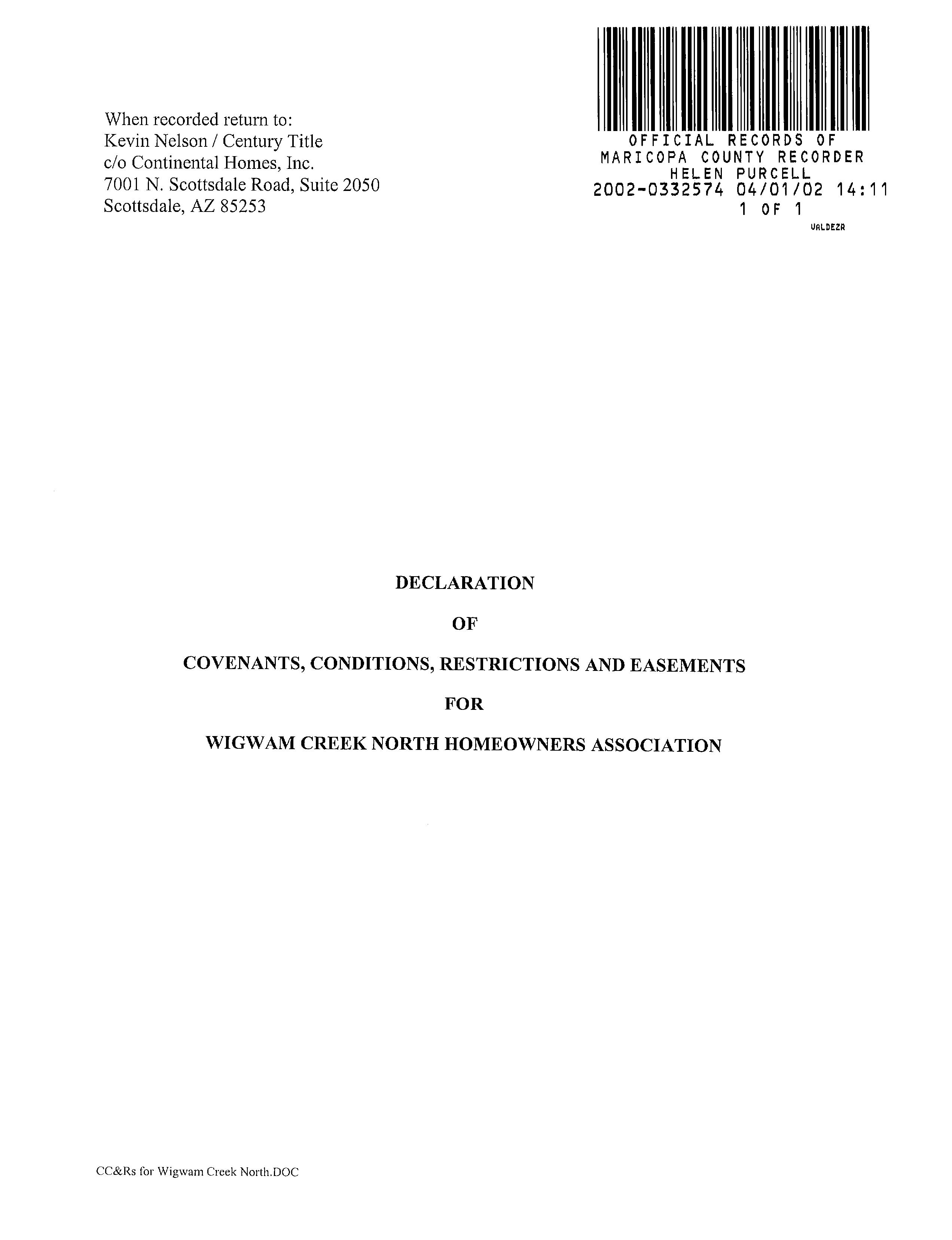 ©2021 First American Financial Corporation and/or its affiliates. All rights reserved. NYSE: FAF 05252610821 COVENANTS, CONDITIONS & RESTRICTIONS PREPARED FOR : First American Title Insurance Company, and the operating divisions thereof, make no express or implied warranty respecting the information presented and assume no responsibility for errors or omissions. First American, the eagle logo, First American Title, and firstam.com are registered trademarks or trademarks of First American Financial Corporation and/or its affiliates. 12316 W. Keim Dr. Litchfield Park, AZ 85340