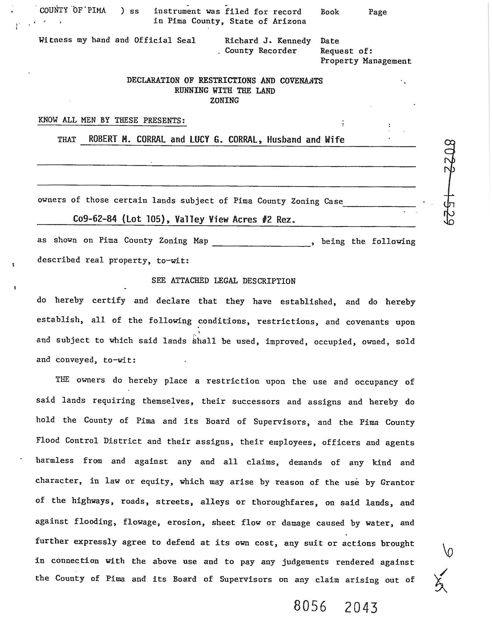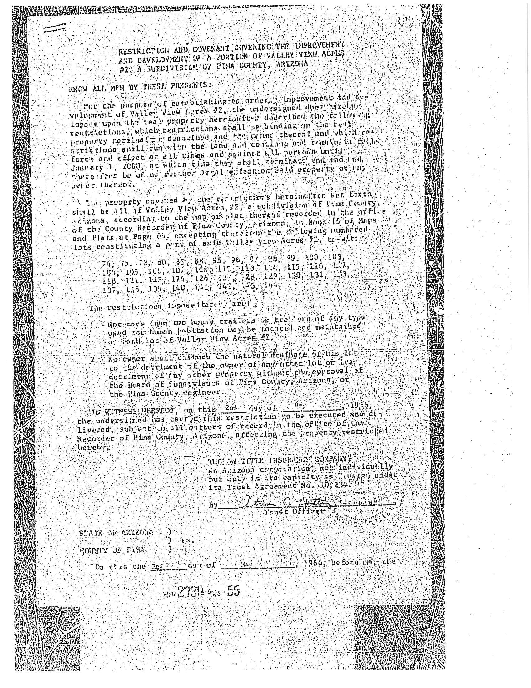 ©2021 First American Financial Corporation and/or its affiliates. All rights reserved. NYSE: FAF 05252610821 COVENANTS, CONDITIONS & RESTRICTIONS PREPARED FOR : First American Title Insurance Company, and the operating divisions thereof, make no express or implied warranty respecting the information presented and assume no responsibility for errors or omissions. First American, the eagle logo, First American Title, and firstam.com are registered trademarks or trademarks of First American Financial Corporation and/or its affiliates. 12765 W. Castle Dr. Tucson, AZ 85736