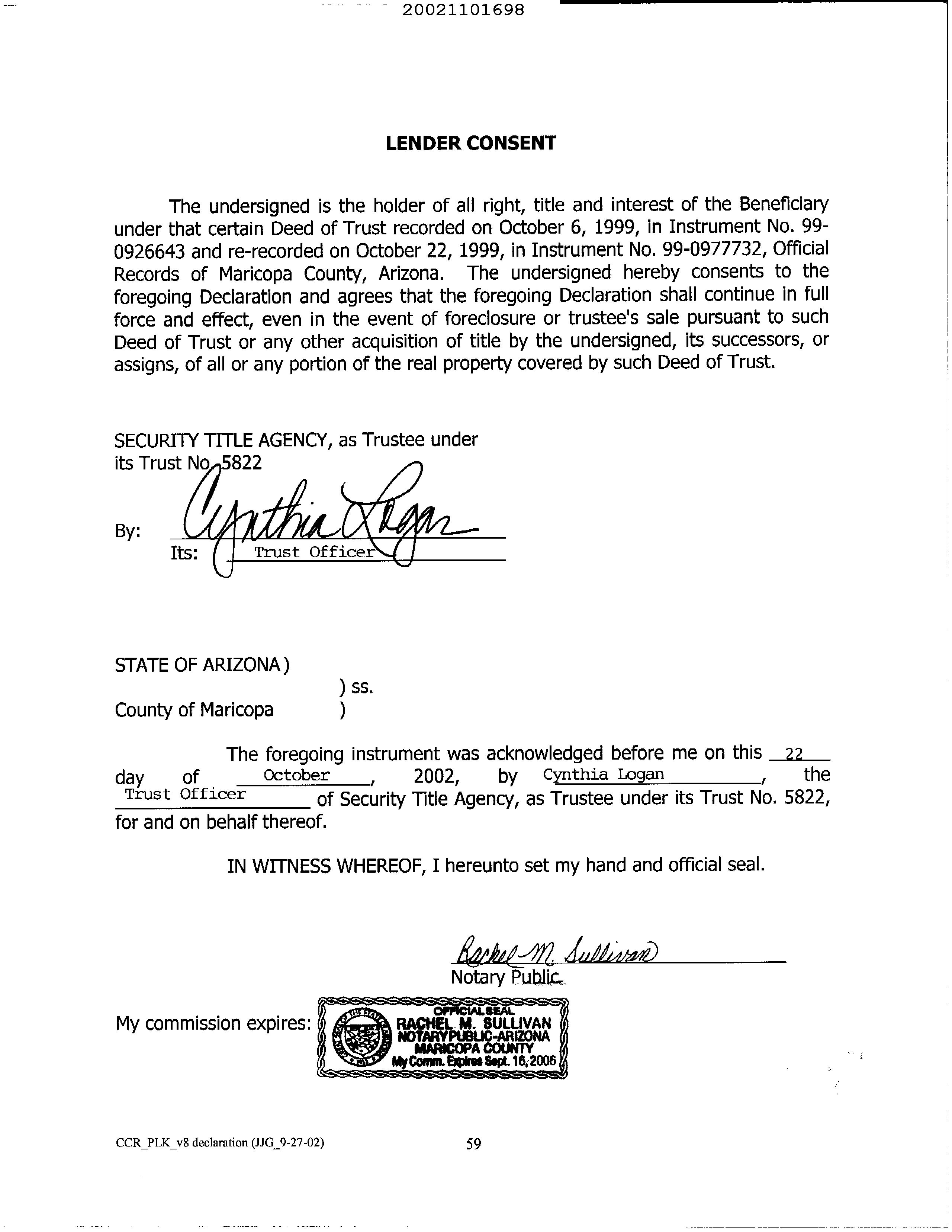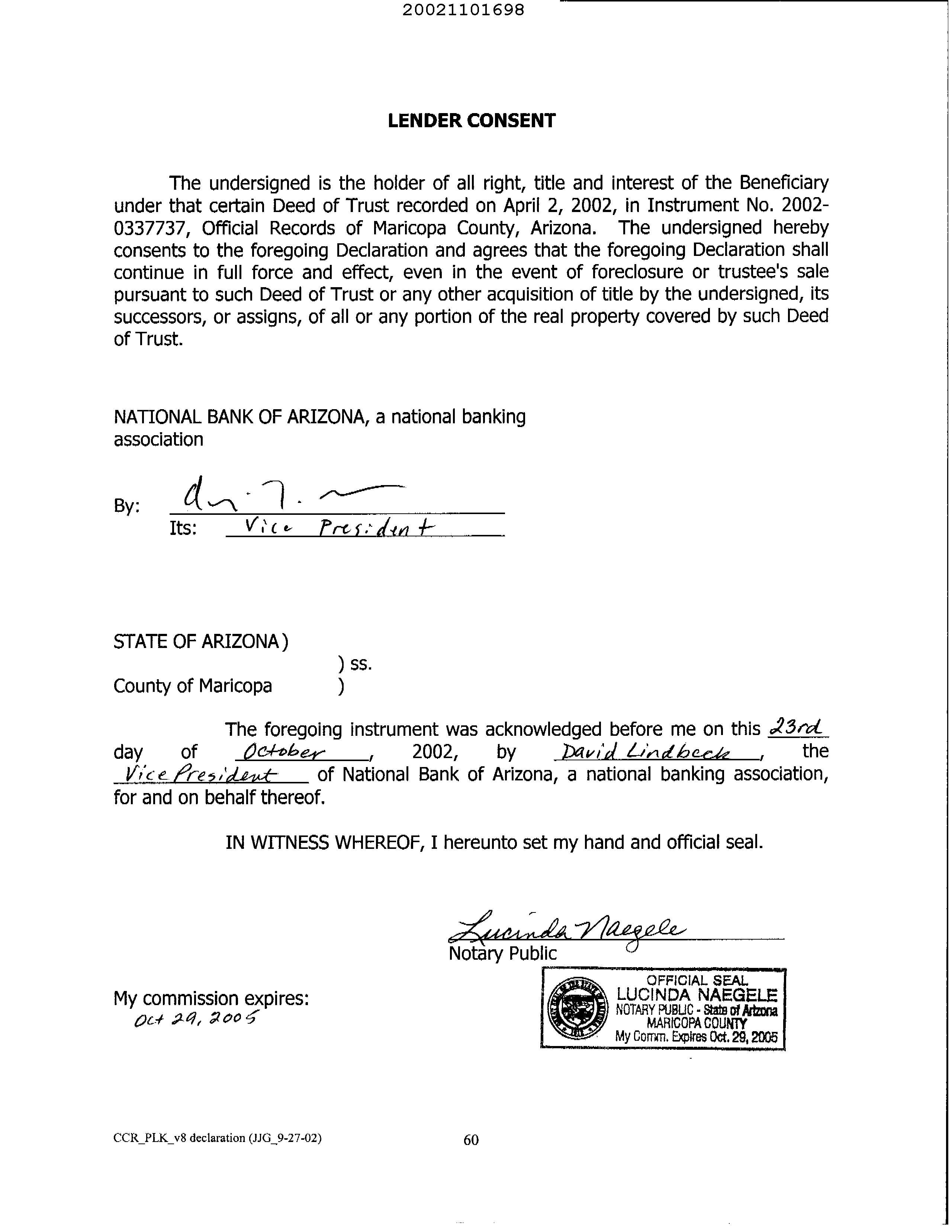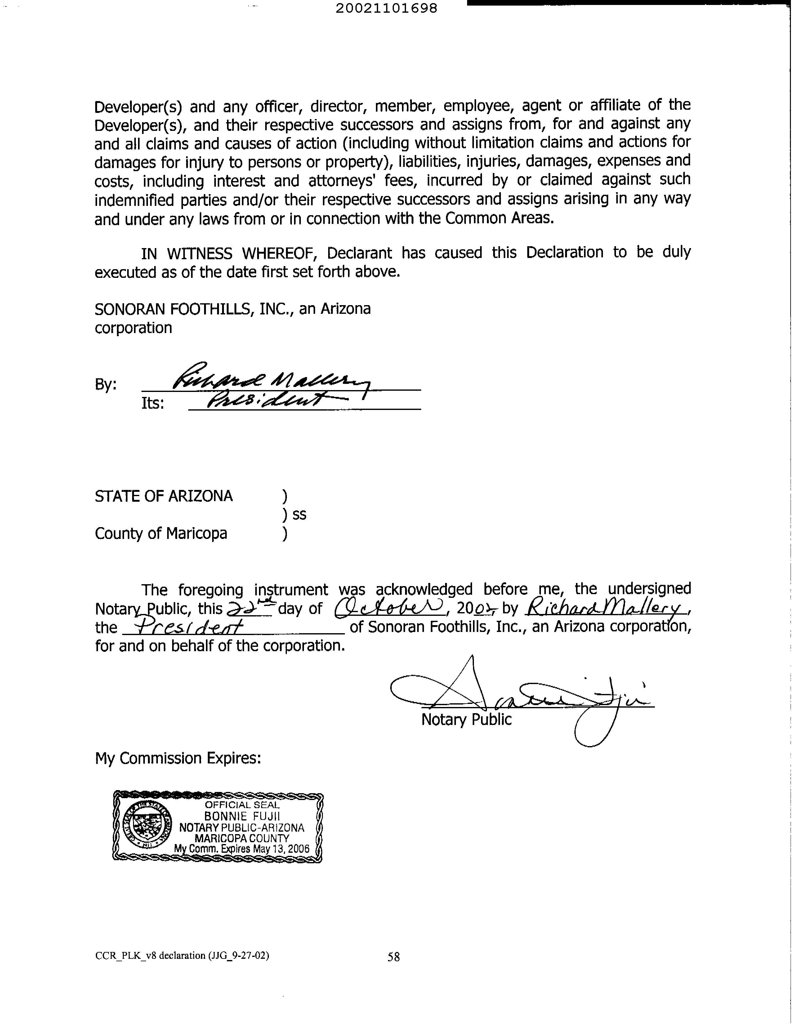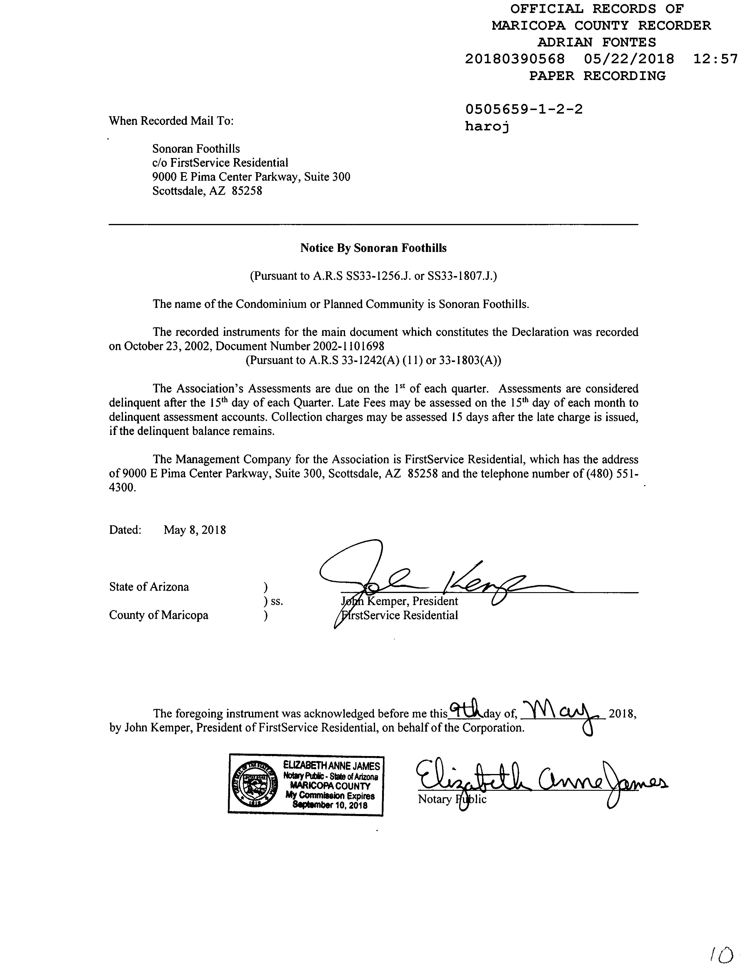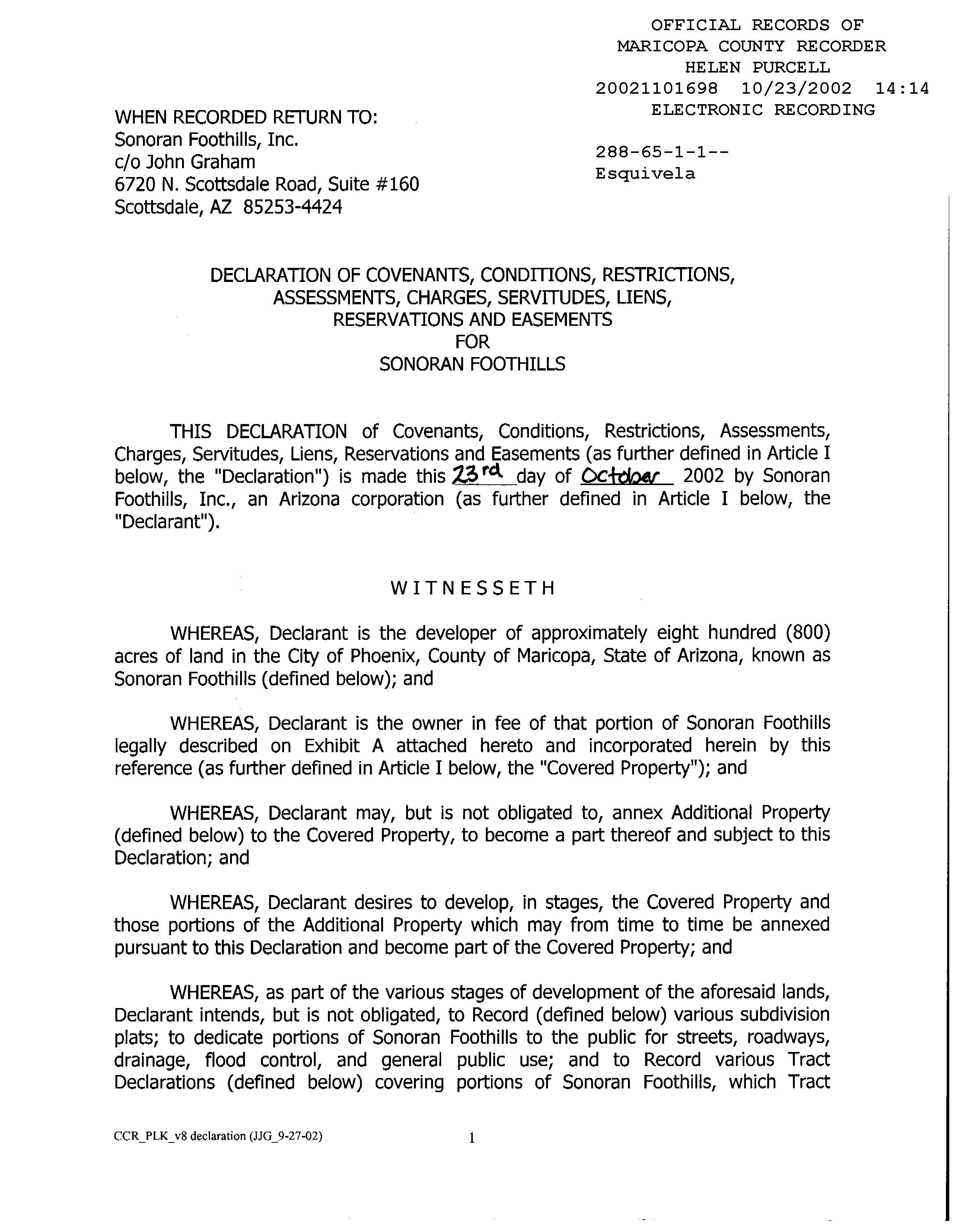 ©2021 First American Financial Corporation and/or its affiliates. All rights reserved. NYSE: FAF 05252610821 COVENANTS, CONDITIONS & RESTRICTIONS PREPARED FOR : First American Title Insurance Company, and the operating divisions thereof, make no express or implied warranty respecting the information presented and assume no responsibility for errors or omissions. First American, the eagle logo, First American Title, and firstam.com are registered trademarks or trademarks of First American Financial Corporation and/or its affiliates. 1826 W Sienna Bouquet Place Phoenix, AZ 85085
